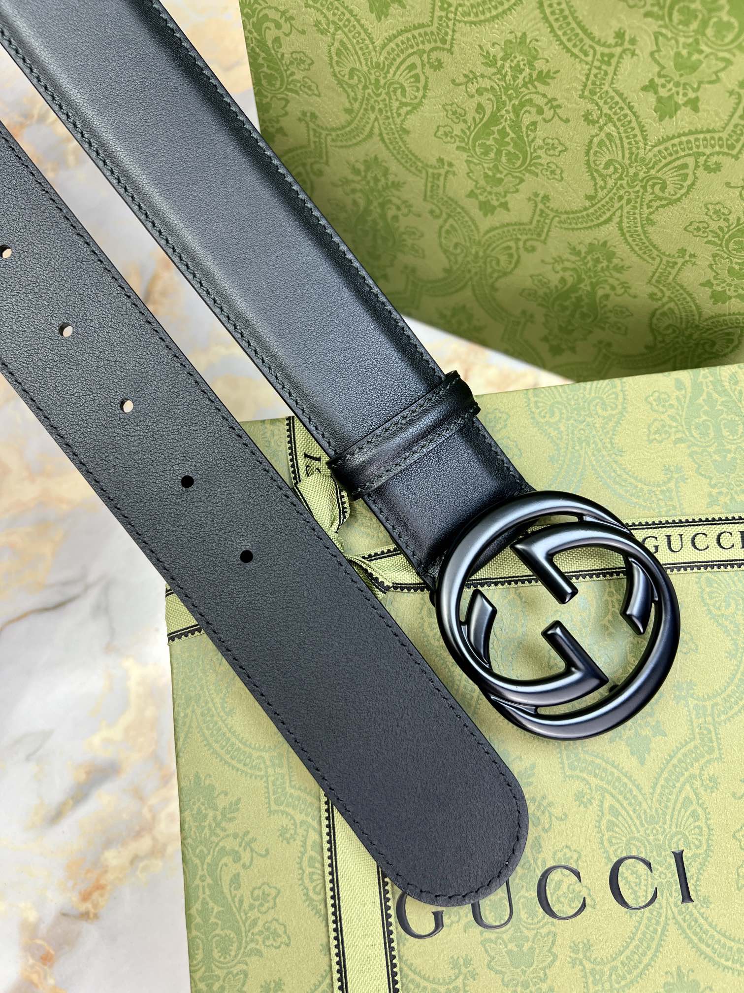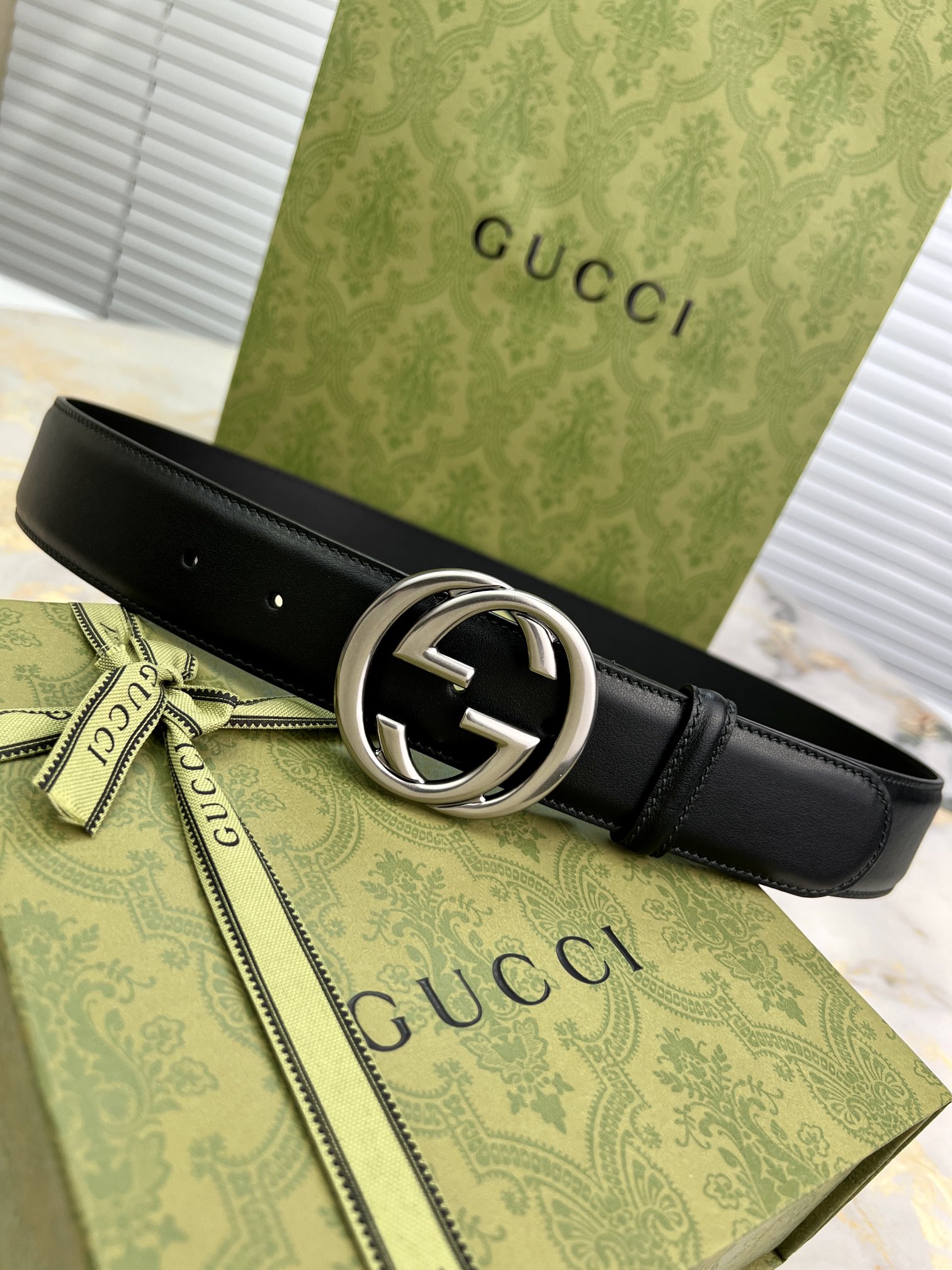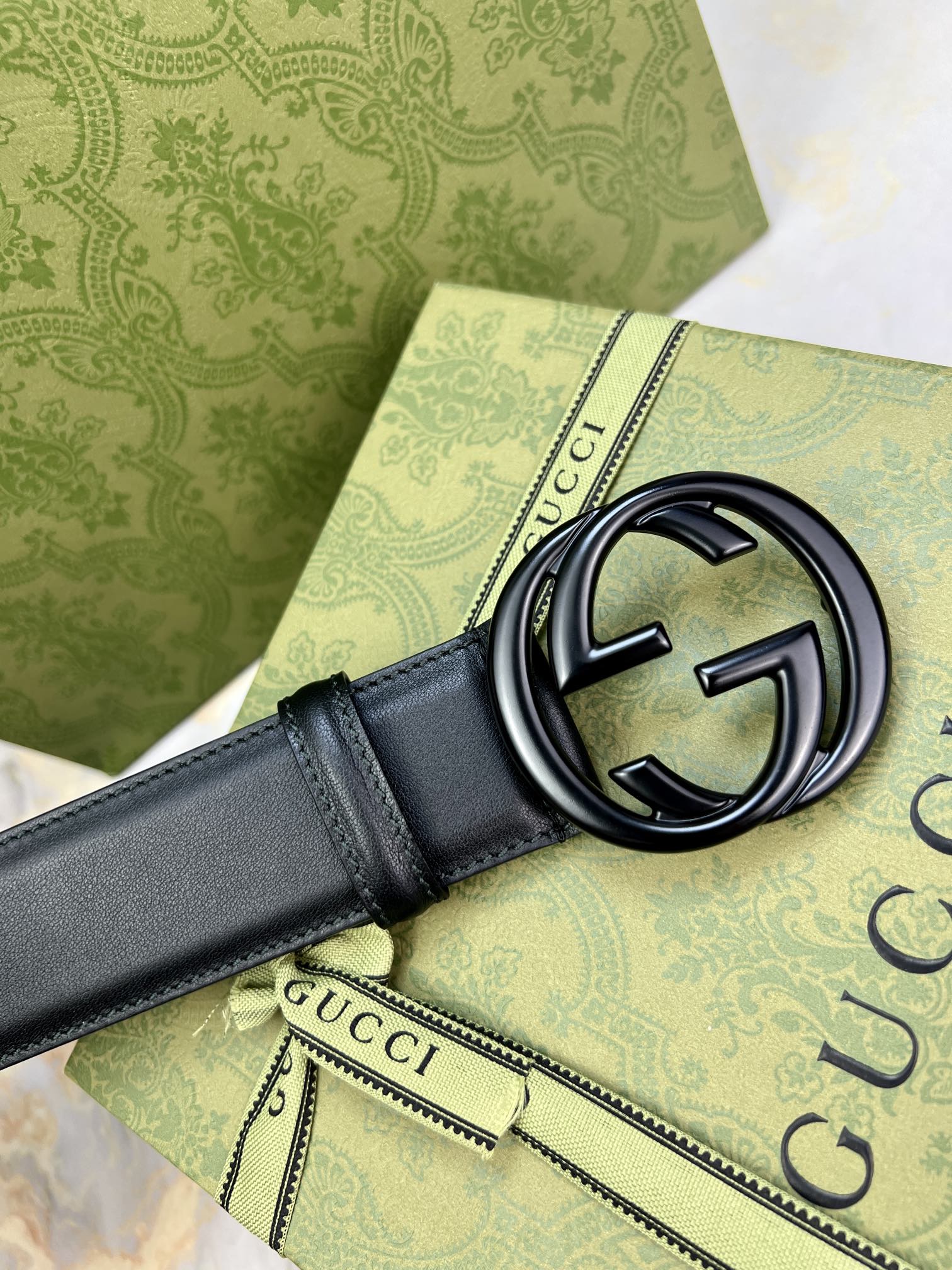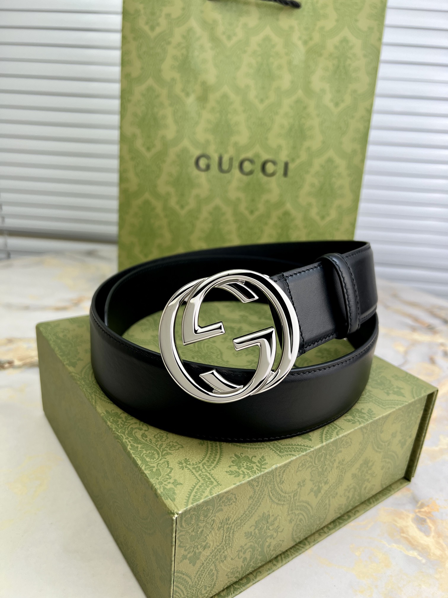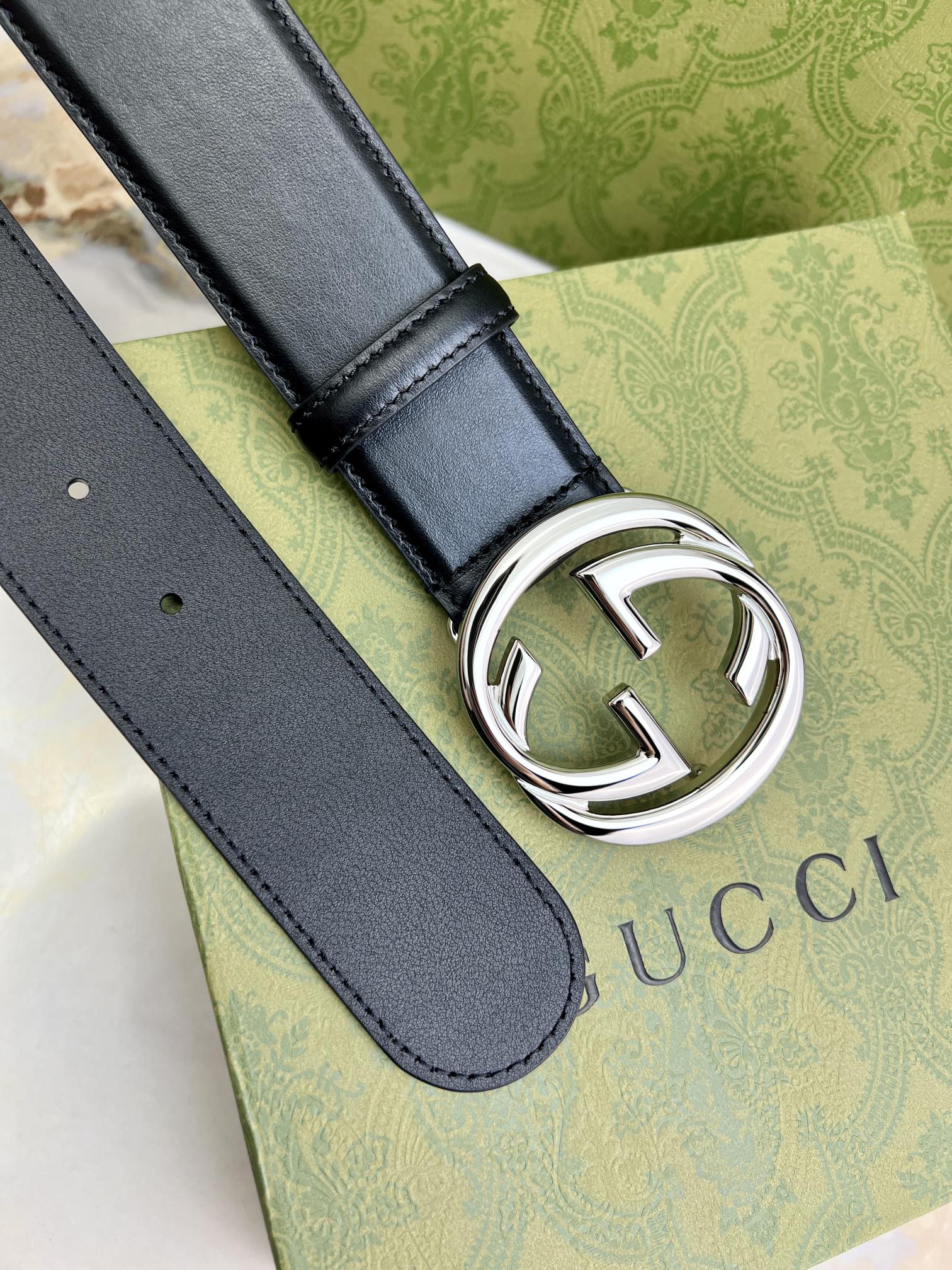 GU 奇腰带 光面平纹牛皮🐂 专属定制真空电镀亮面五金 ,😍时尚出行 🎁配专柜全套包装,宽:4cm💰