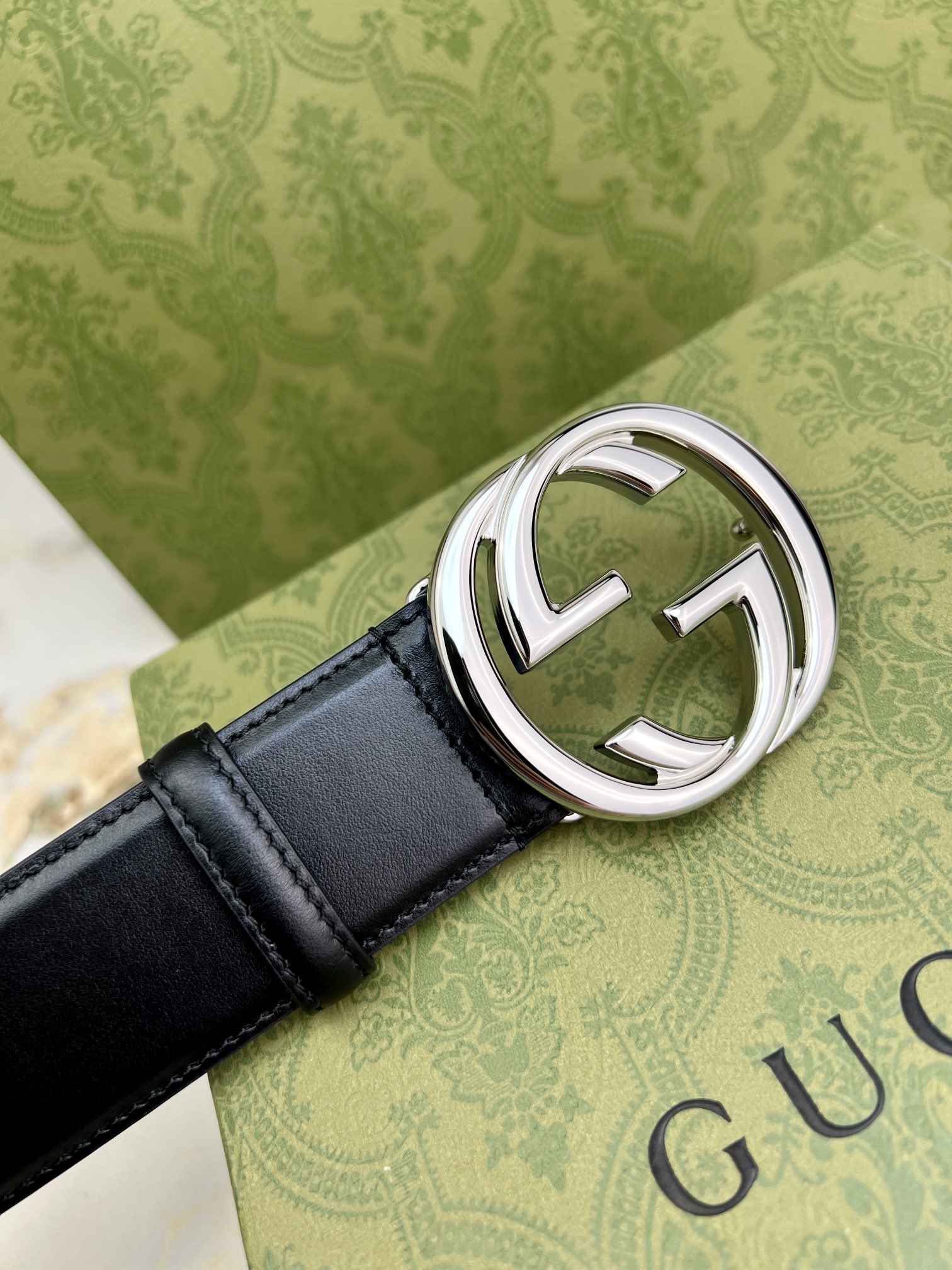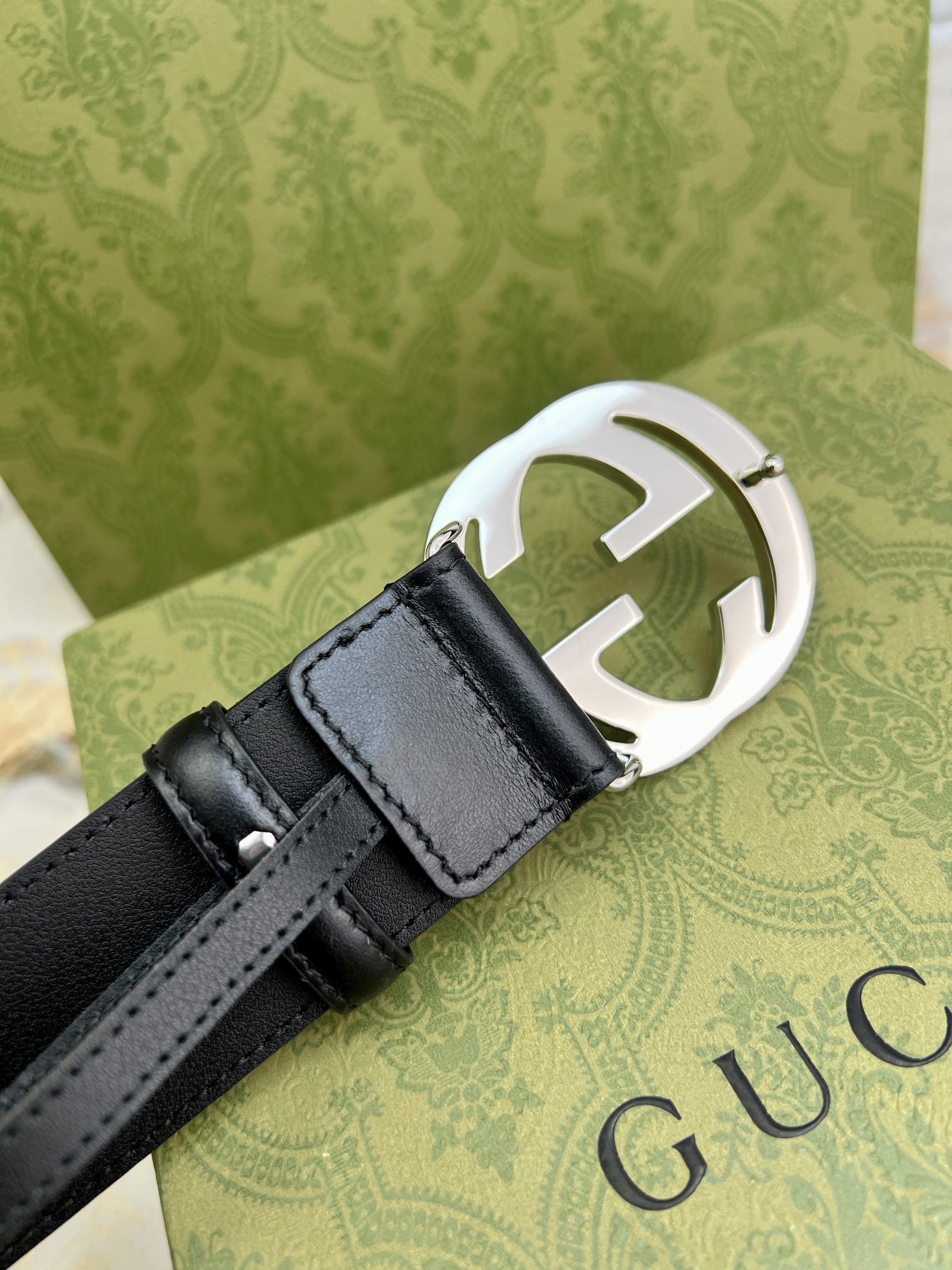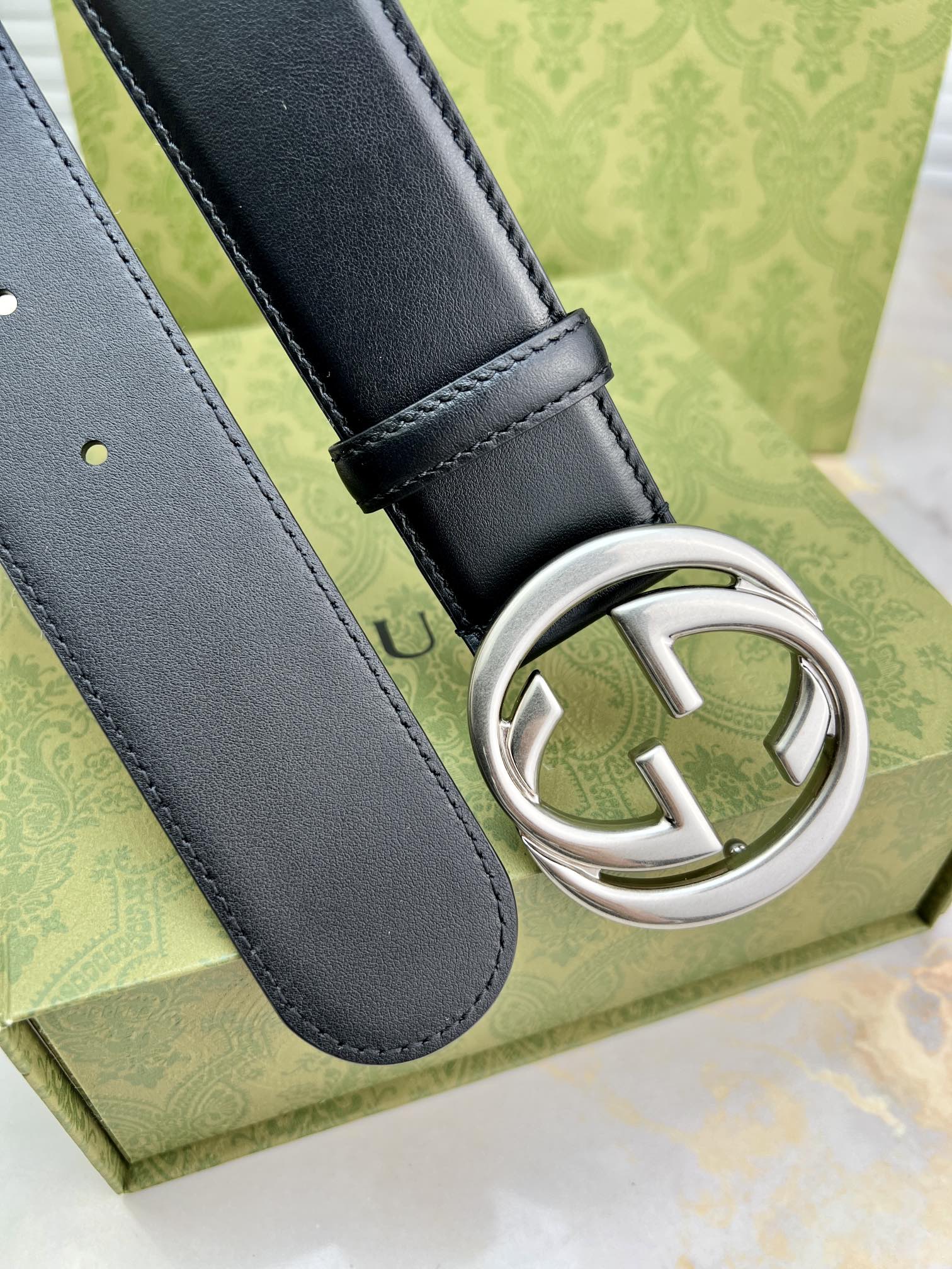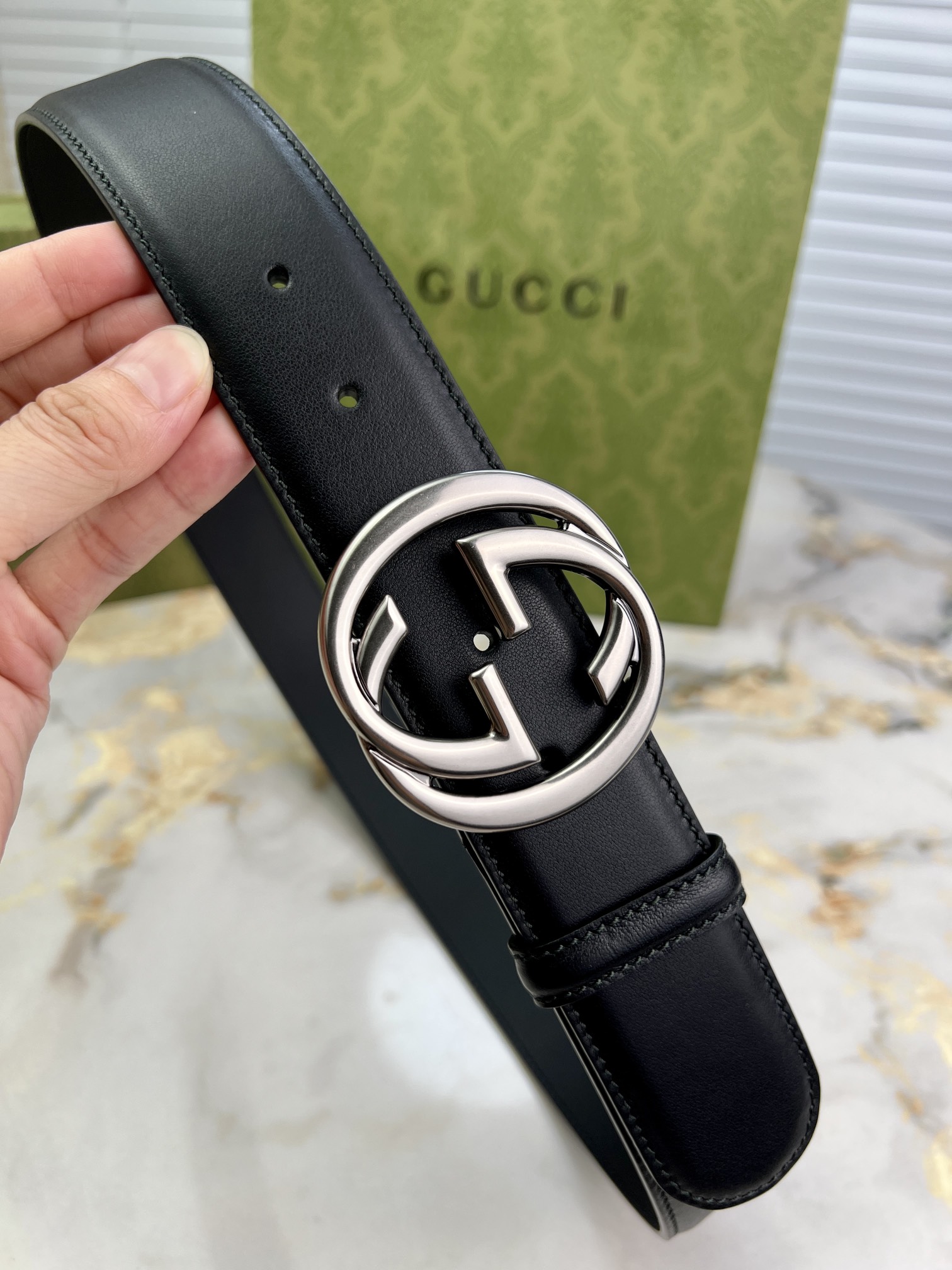 GU 奇腰带 光面平纹牛皮🐂 专属定制真空电镀亮面五金 ,😍时尚出行 🎁配专柜全套包装,宽:4cm💰