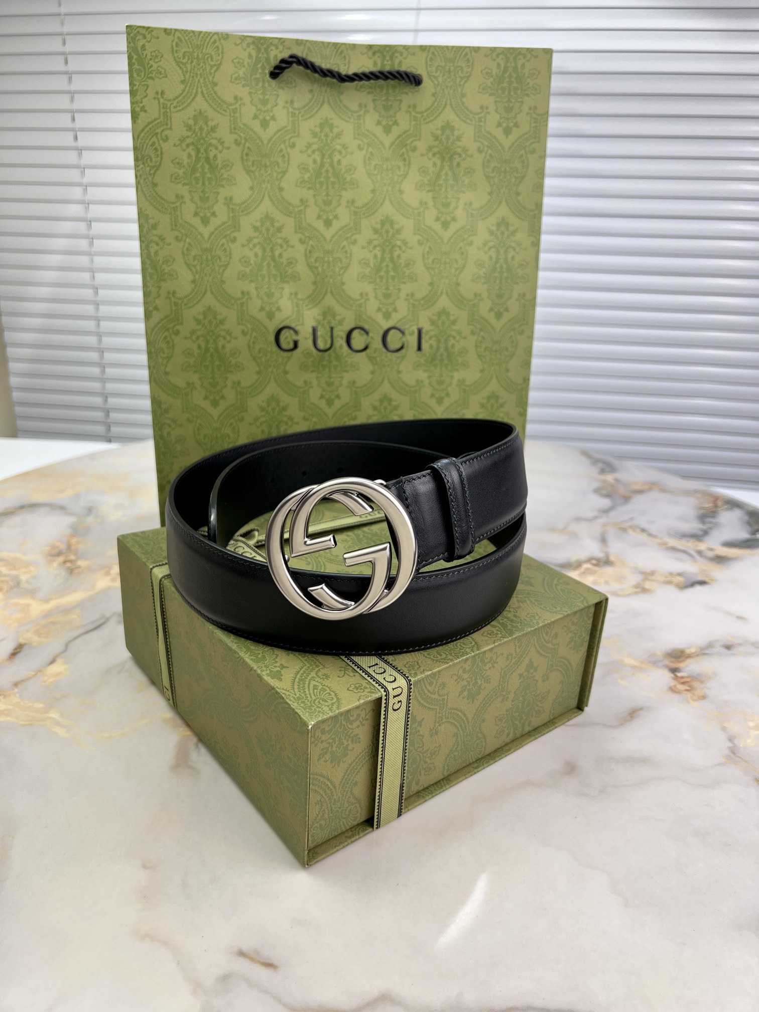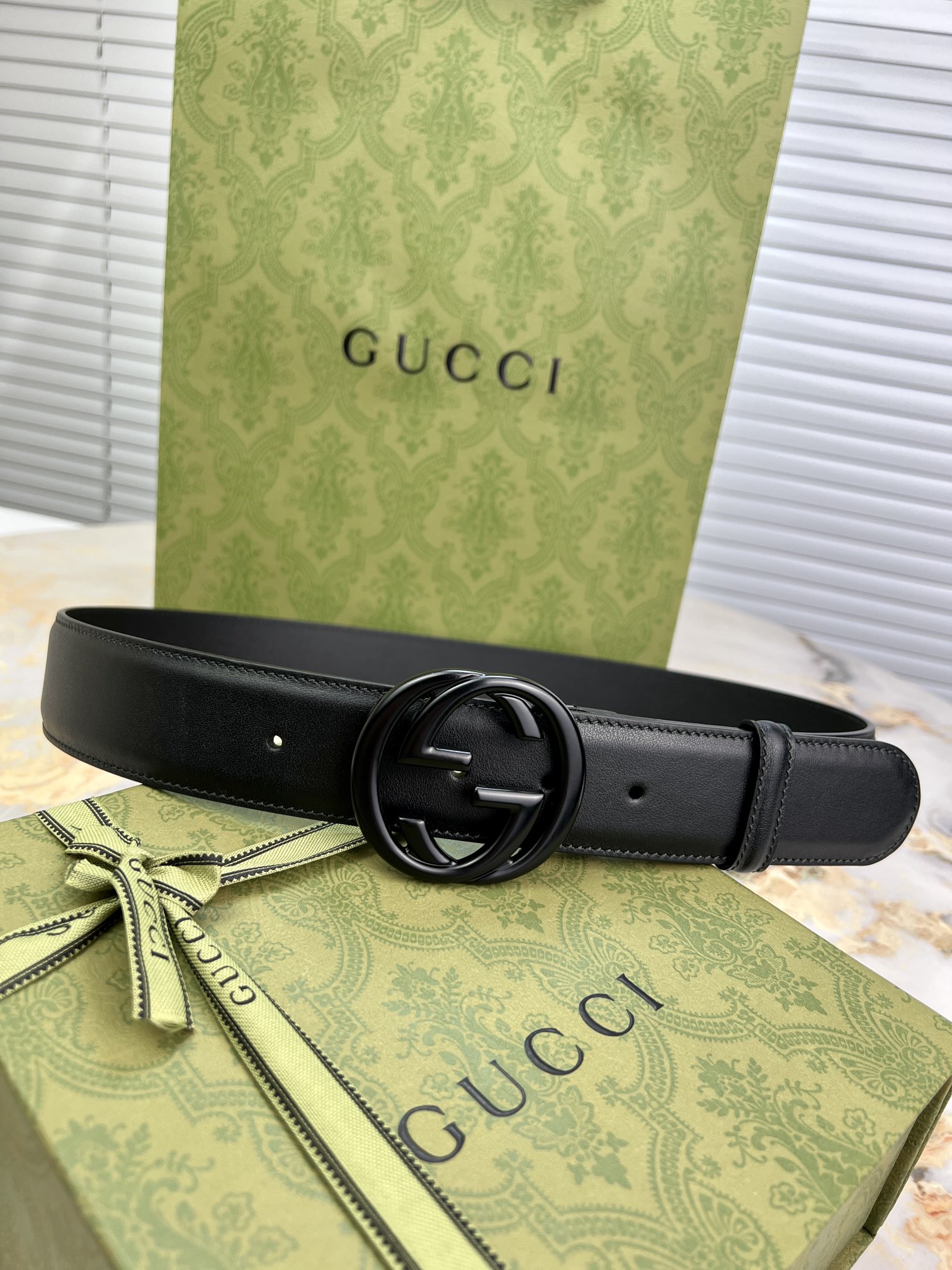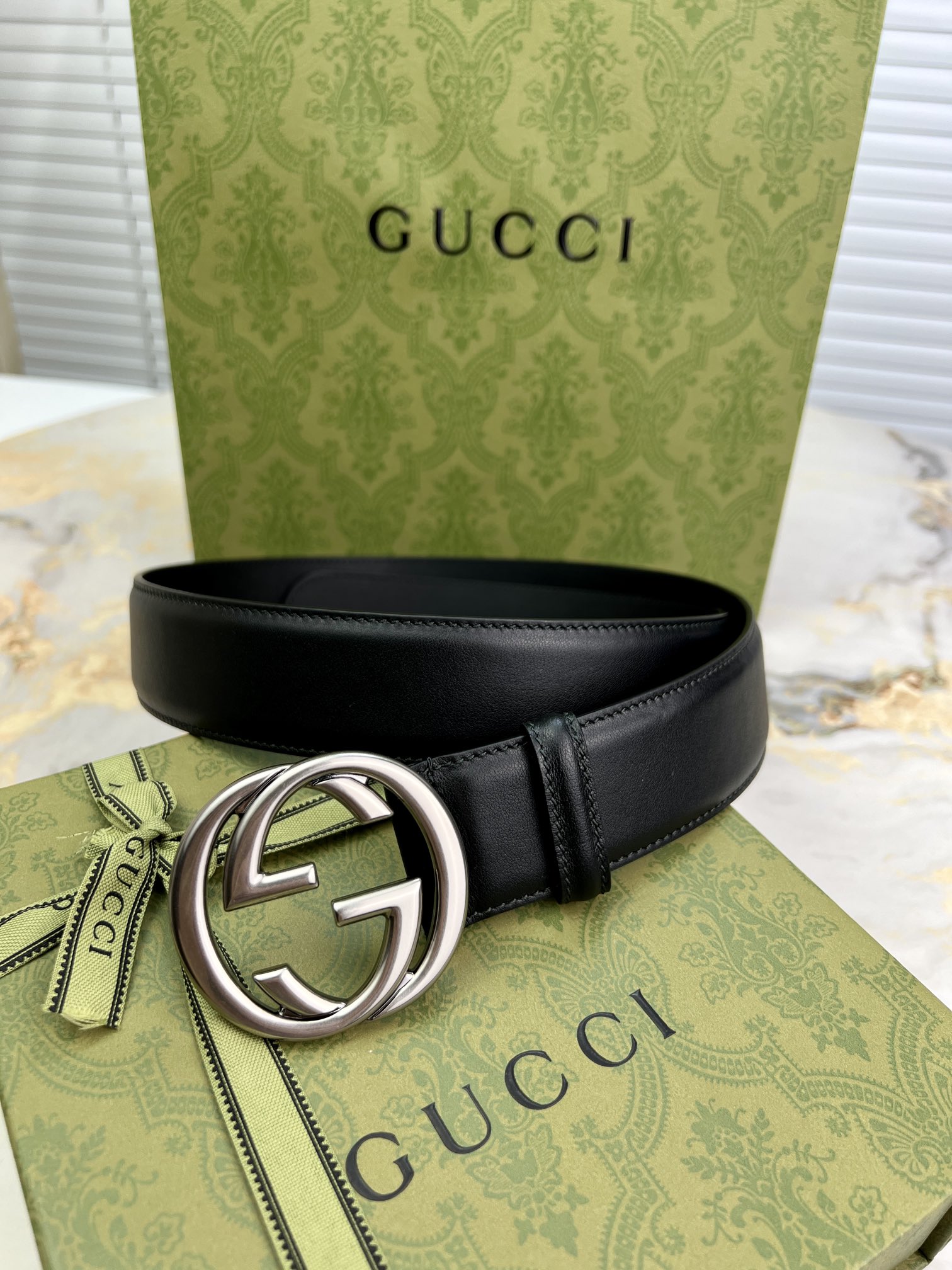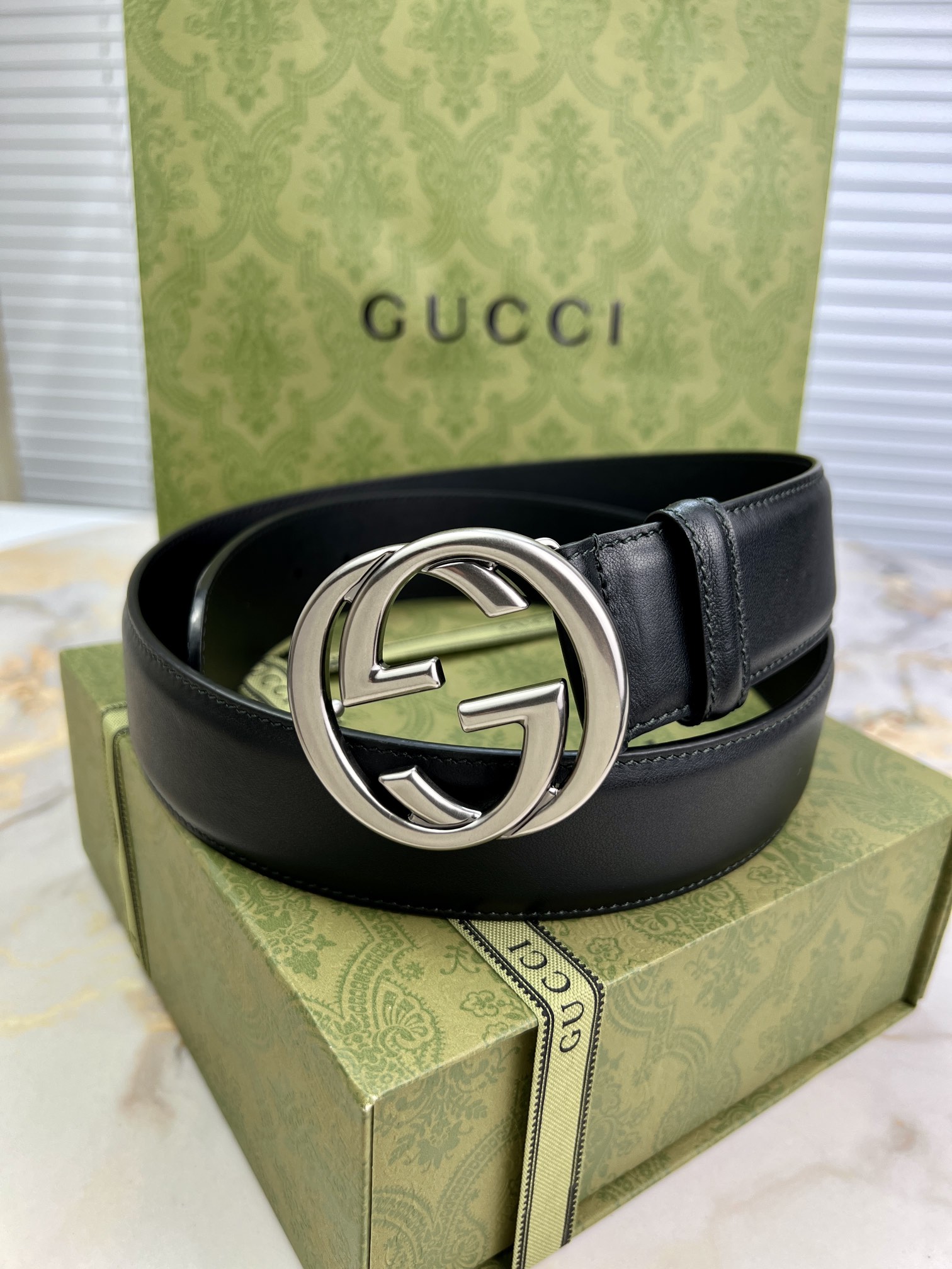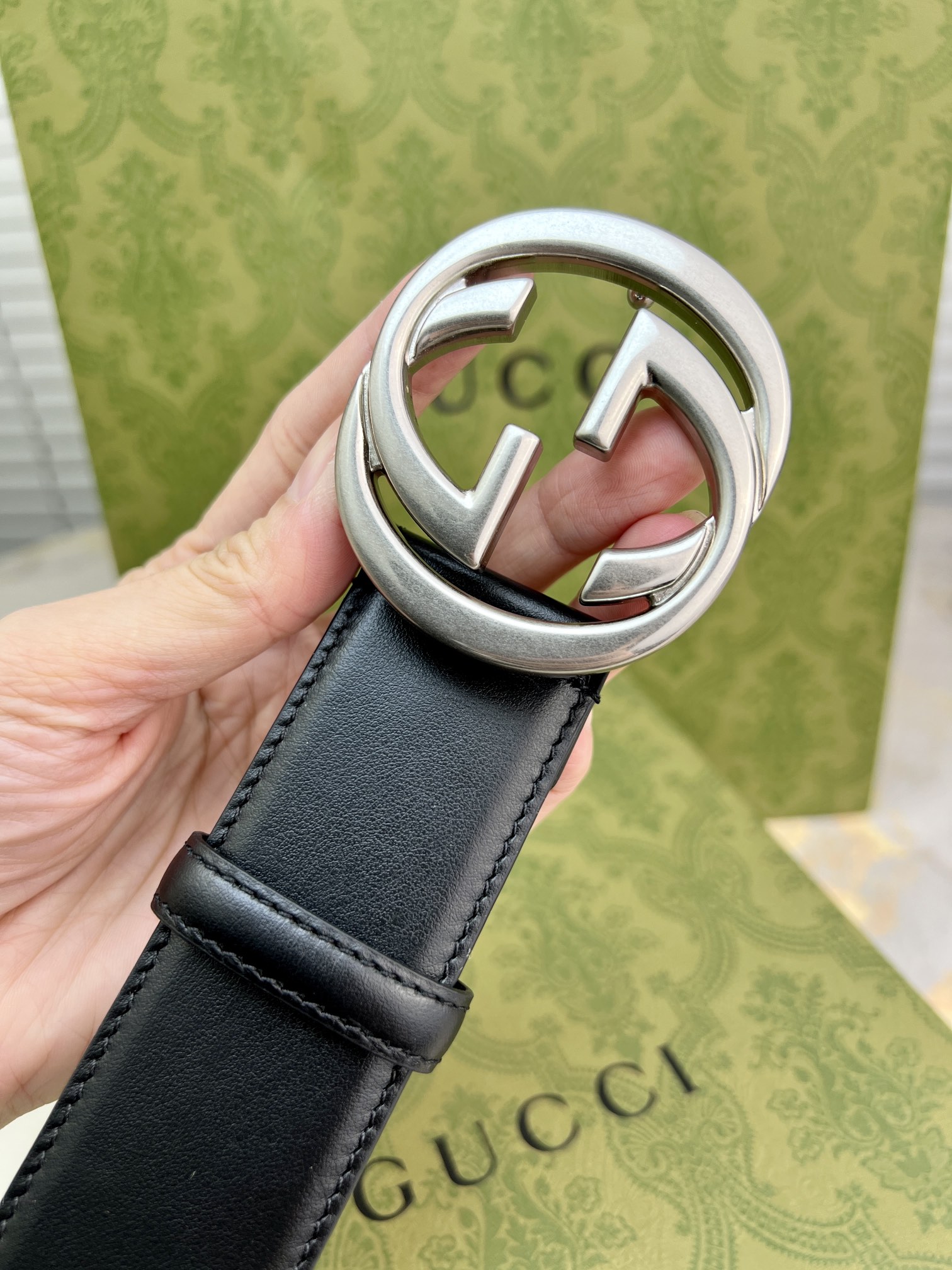 GU 奇腰带 光面平纹牛皮🐂 专属定制真空电镀亮面五金 ,😍时尚出行 🎁配专柜全套包装,宽:4cm💰