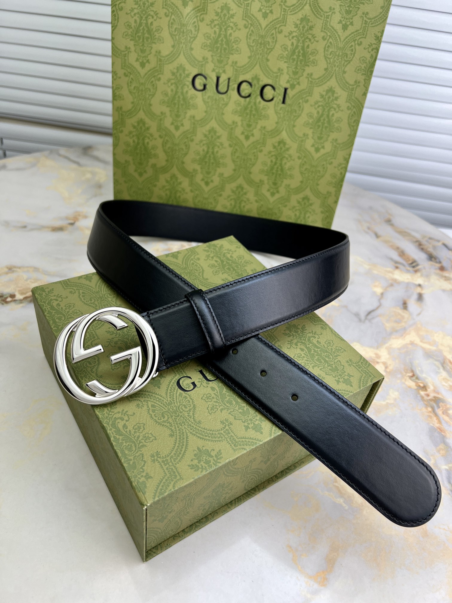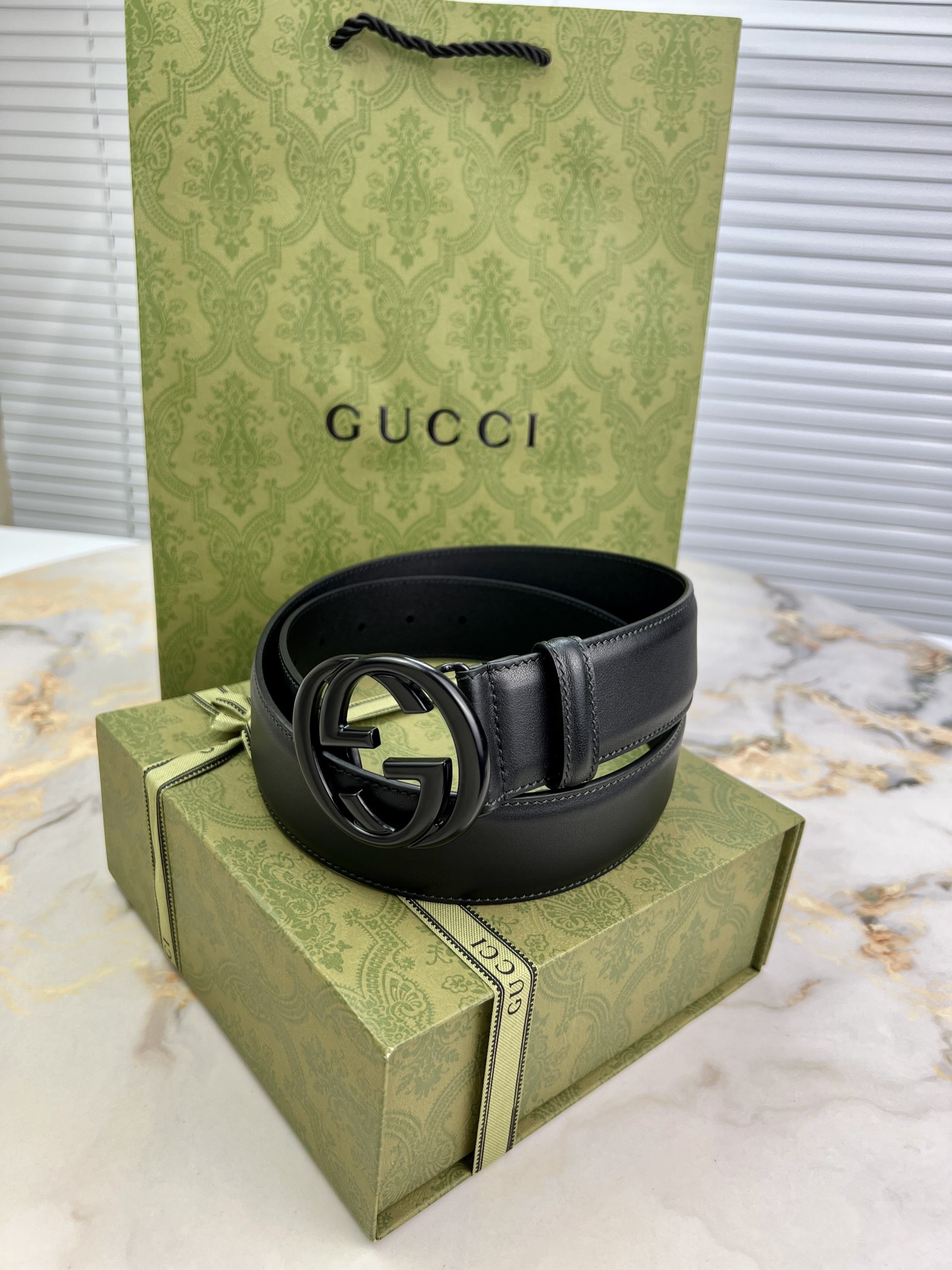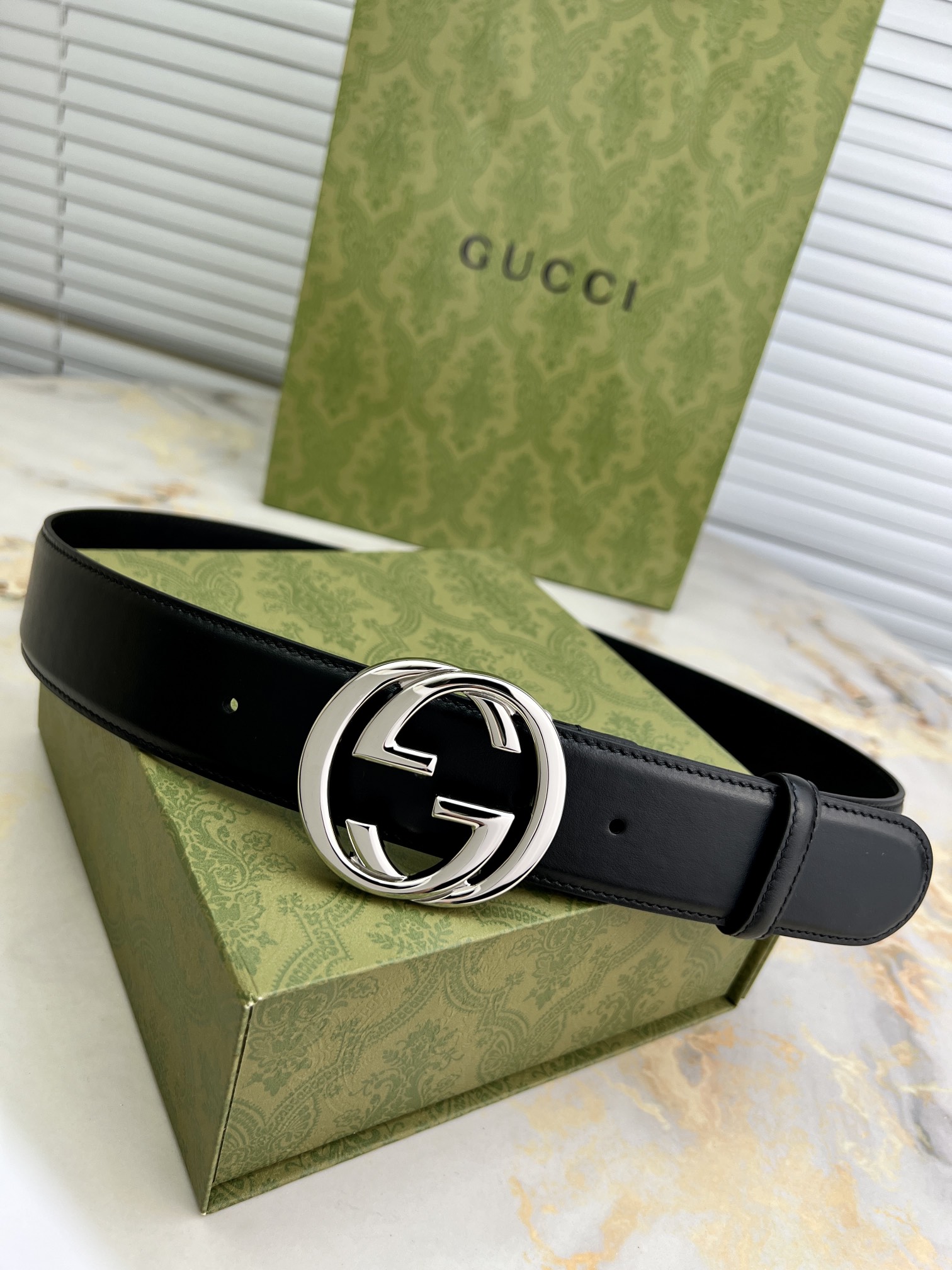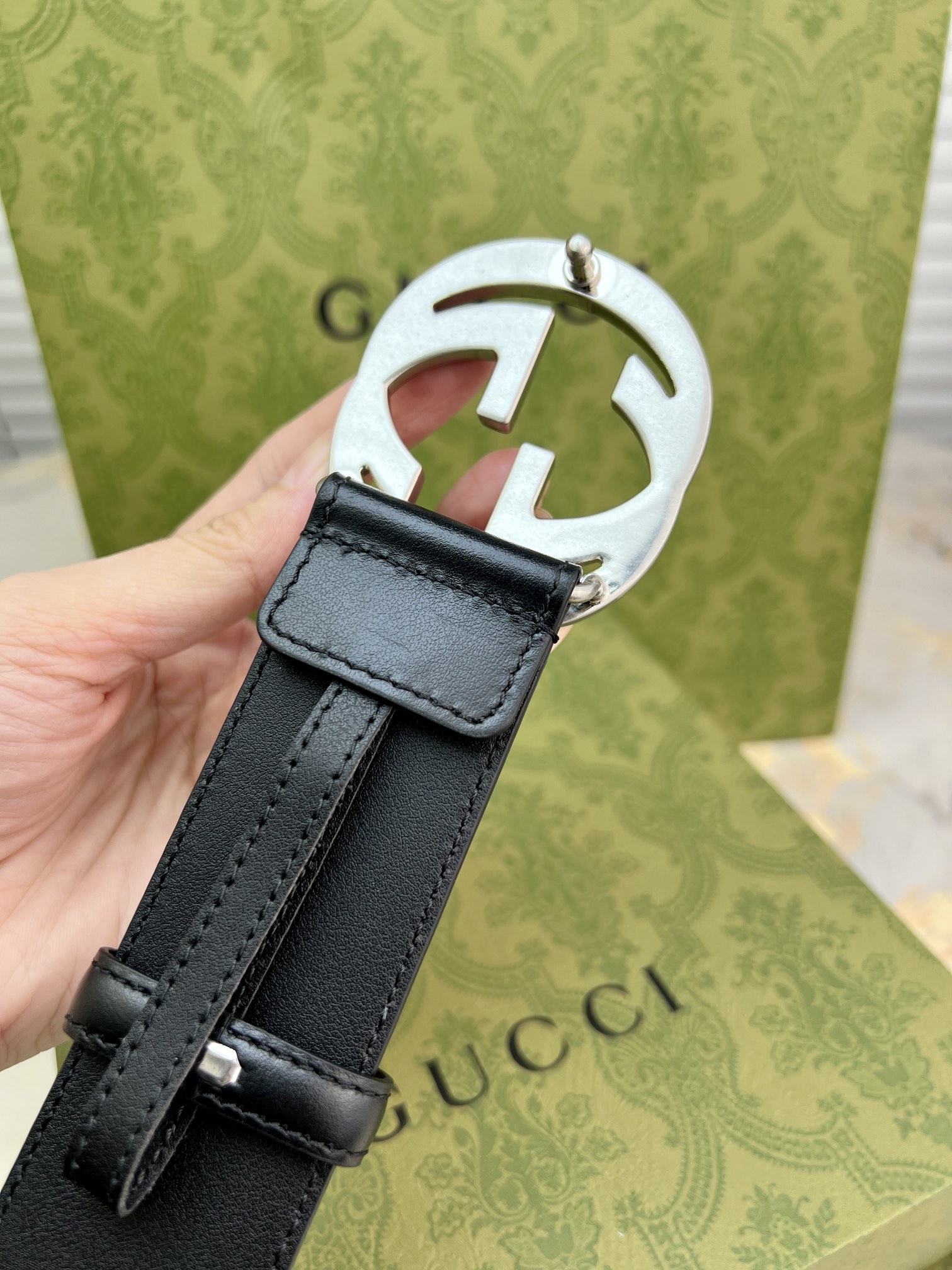 GU 奇腰带 光面平纹牛皮🐂 专属定制真空电镀亮面五金 ,😍时尚出行 🎁配专柜全套包装,宽:4cm💰