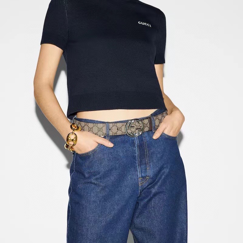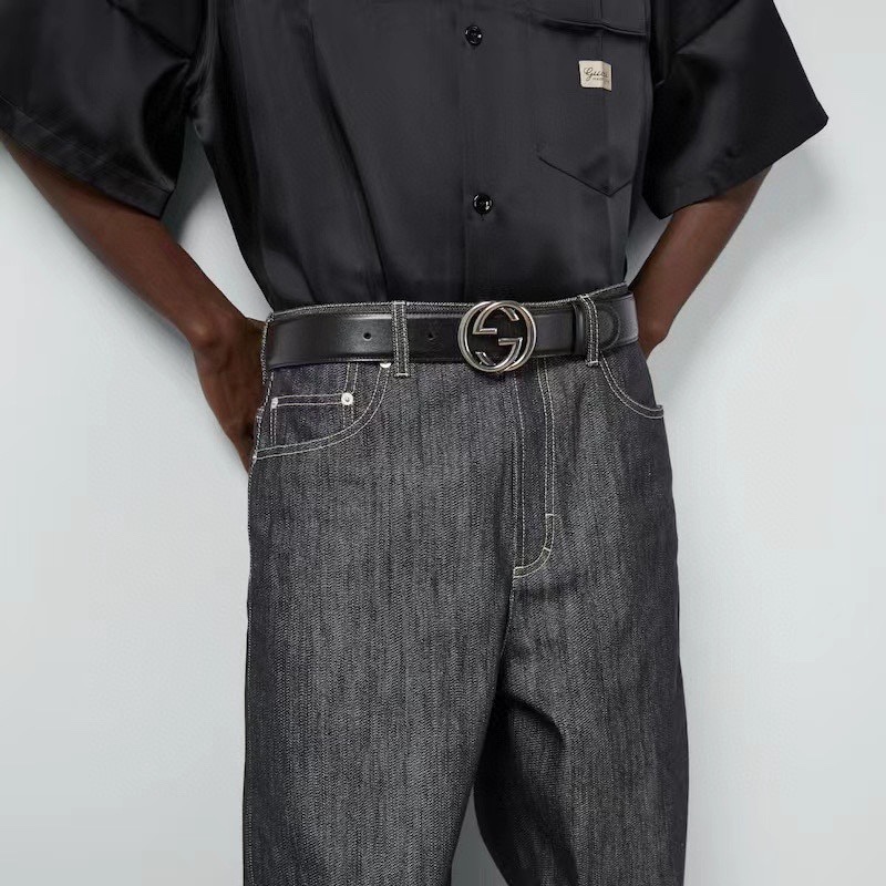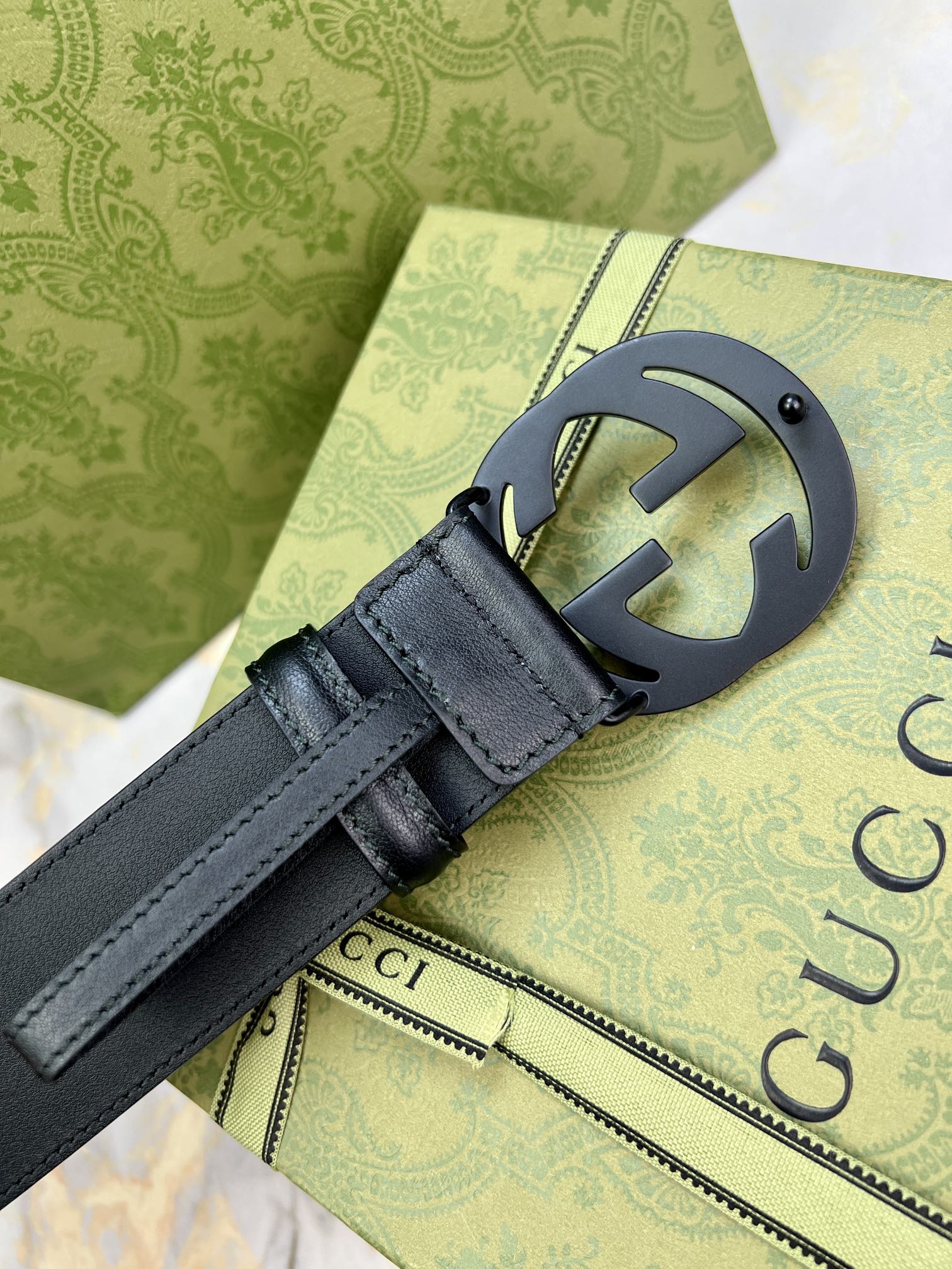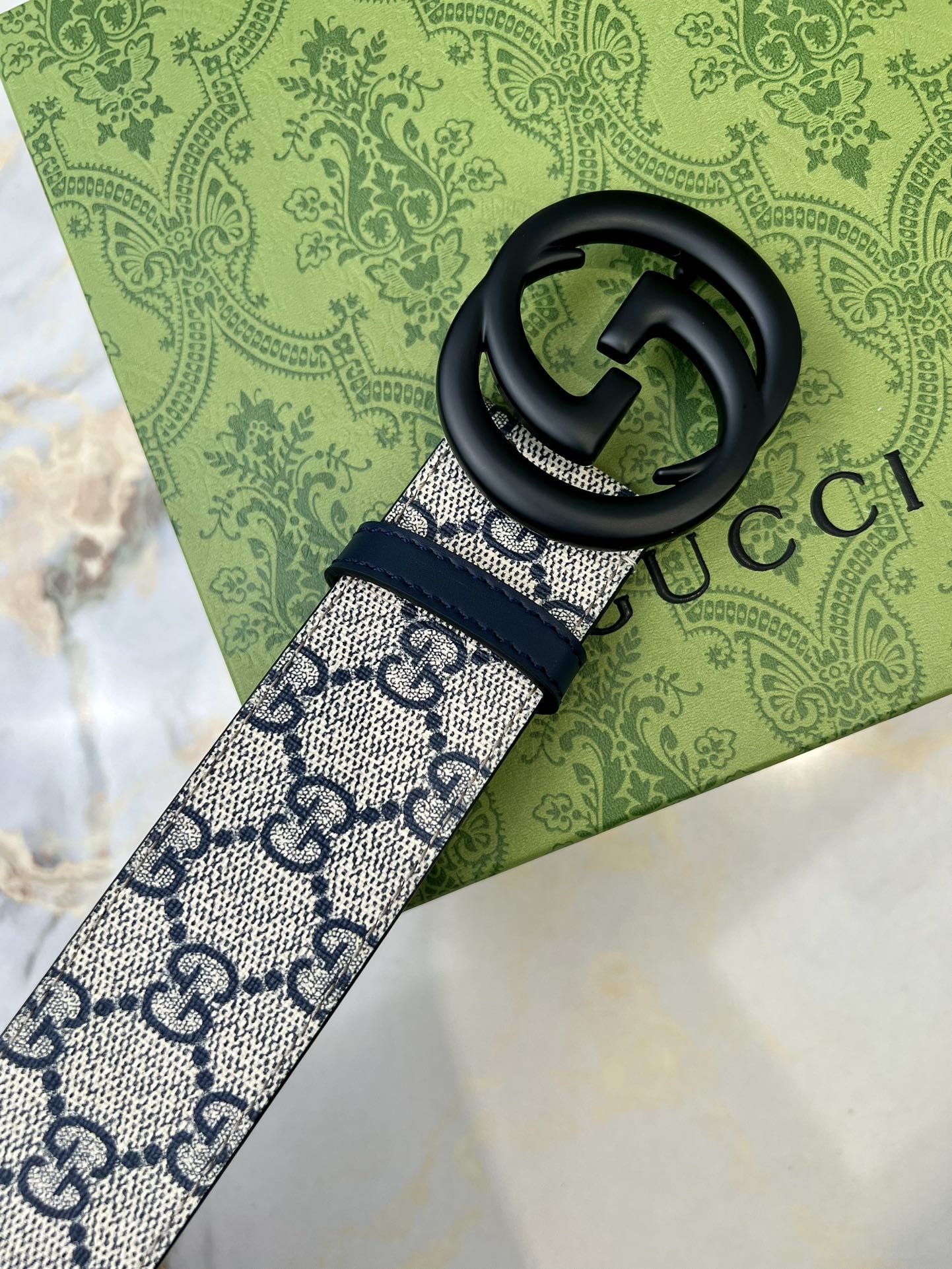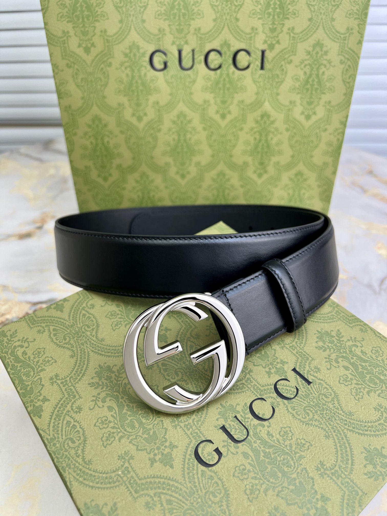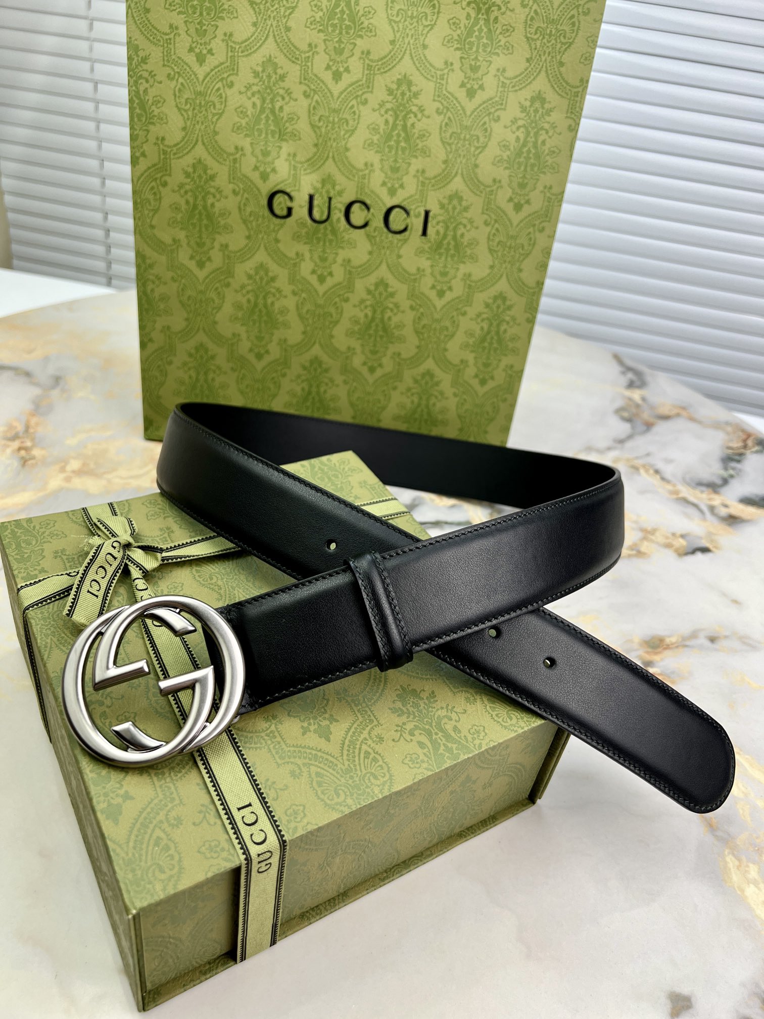 GU 奇腰带 光面平纹牛皮🐂 专属定制真空电镀亮面五金 ,😍时尚出行 🎁配专柜全套包装,宽:4cm💰