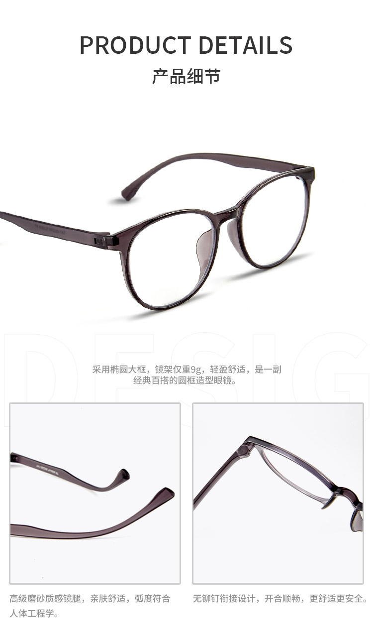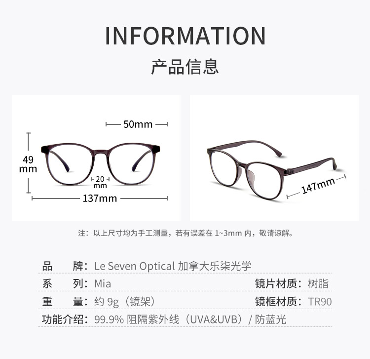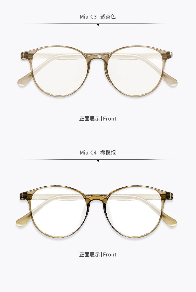 【森哥优选】乐柒 成人防蓝光眼镜超轻透色素颜框椭圆大框百搭时尚韩版Mia ‘不可配度数’ LeSeven