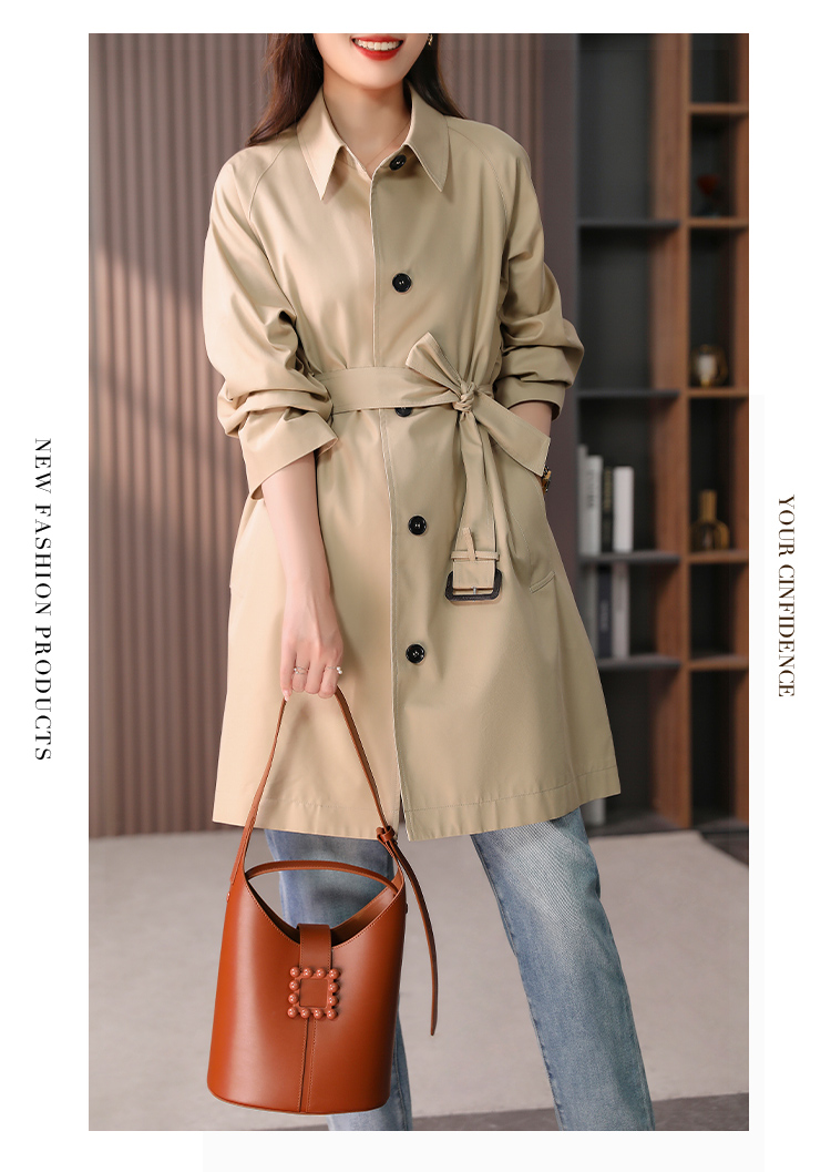 89378原形系带收腰风衣外套女2024秋季新款韩版中长款小个子显瘦上衣