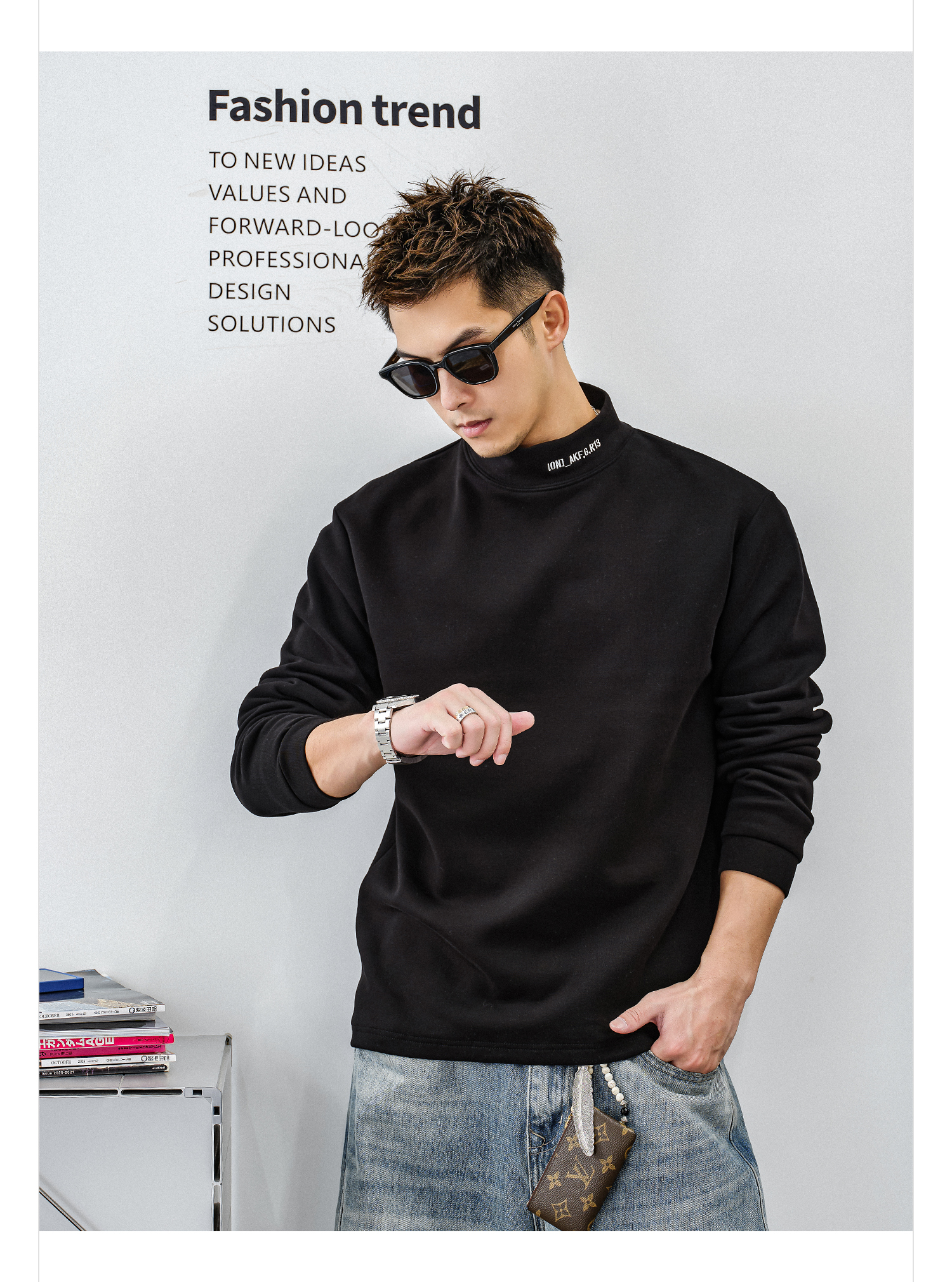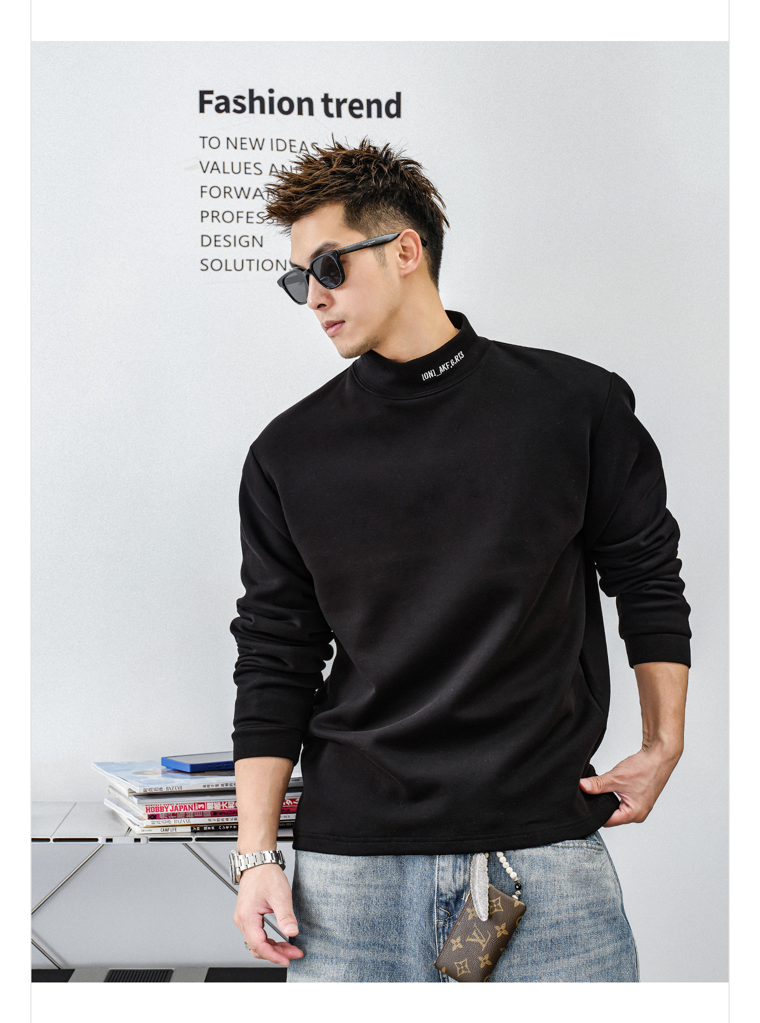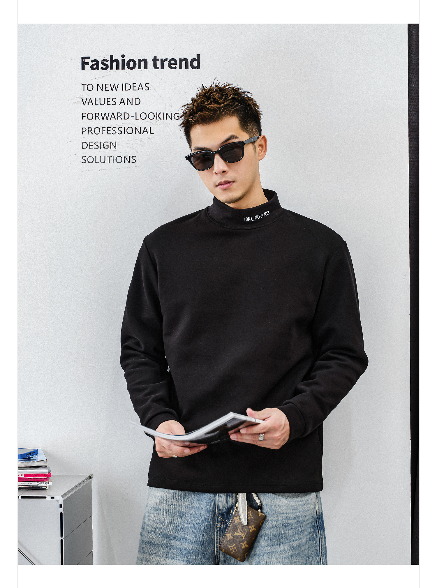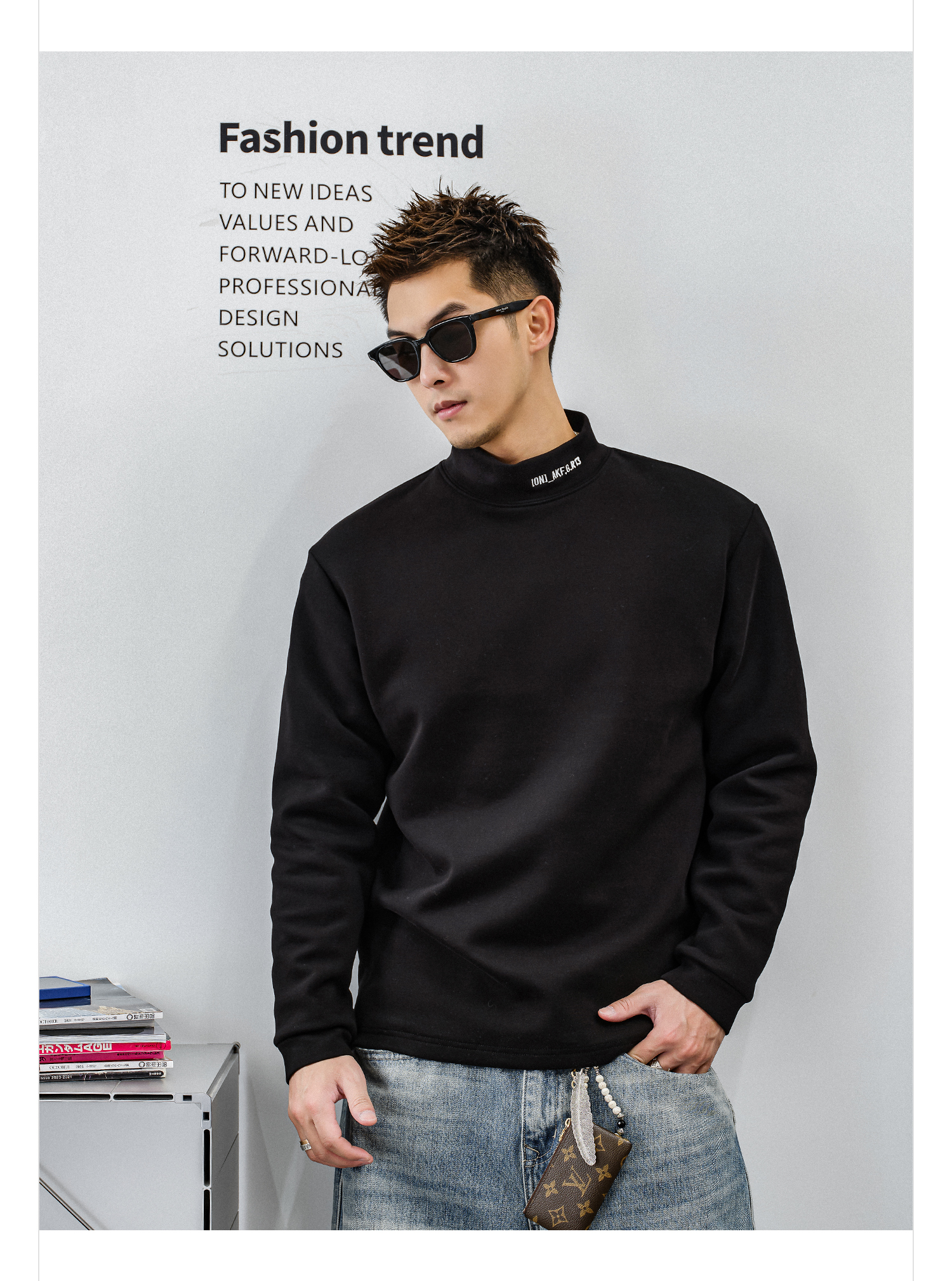 徐太浪【莫代尔混纺 字母刺绣】半高领长袖T恤男秋冬款打底衫上衣