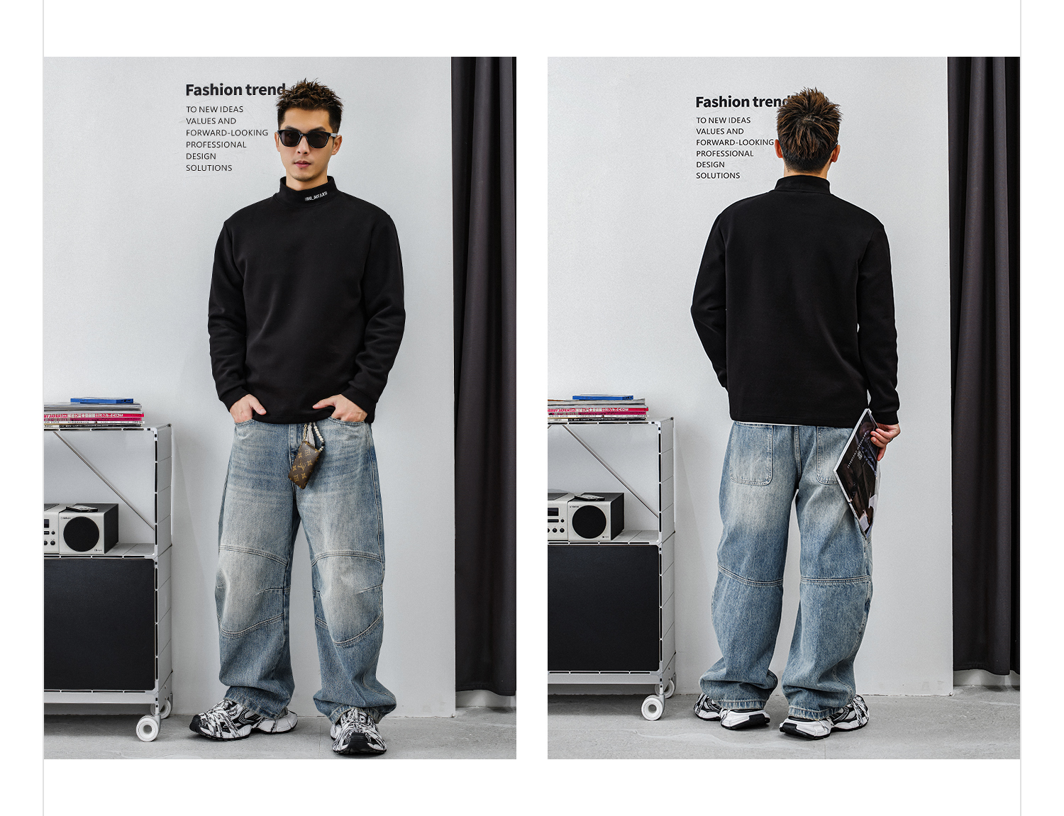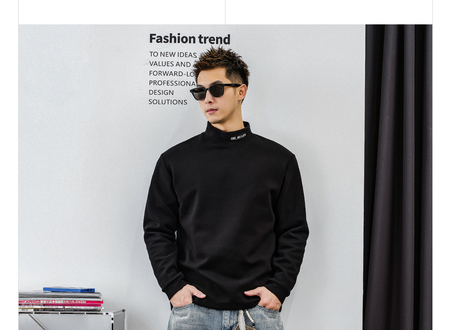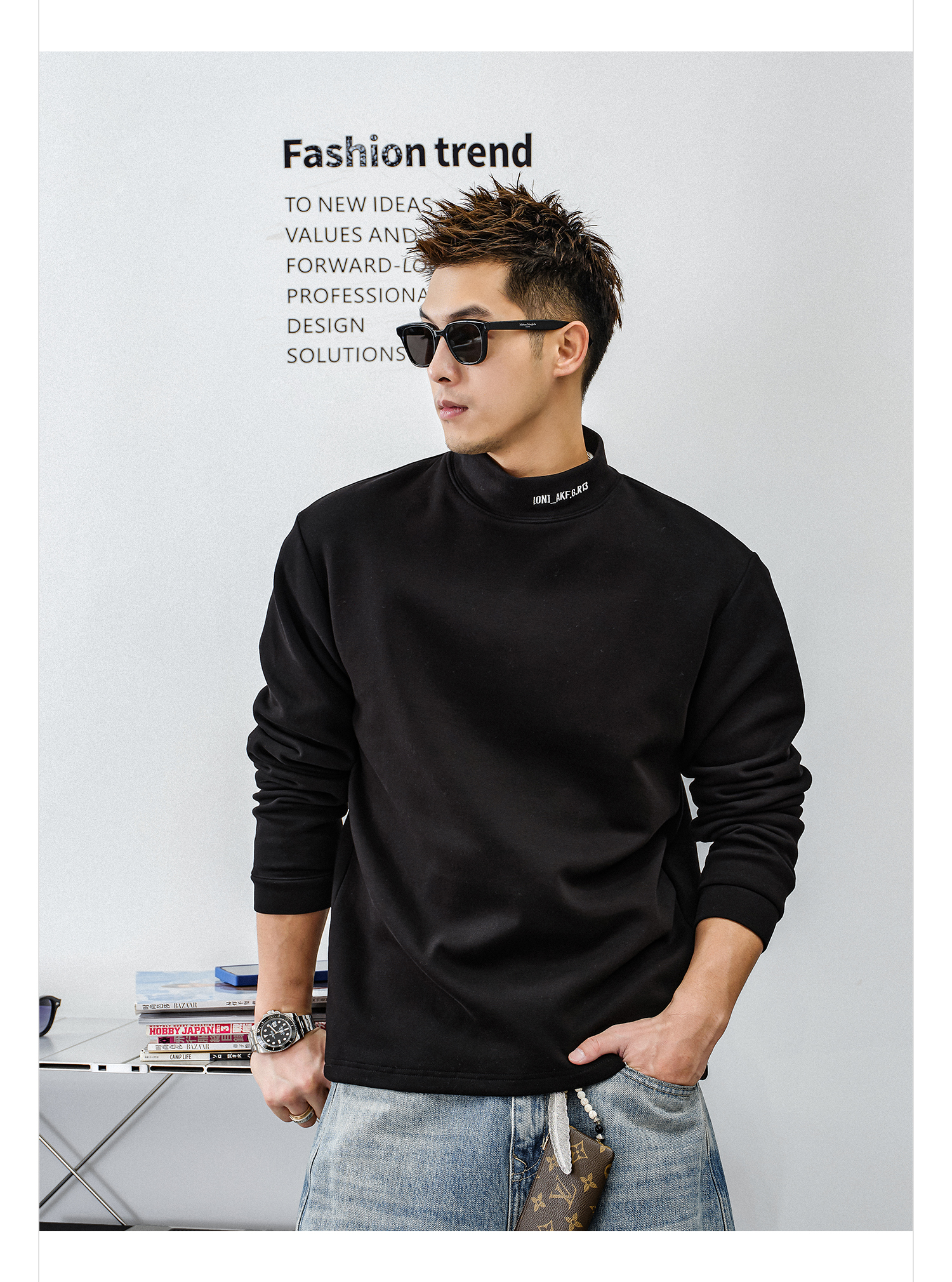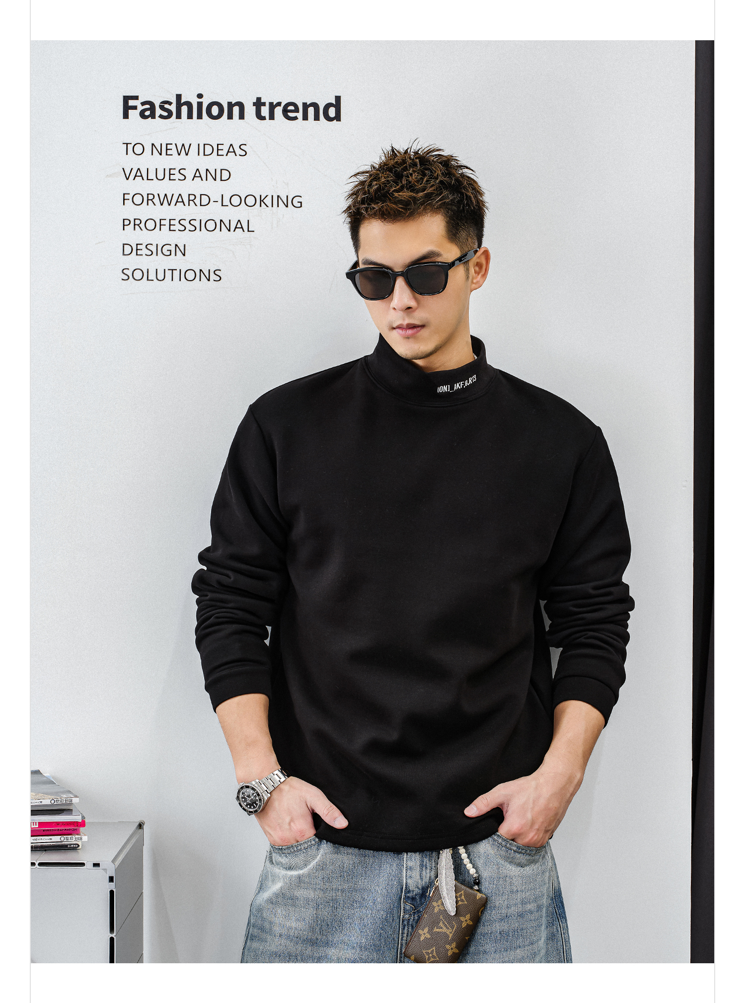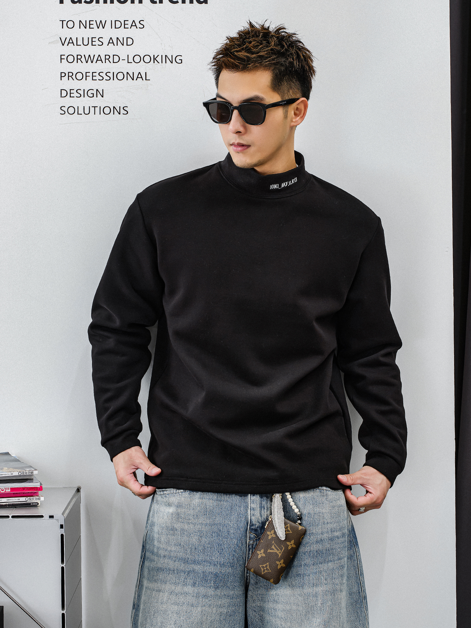 徐太浪【莫代尔混纺 字母刺绣】半高领长袖T恤男秋冬款打底衫上衣