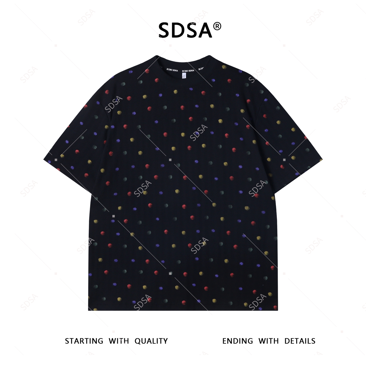 T3901夏季高级感新款男士简约彩色波点图案短袖T恤百搭时尚圆领上衣