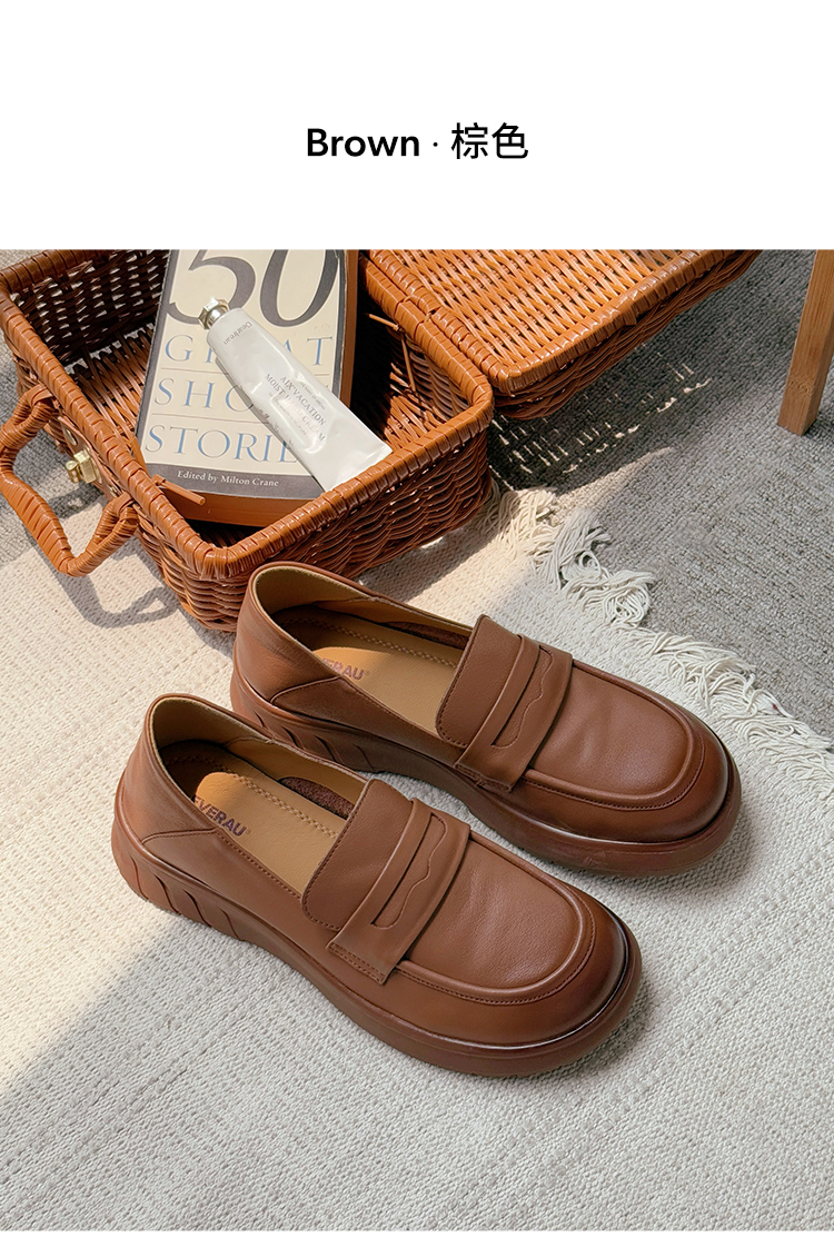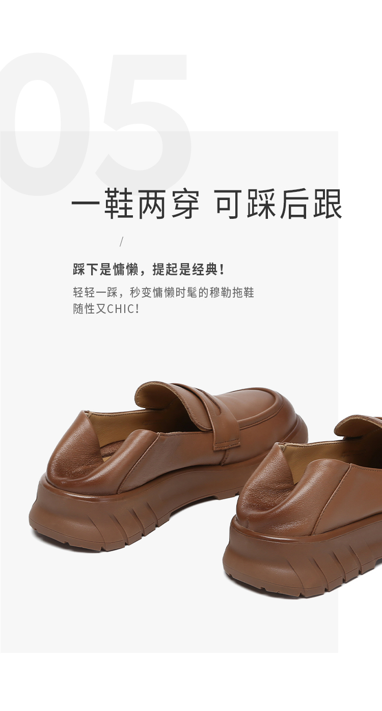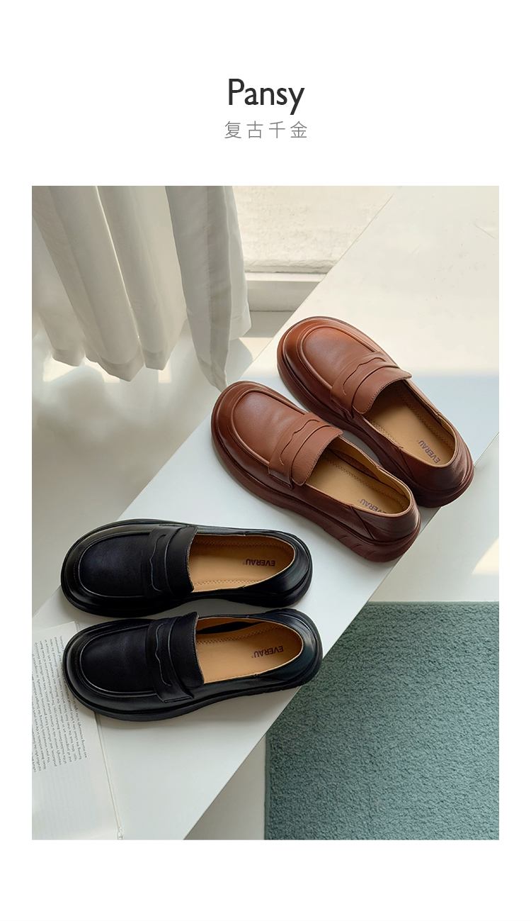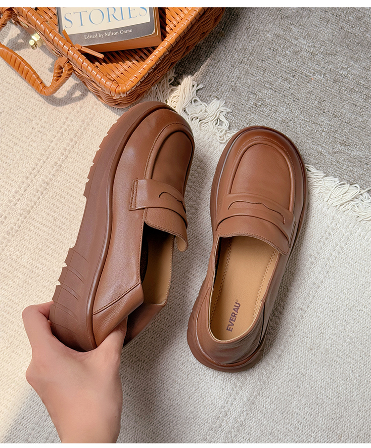 【澳洲品牌】澳洲EVERAU经典牛皮复古千金乐福鞋可踩后跟春夏舒适女鞋EA7084