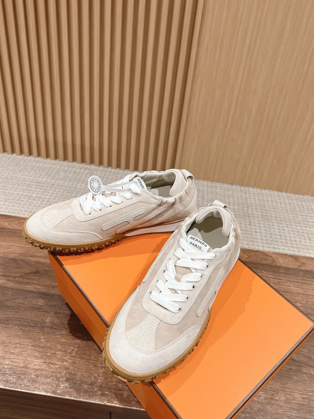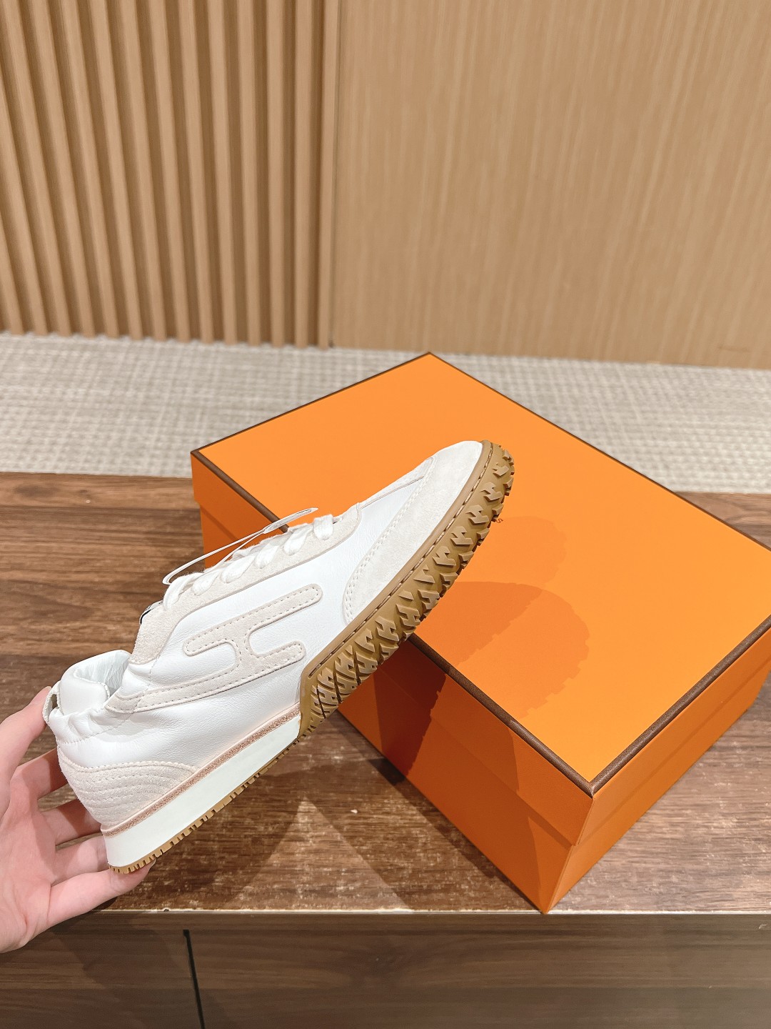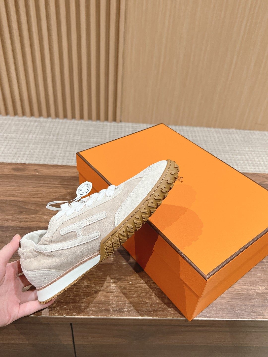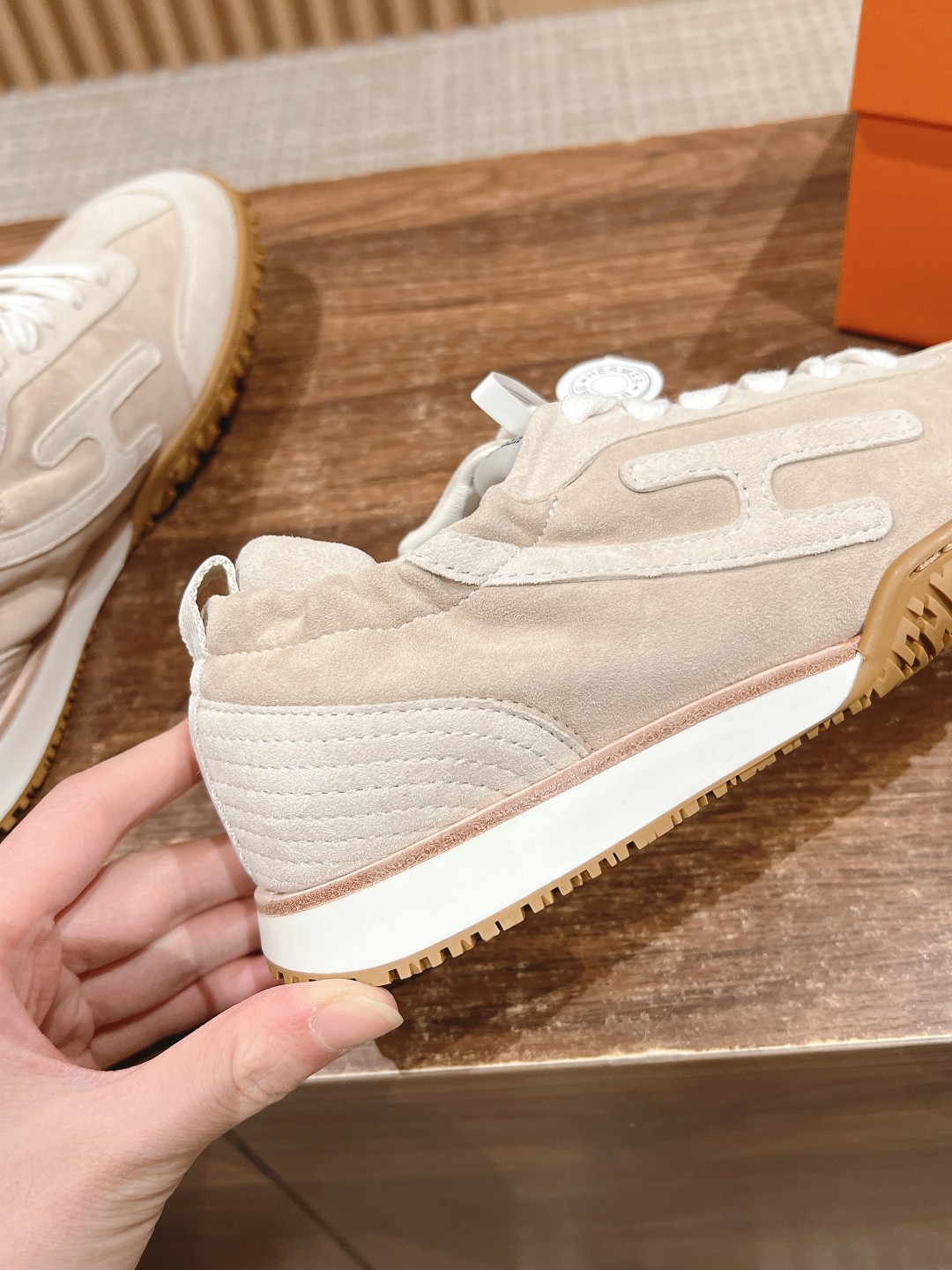 原版购入开发 H家运动鞋 镂孔柔软麂皮山羊皮运动鞋,配有鞋底,饰有经典H侧标,打造舒适休闲风格