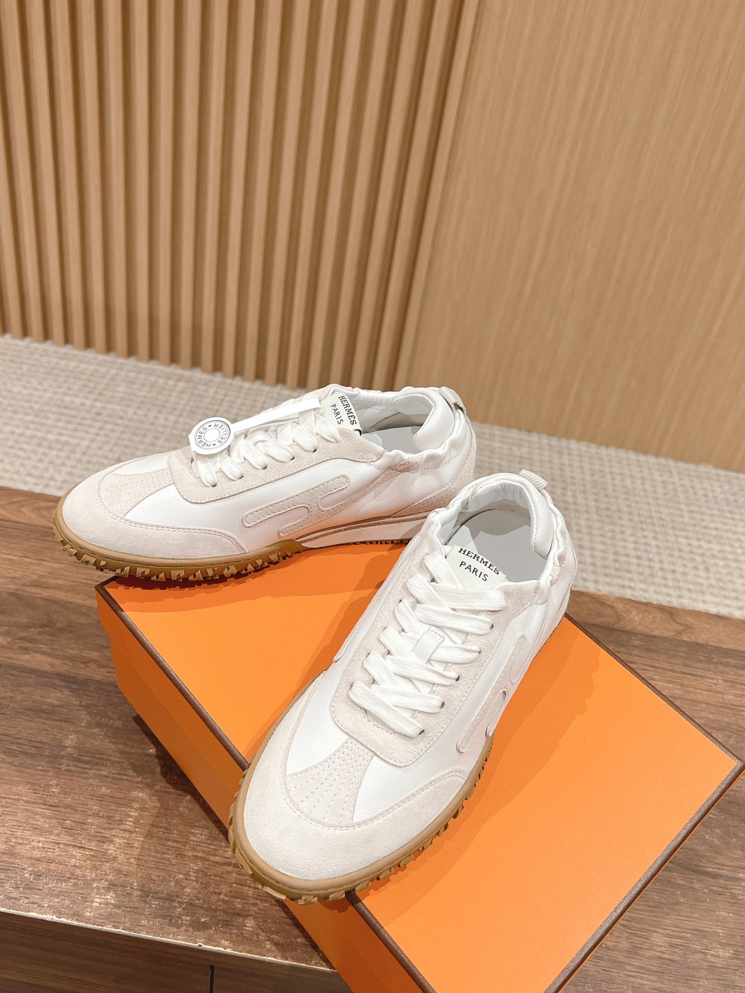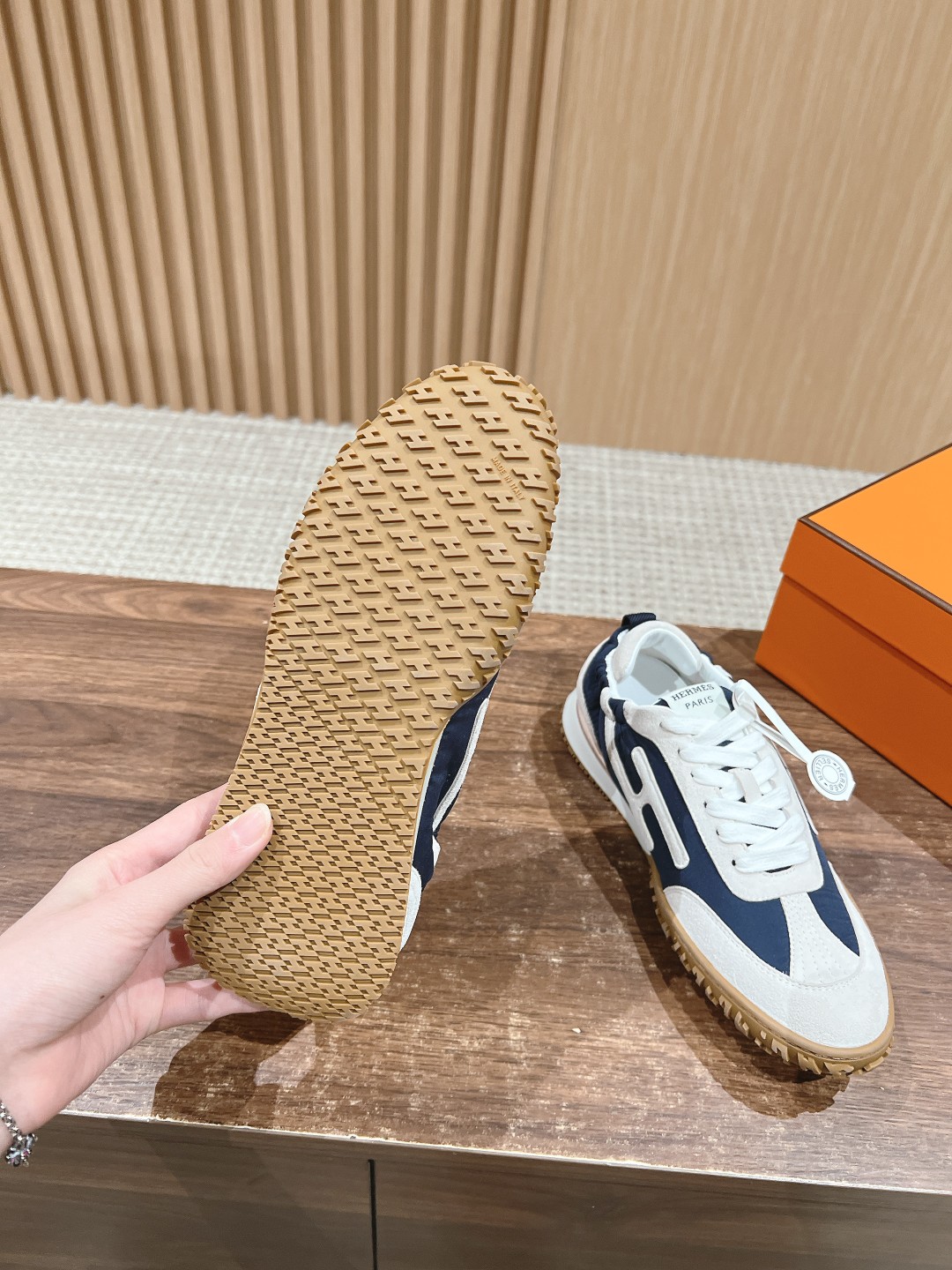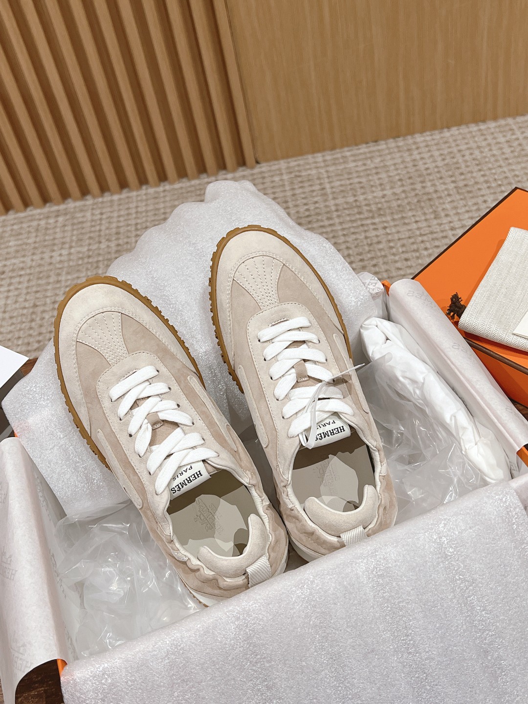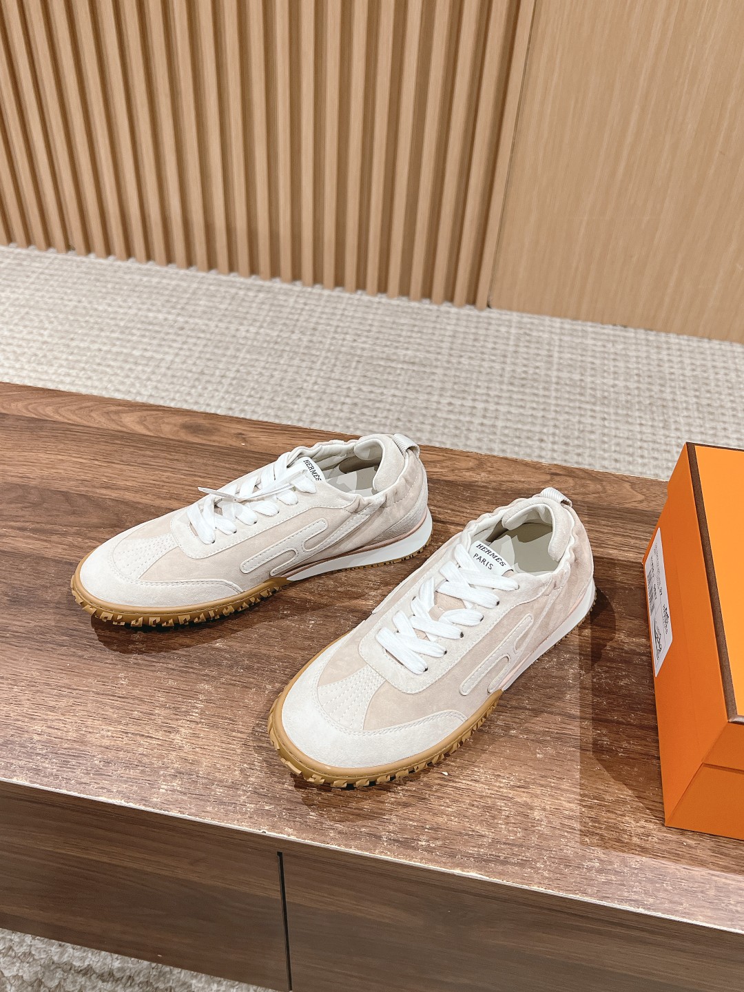 原版购入开发 H家运动鞋 镂孔柔软麂皮山羊皮运动鞋,配有鞋底,饰有经典H侧标,打造舒适休闲风格