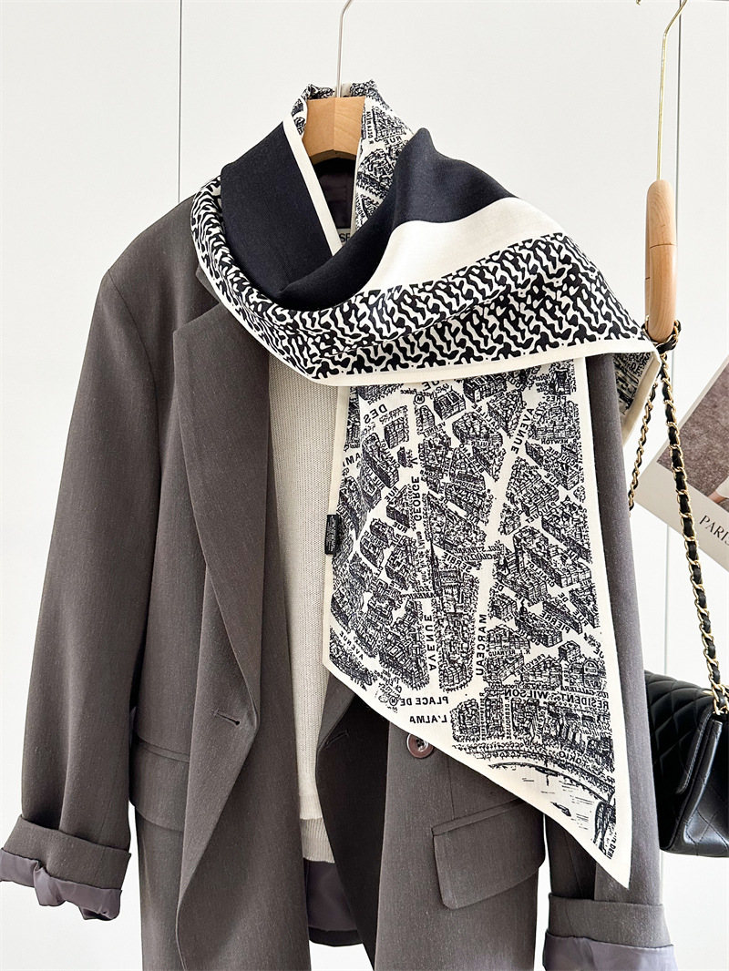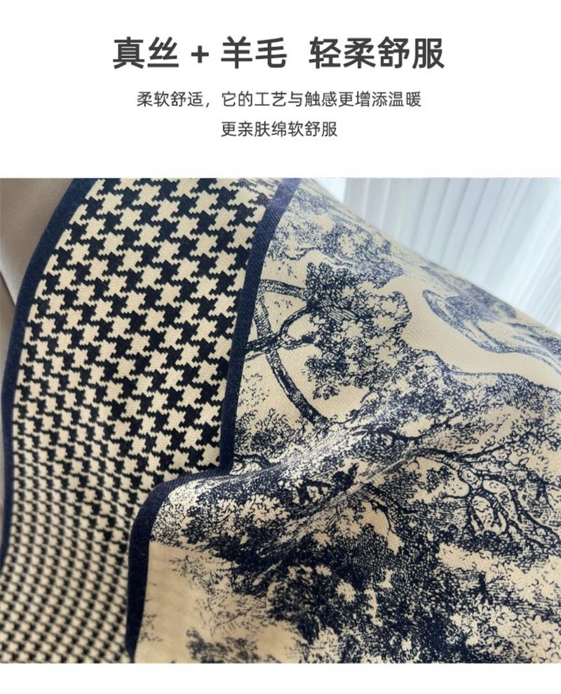 阿毣毣 老钱风高级围巾冬季新款双面层真丝羊毛百搭保暖丝巾