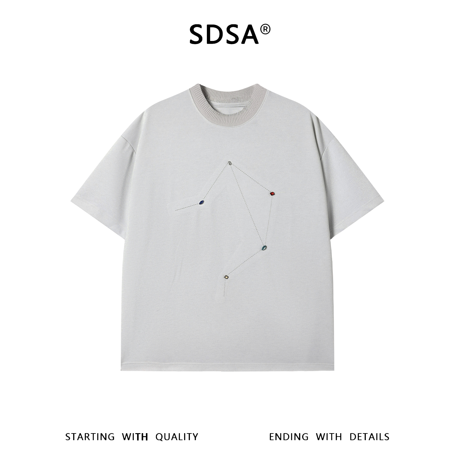 SDSA男装2026新款高贵轻奢座线迹彩石装饰宽松短袖T恤百搭时尚