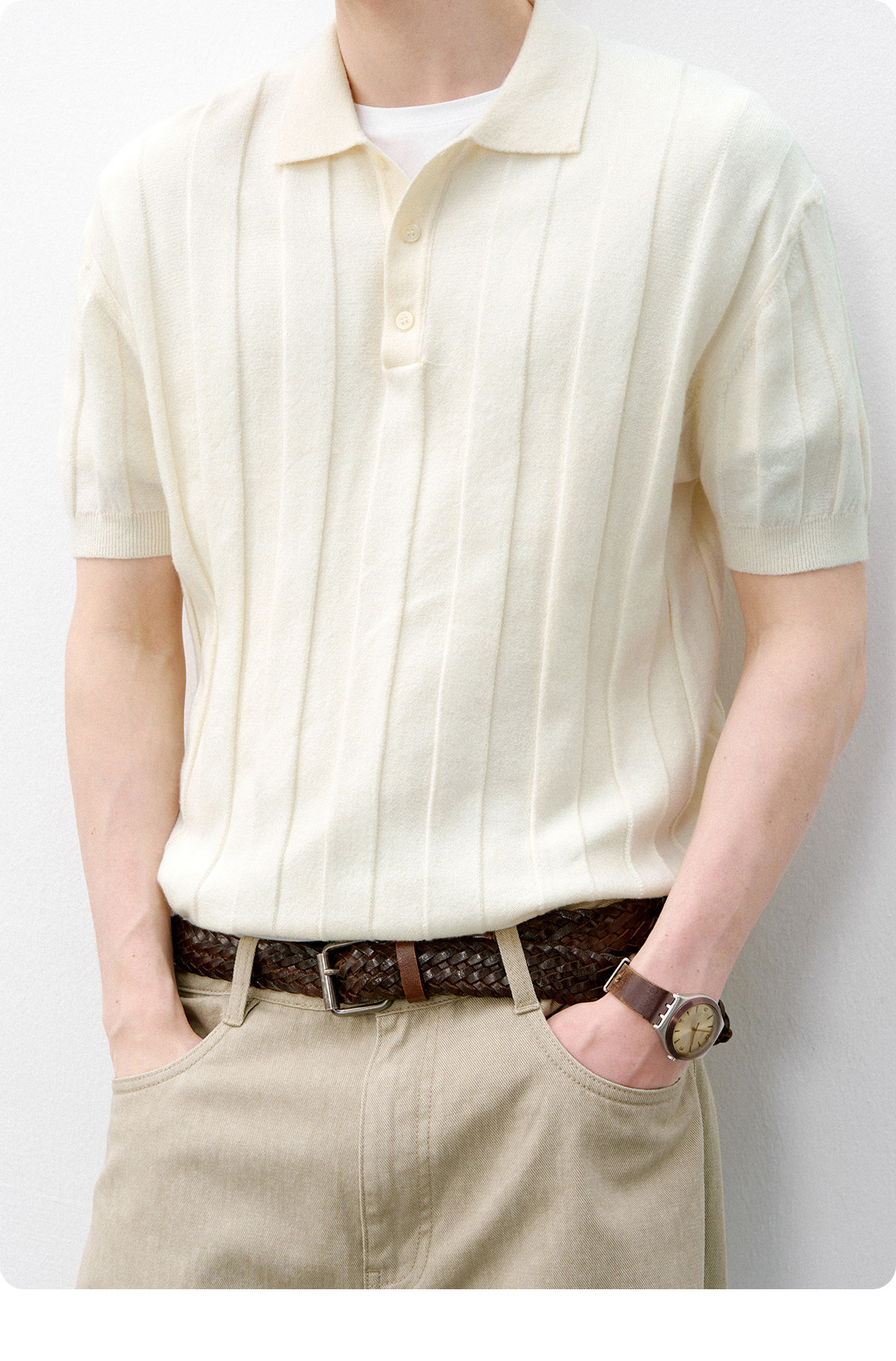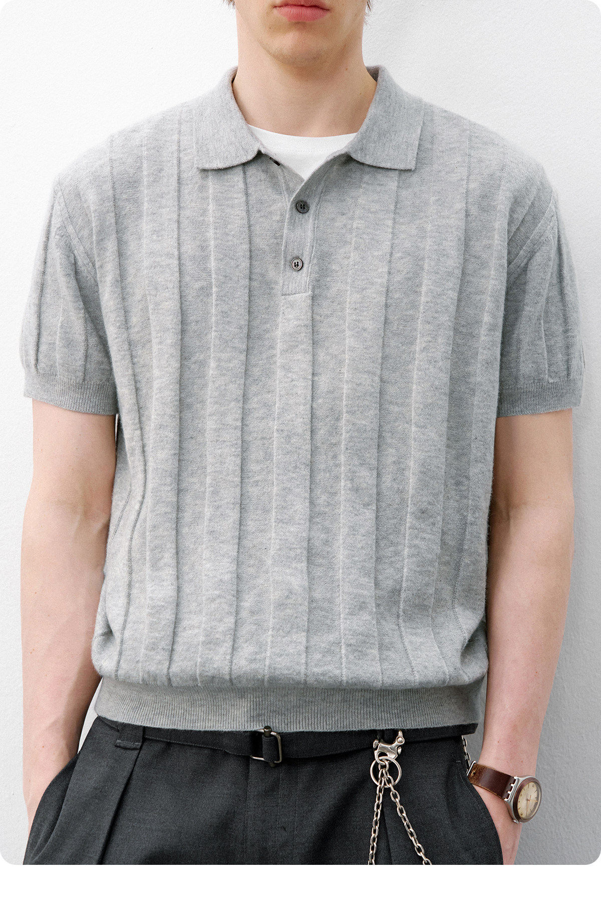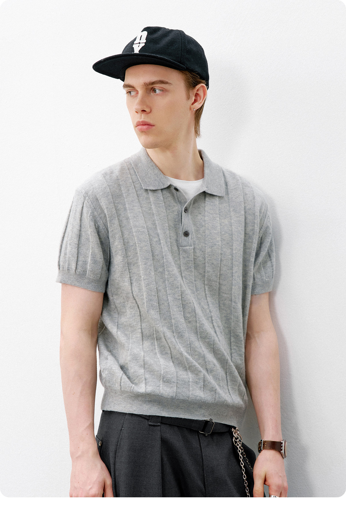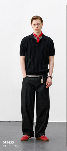 714street正肩合身暗条提花针织POLO衫2026夏季复古老钱短袖T恤男