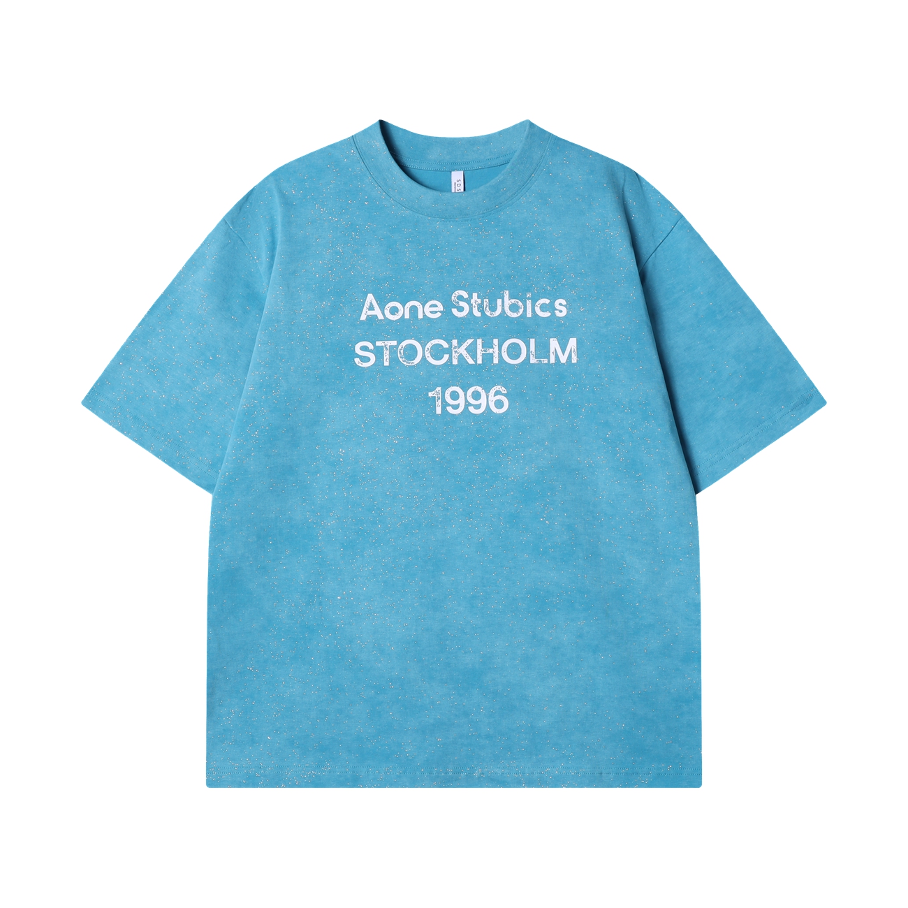 T2999夏季高级感新款美式扎染满天星短袖T恤字母数字印花百搭圆领上衣