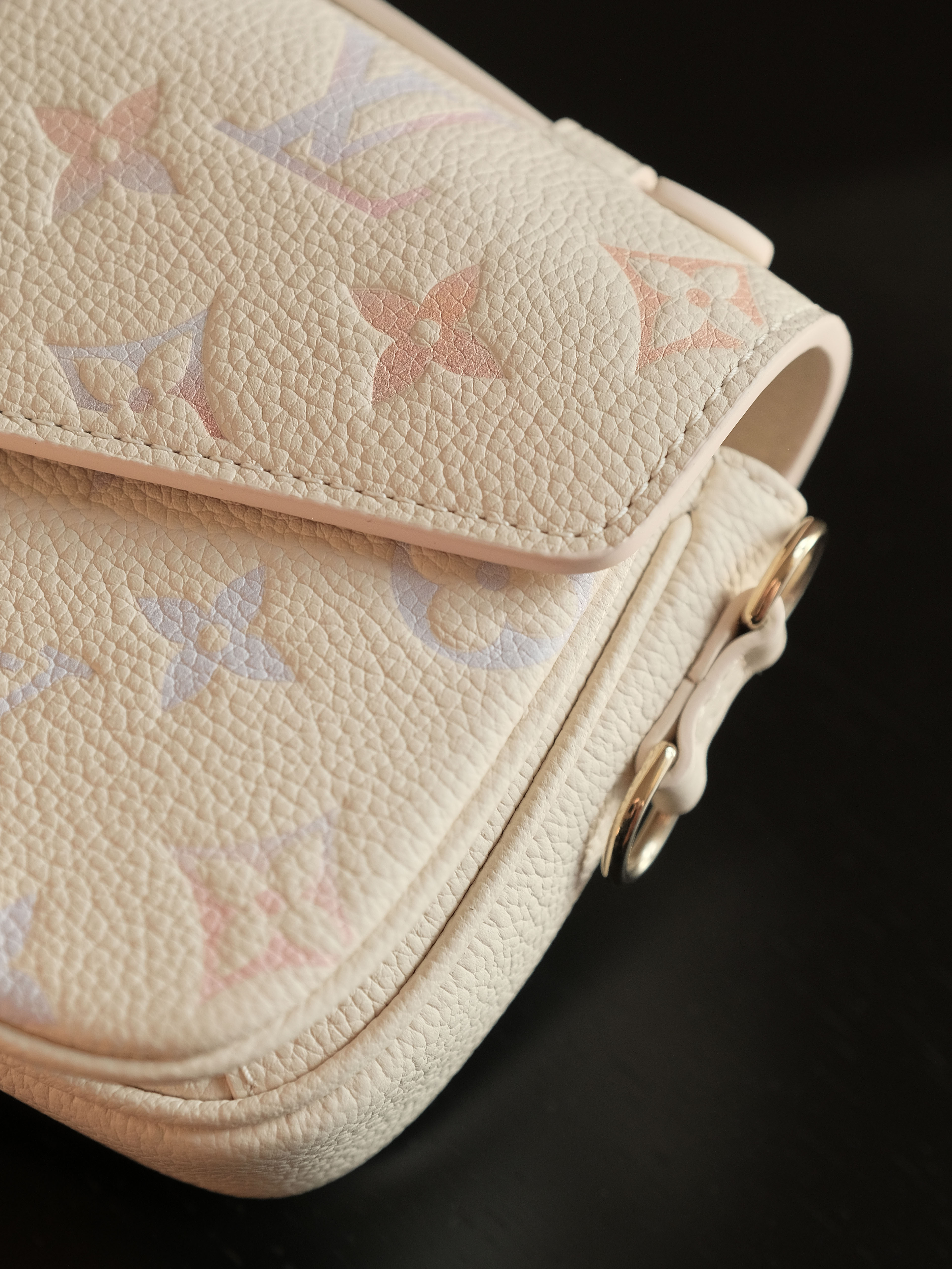 M25682-预售10天-驴家品牌徽标印花水彩渐变效果 梦幻紫白皮邮差 压纹粒面牛皮革 单肩斜挎手提包(DG*MM)