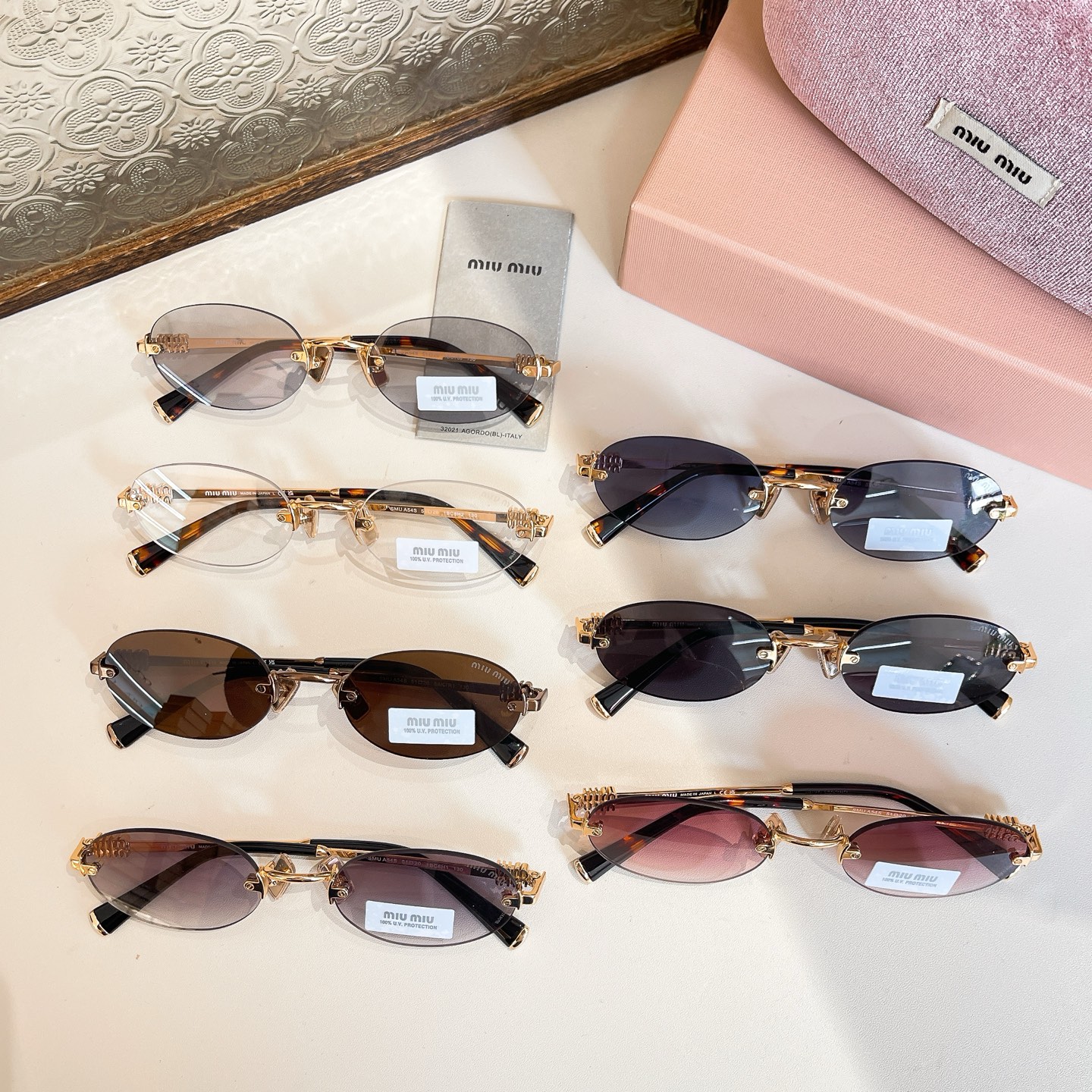 新款MIUMIU 缪缪 字母镜腿 金属无框复古椭圆形时尚太阳镜 光学眼镜架同步