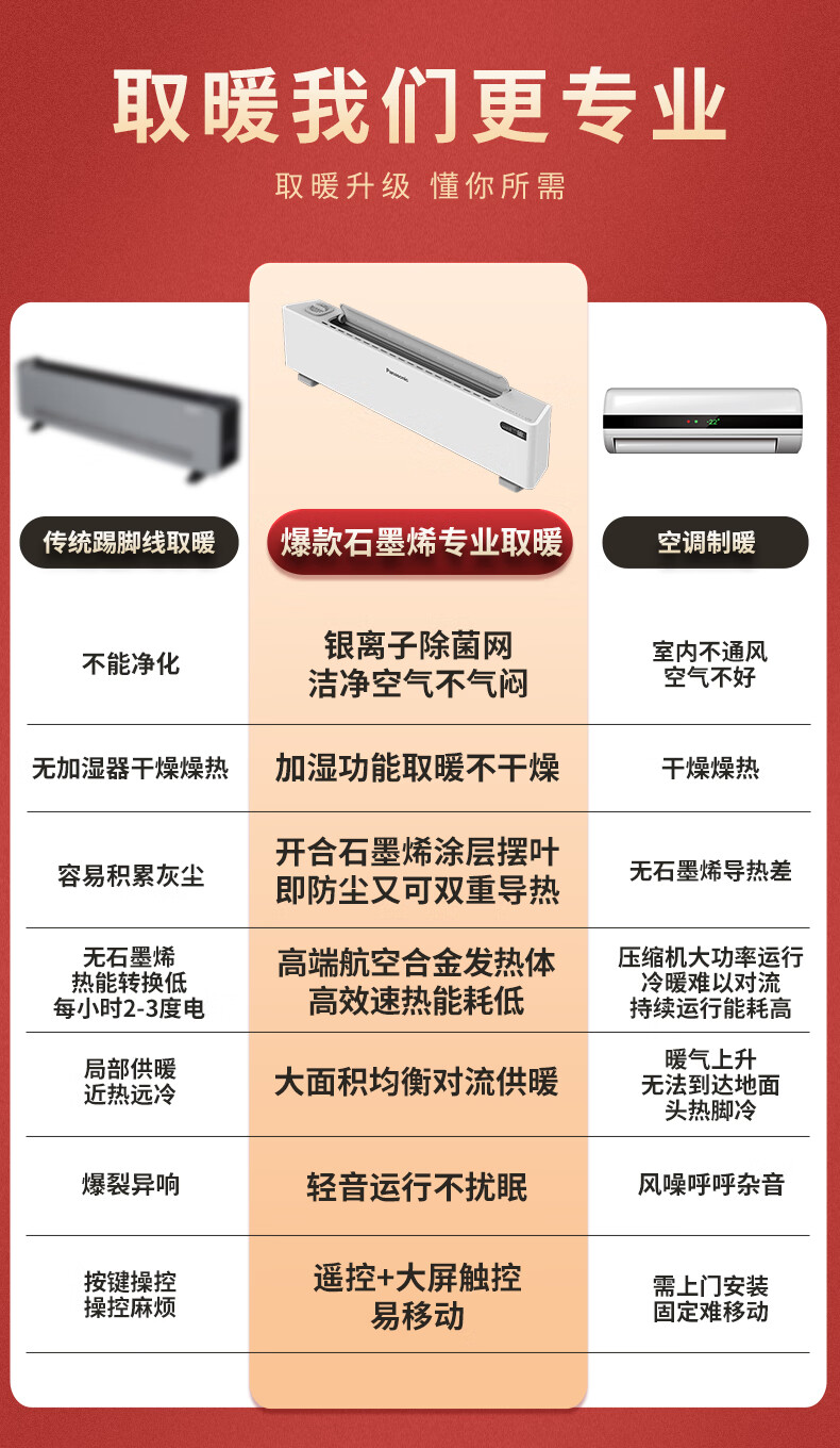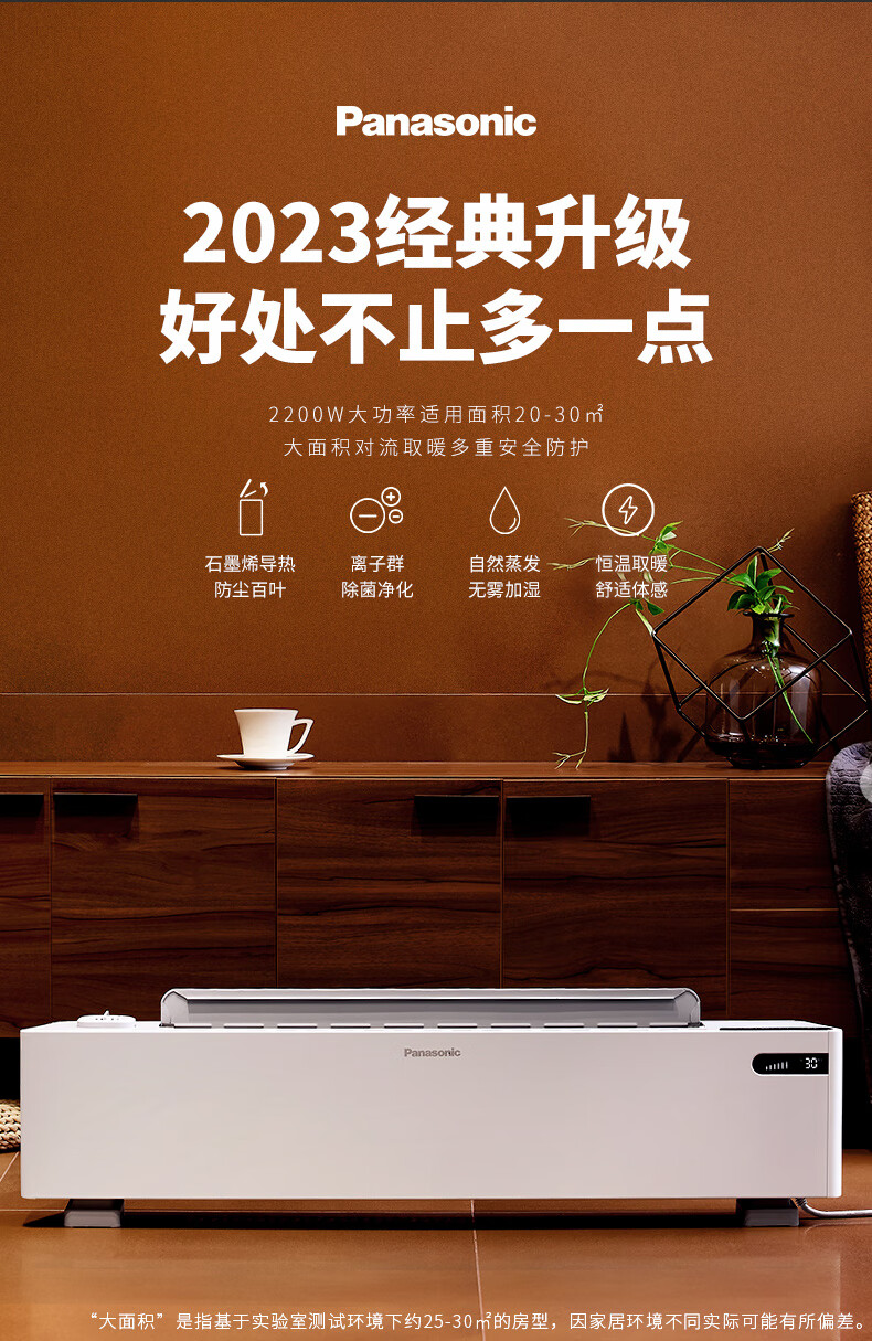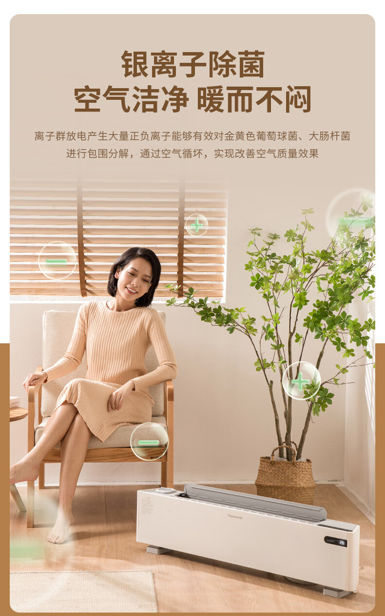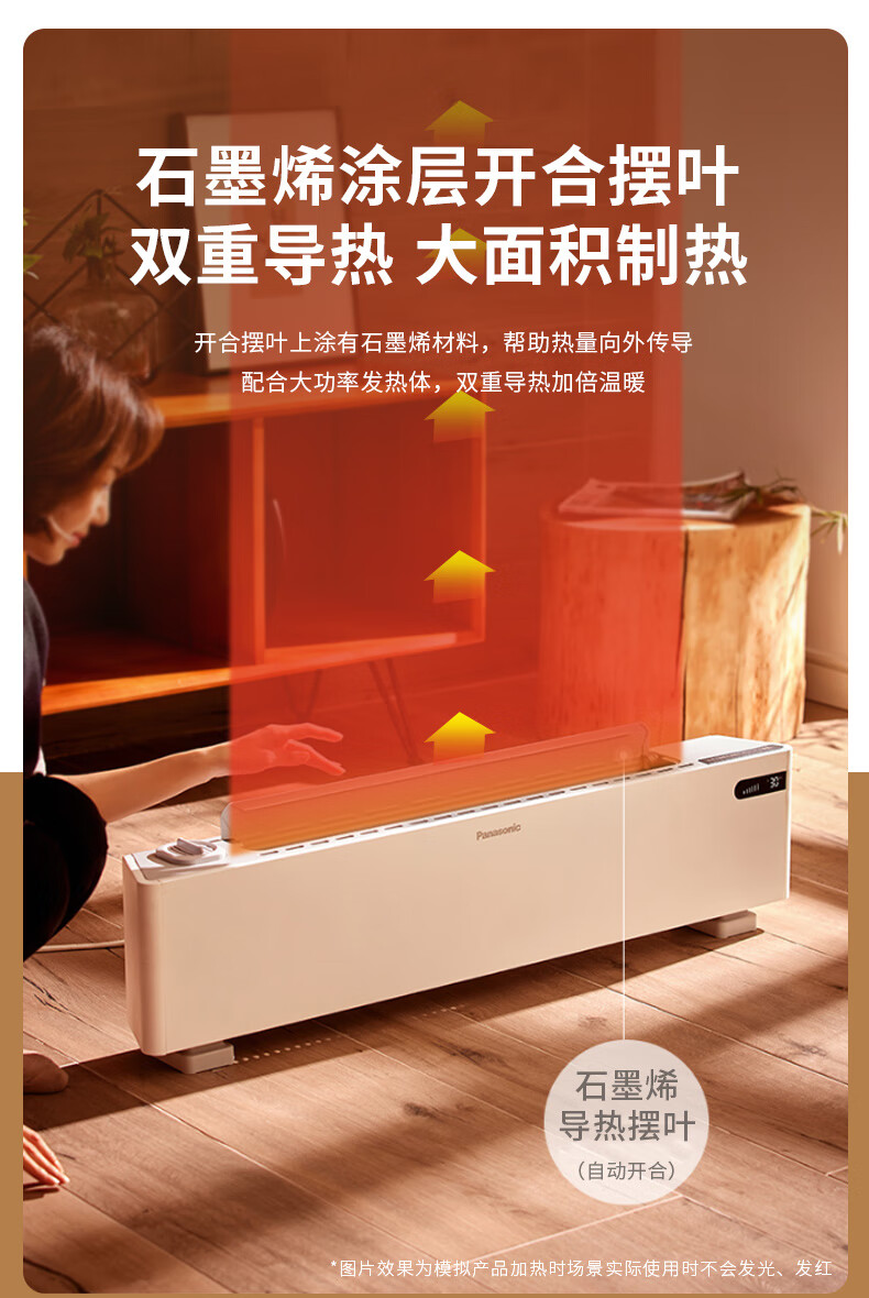 松下(Panasonic)踢脚线取暖器家用轻音石墨烯电暖器移动地暖居浴两用对流大面积电暖气节能速热卧室办公室暖气片 DS-AK2225CW
