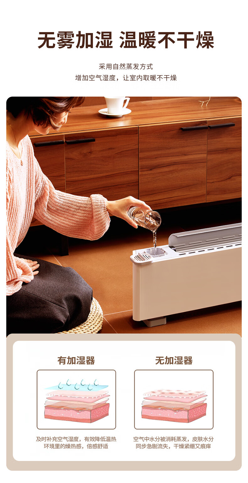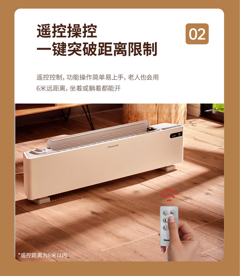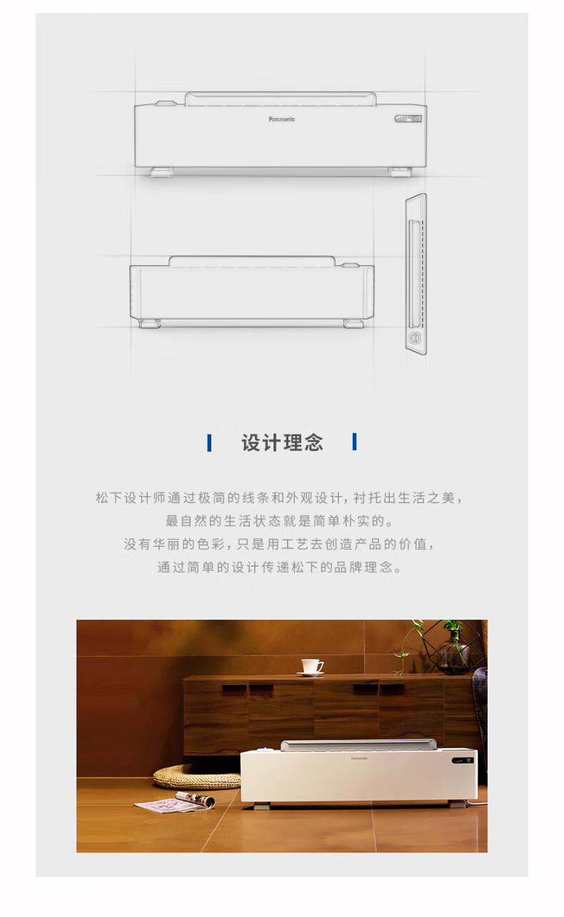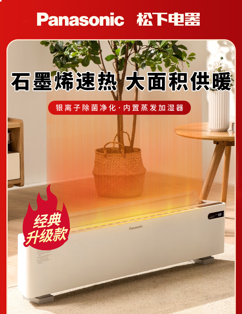 松下(Panasonic)踢脚线取暖器家用轻音石墨烯电暖器移动地暖居浴两用对流大面积电暖气节能速热卧室办公室暖气片 DS-AK2225CW