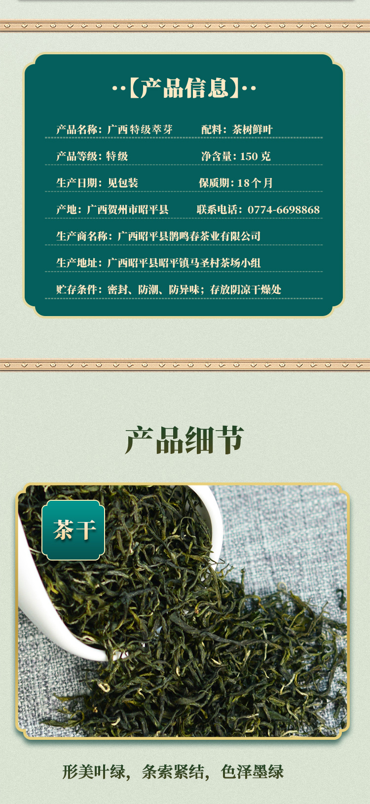 鹊鸣春特级翠芽 · 桂江翡翠针,口感鲜爽,清甜回甘,农残不得检出
