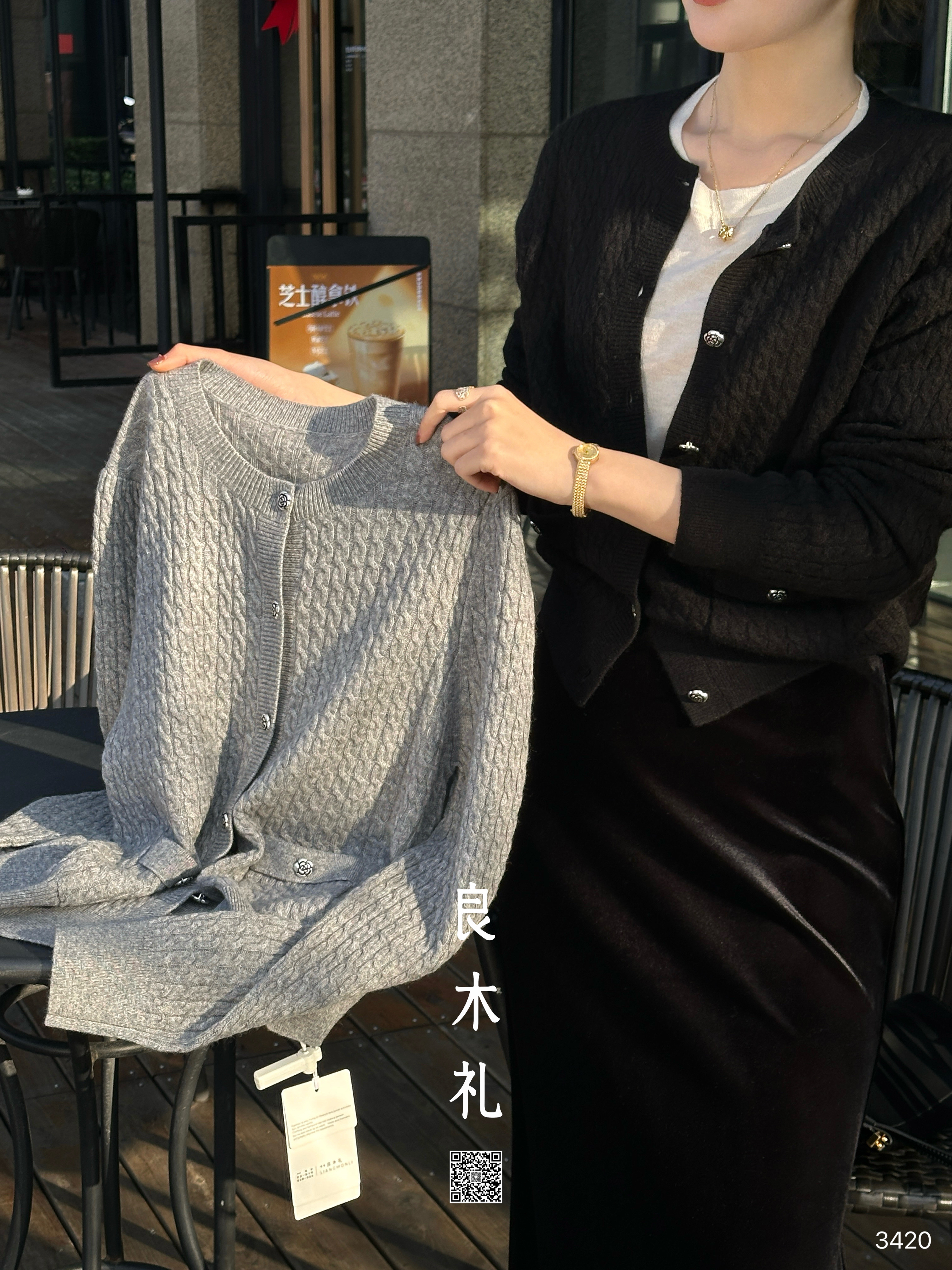 【特价不退换】【预售7天】良木礼镂空羊毛开衫(3304F)