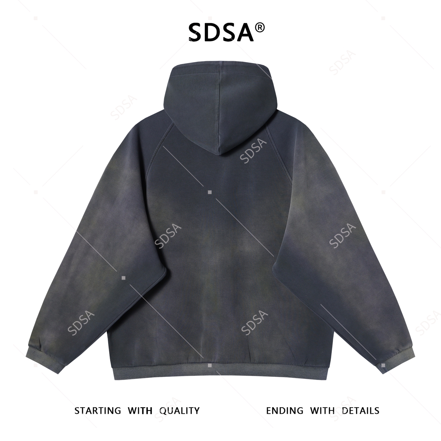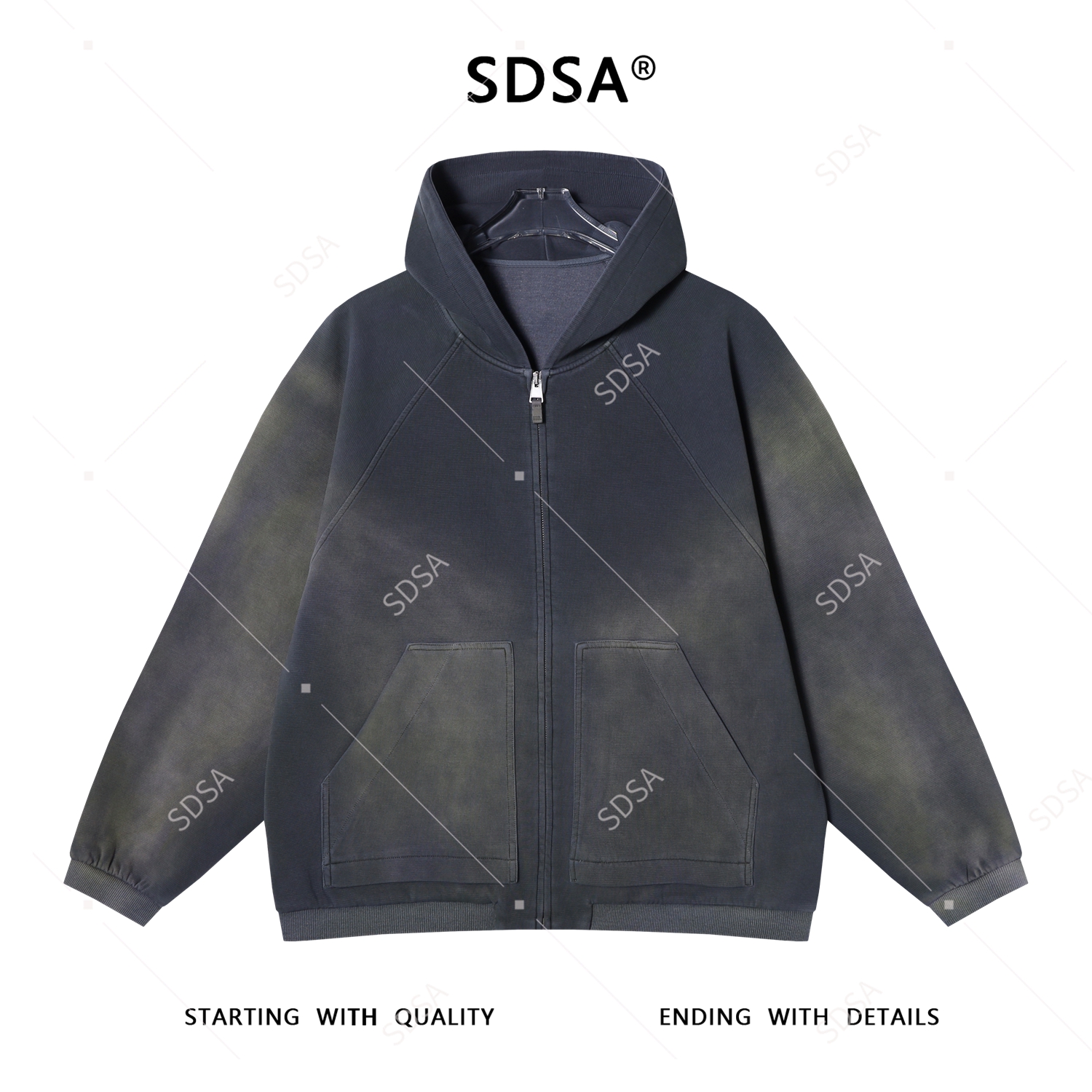 SDSA男士秋冬新款痞帅男装潮牌扎染晕染拉链连帽卫衣外套时尚高街