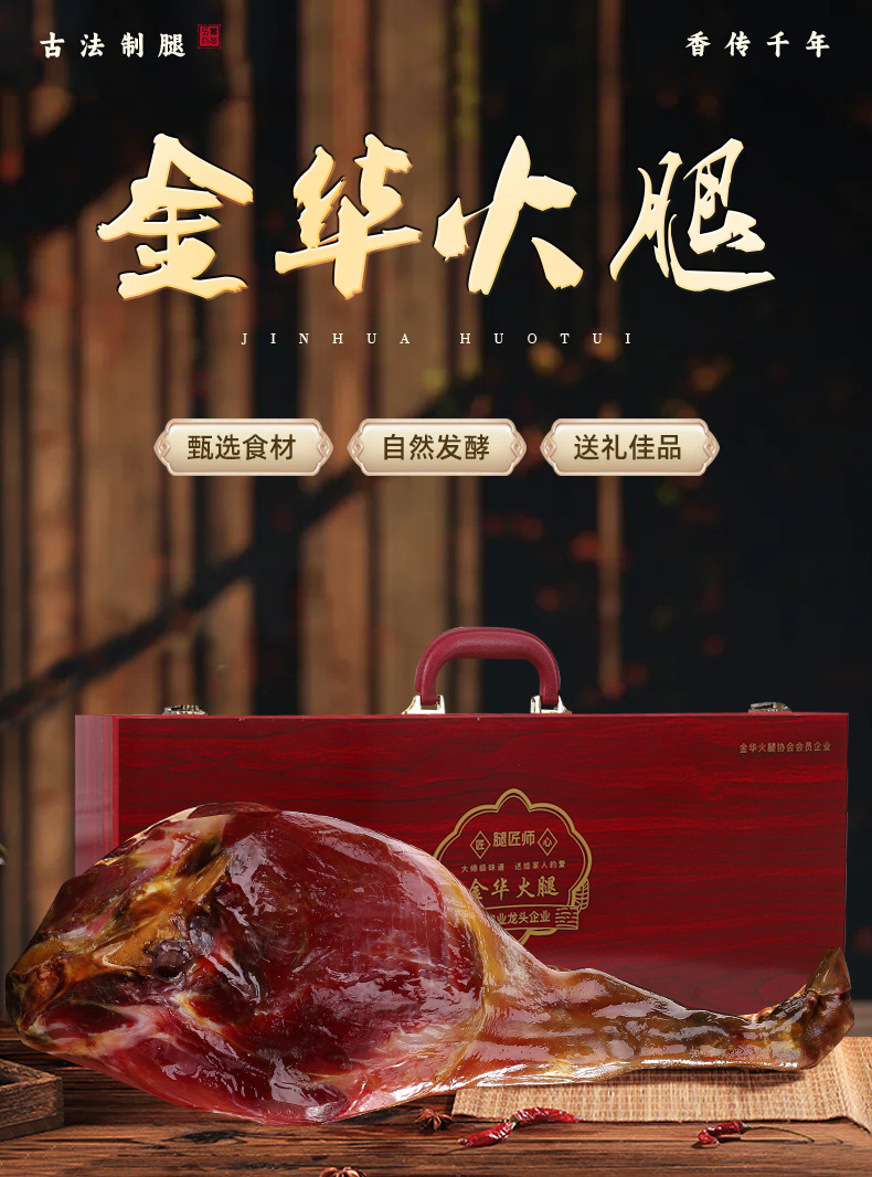金华特产腿匠师新款高档手提木盒包装火腿整腿 农家腌制年货礼品*2.5kg