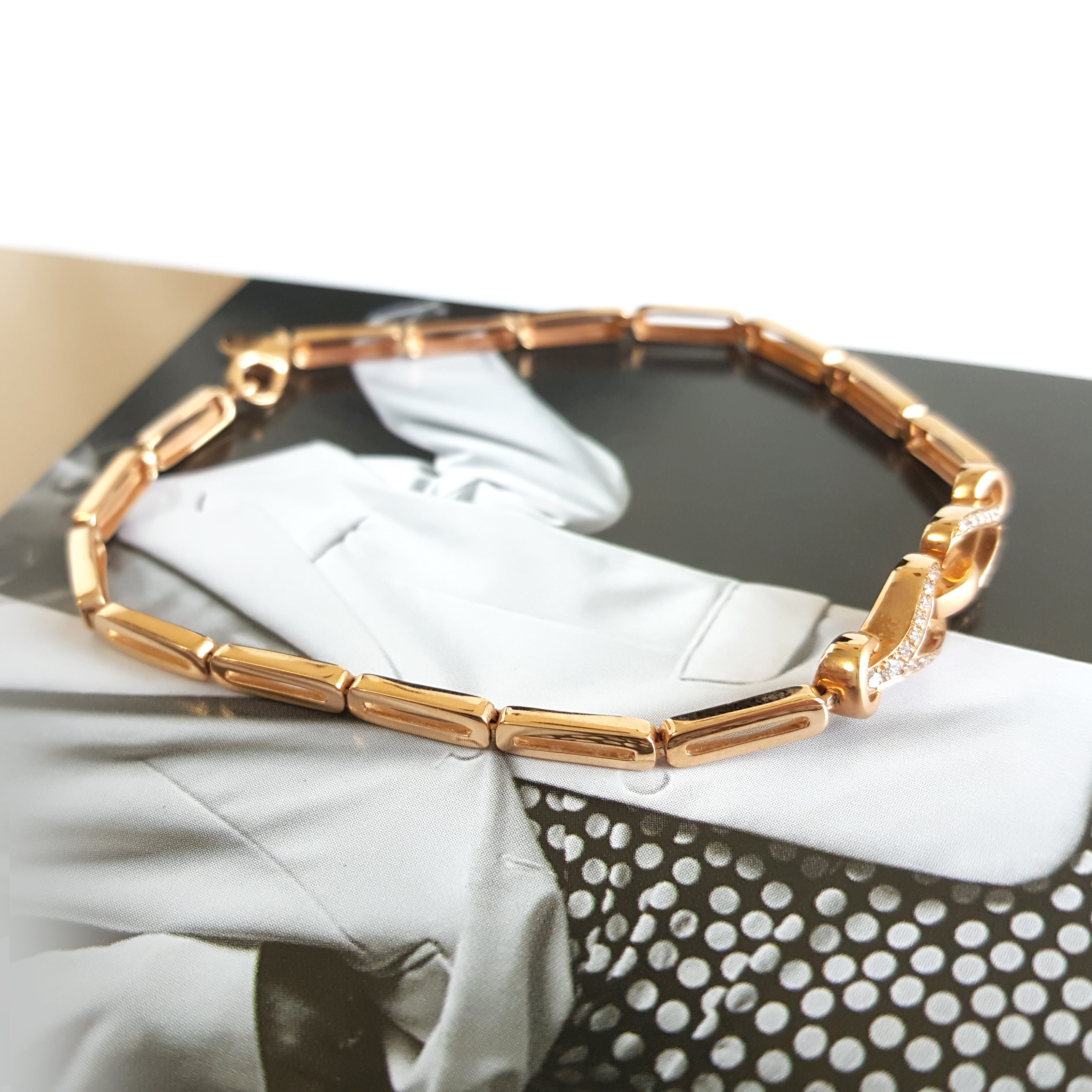 【天然正品】莱绅通灵AU750玫瑰金简约时尚0.09克拉钻石手链链长:18CM(长度不可调节)女士现售价:5280!070425NJS13