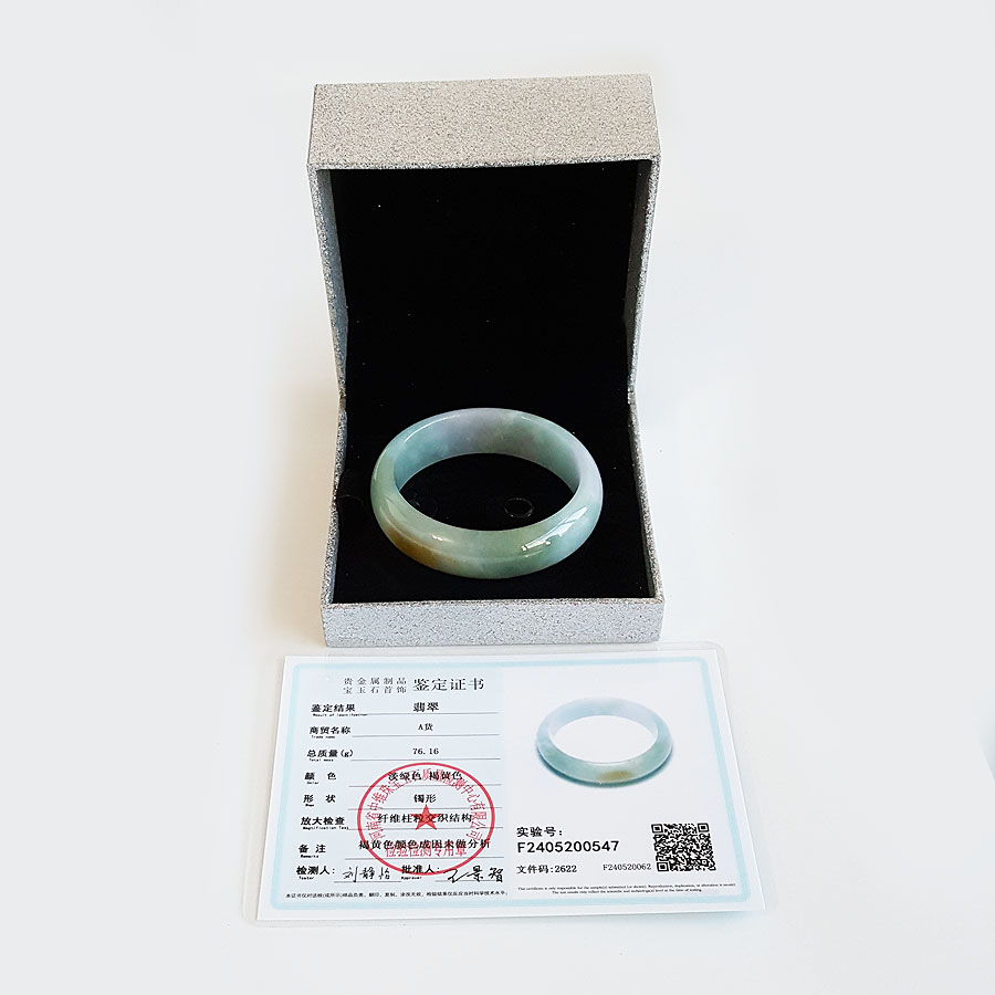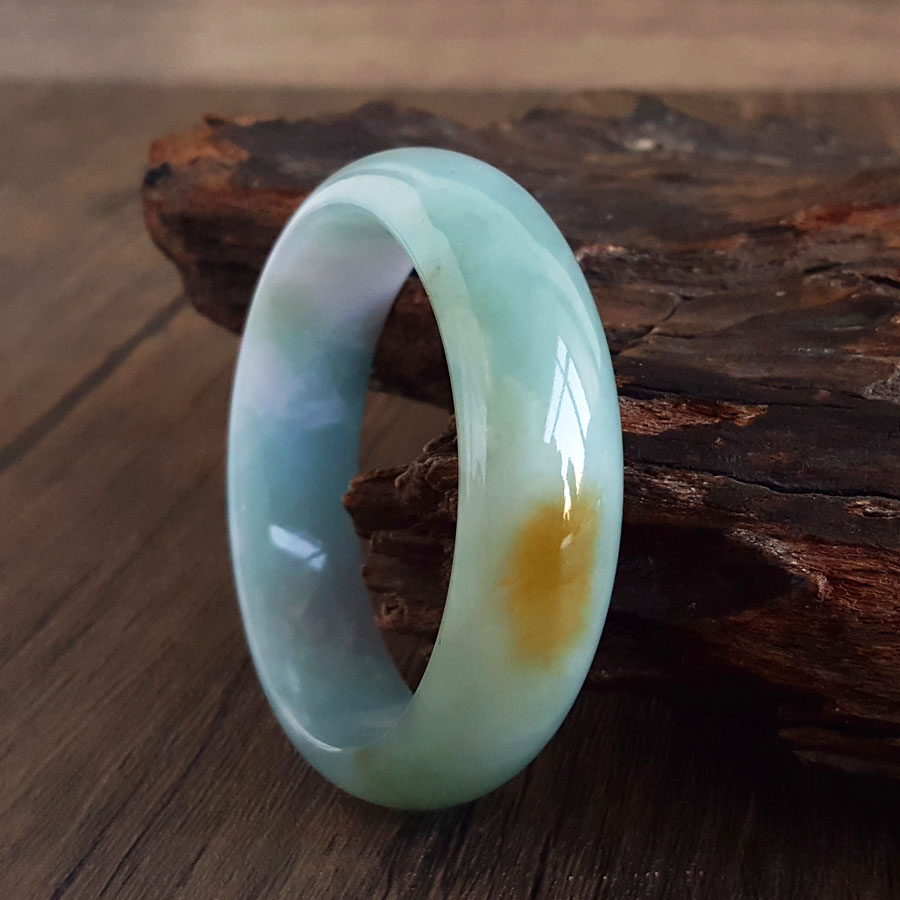 名称 | 天然细腻厚桩糯种福禄寿飘黄57号翡翠手镯 |