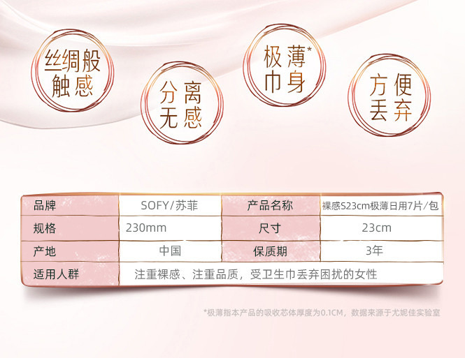 【小店自提】苏菲 裸感S系列日用卫生巾 230mm7片/包