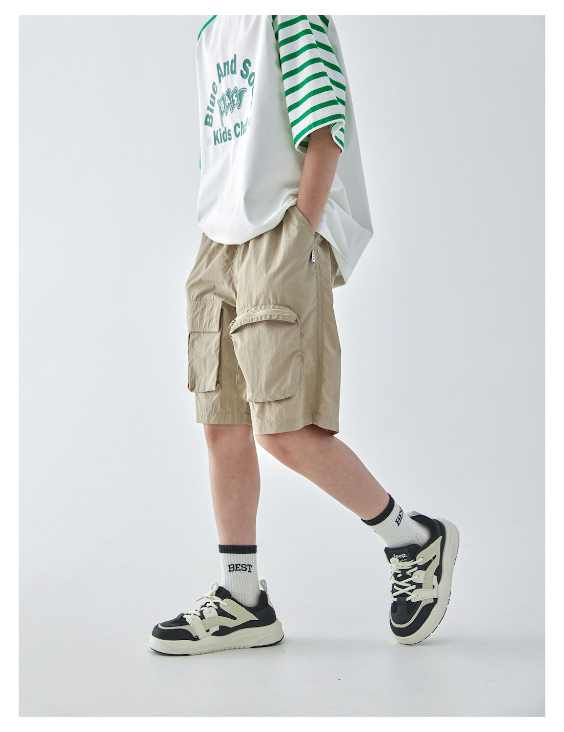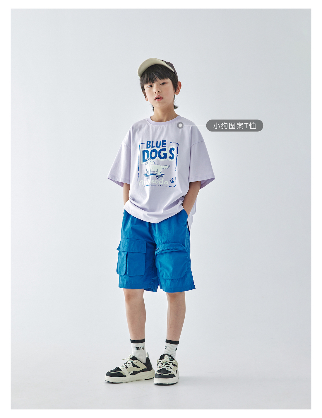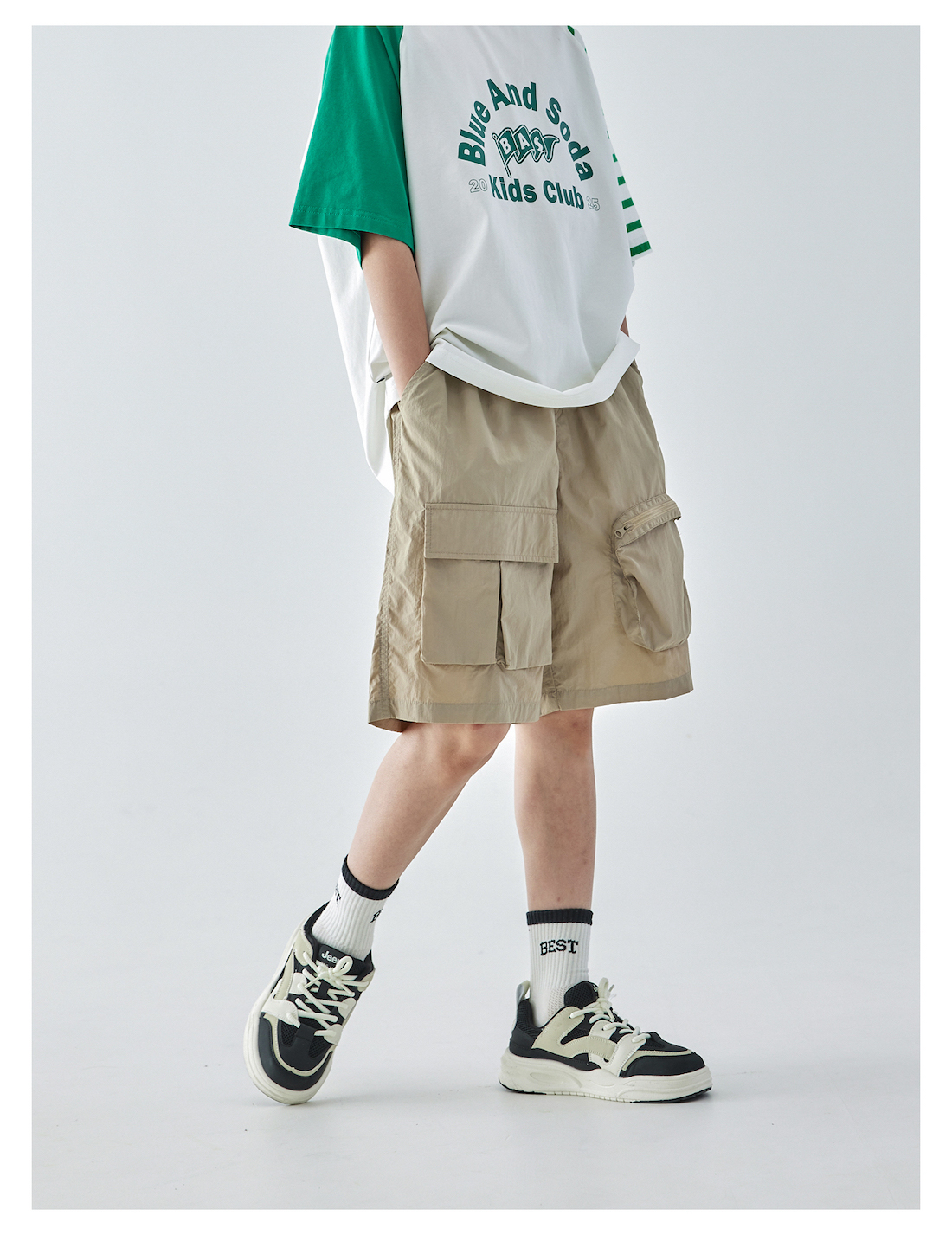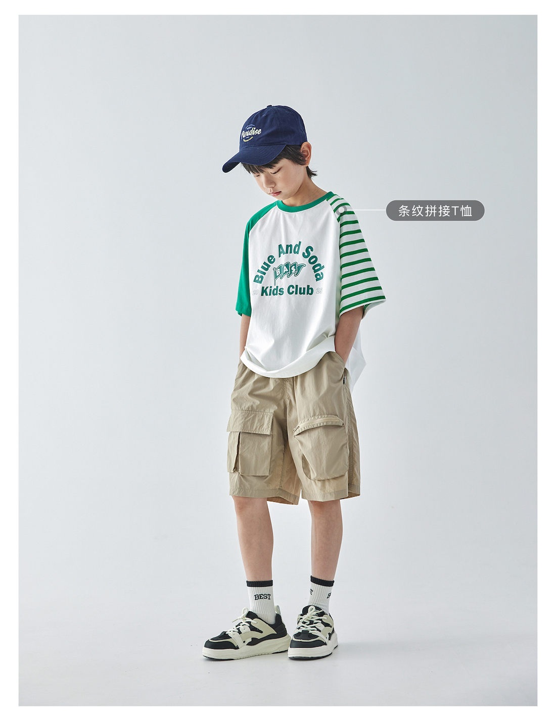 蓝汽水2025年新款夏季男童纯色工装短裤立体大口袋轻薄休闲五分裤