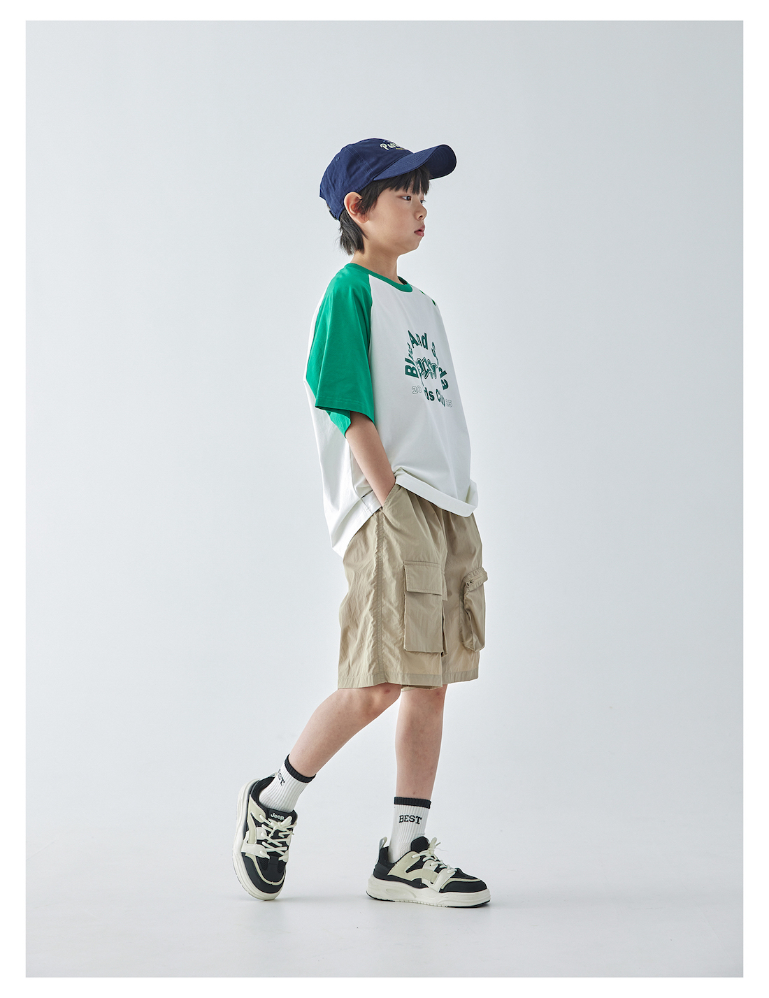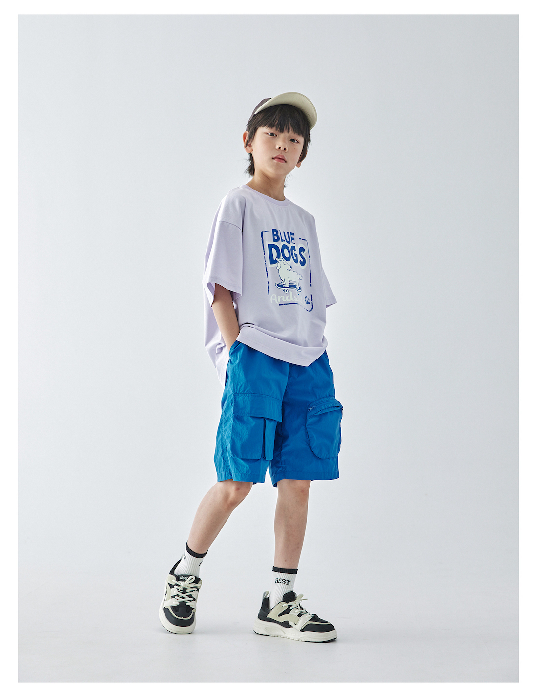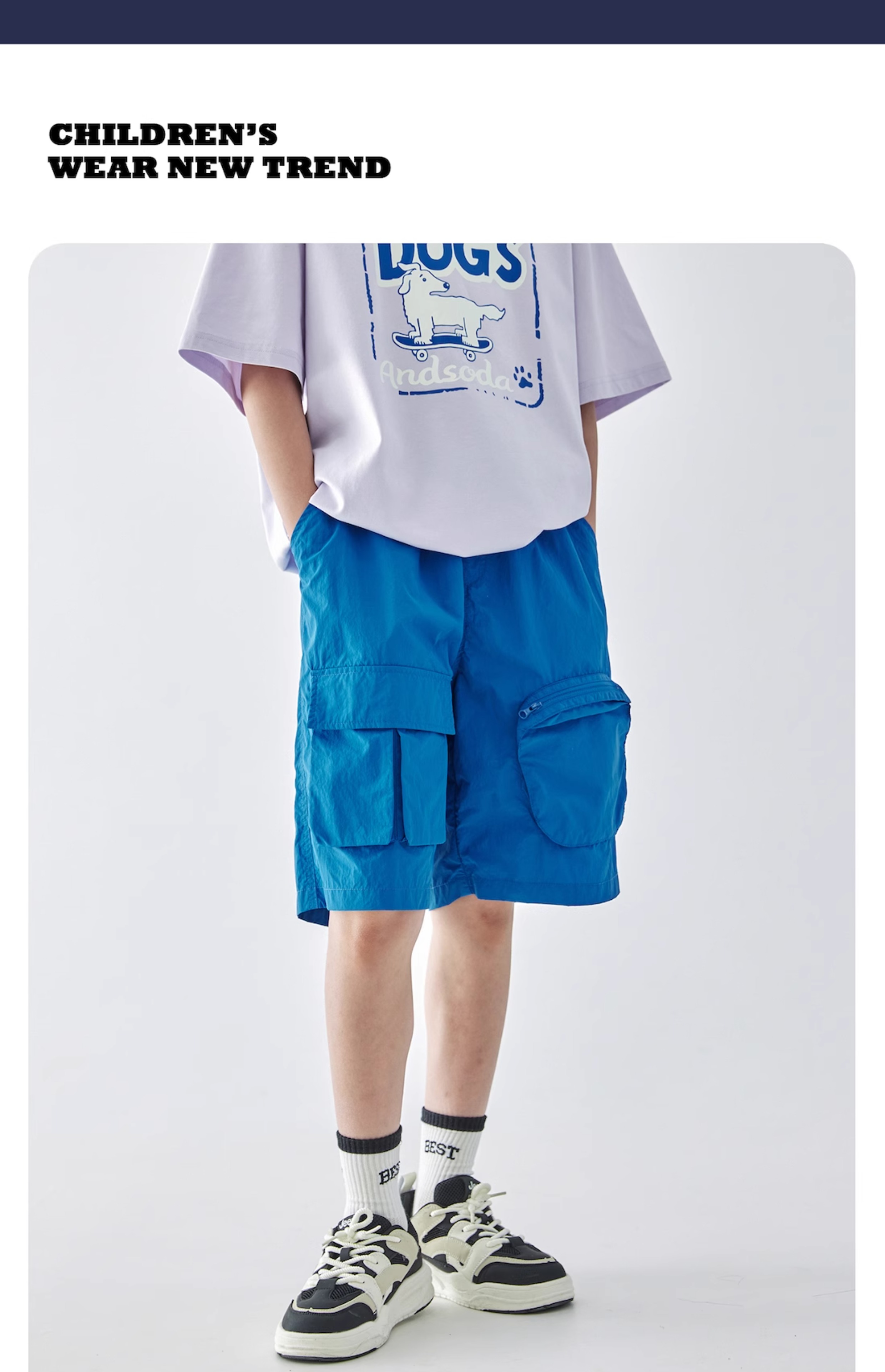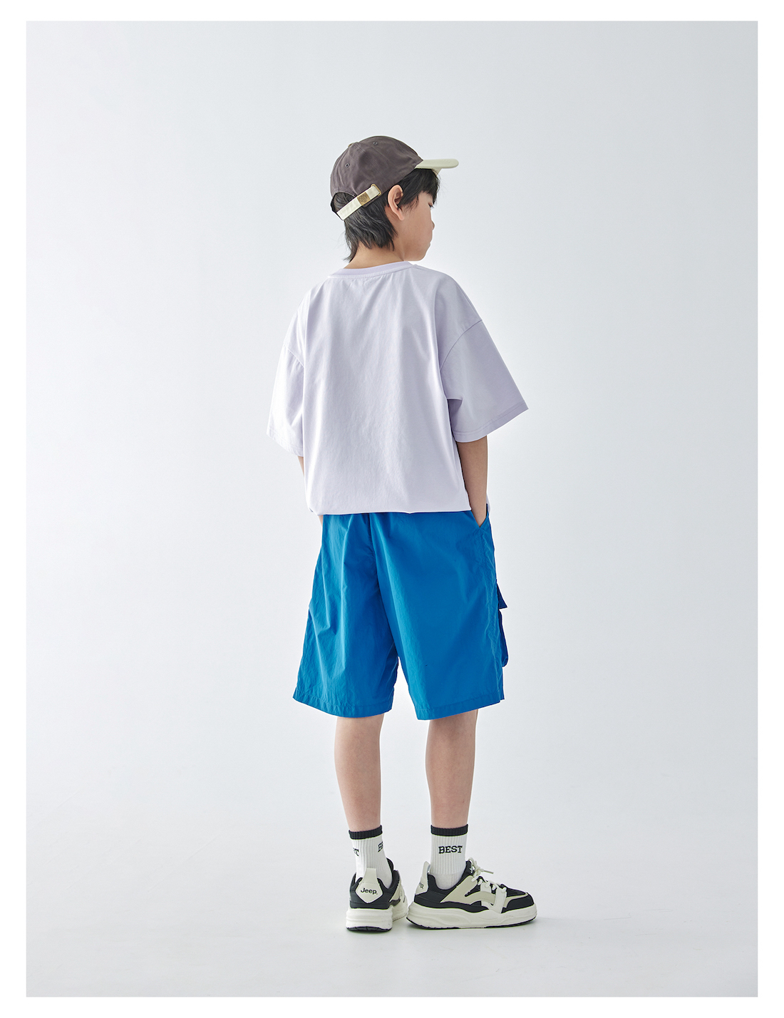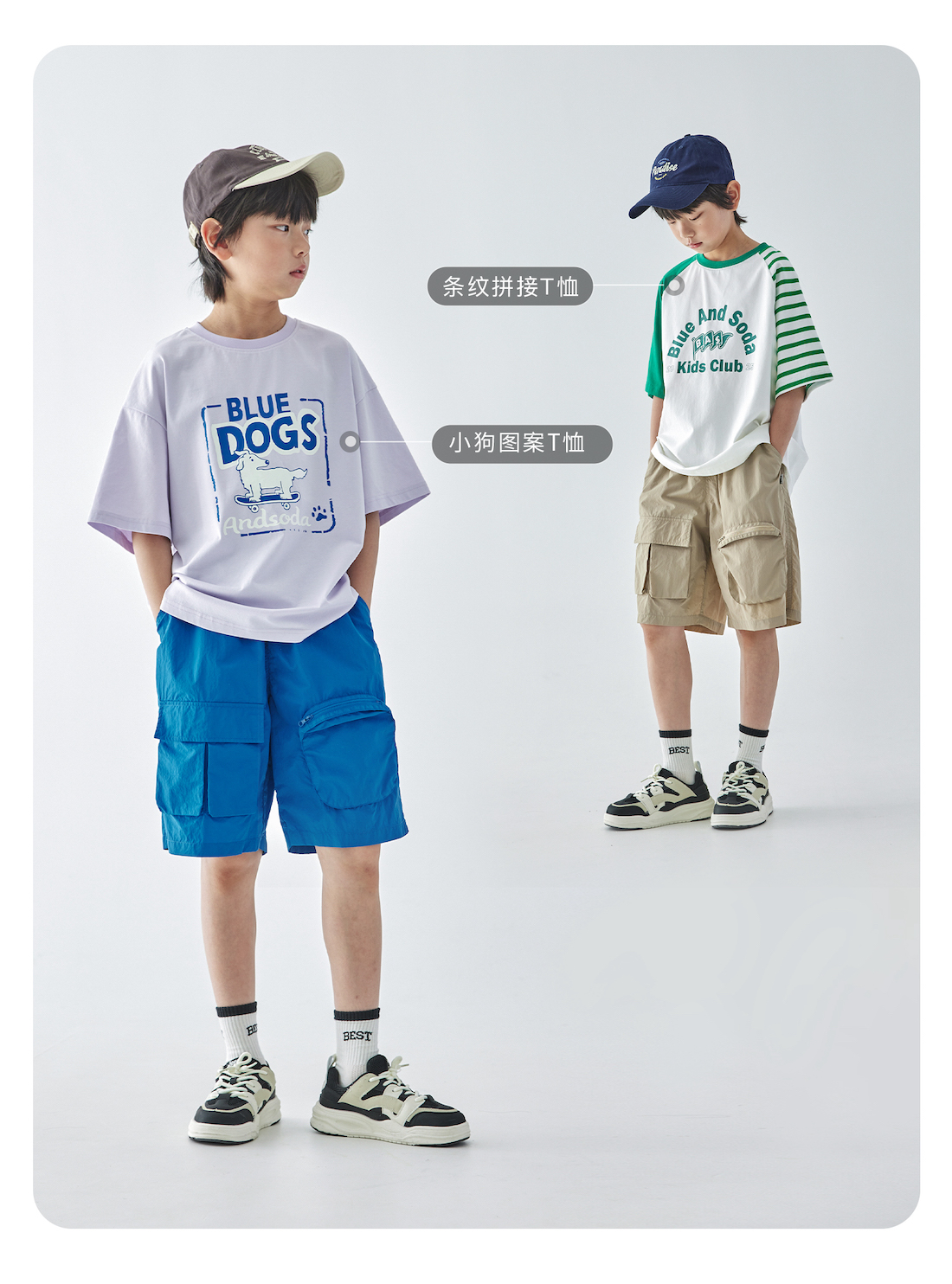 蓝汽水2025年新款夏季男童纯色工装短裤立体大口袋轻薄休闲五分裤