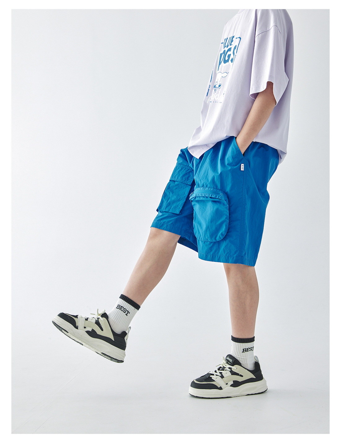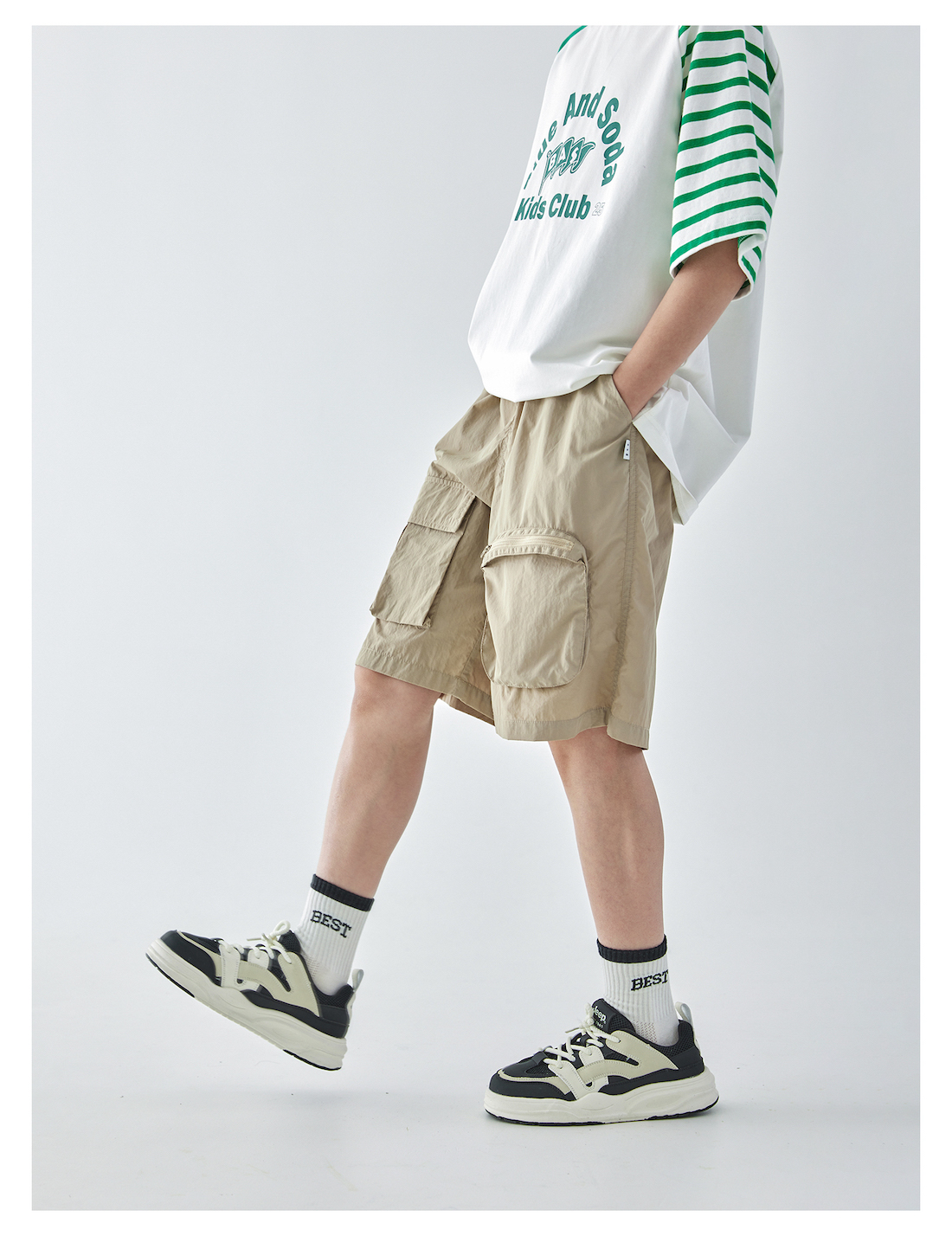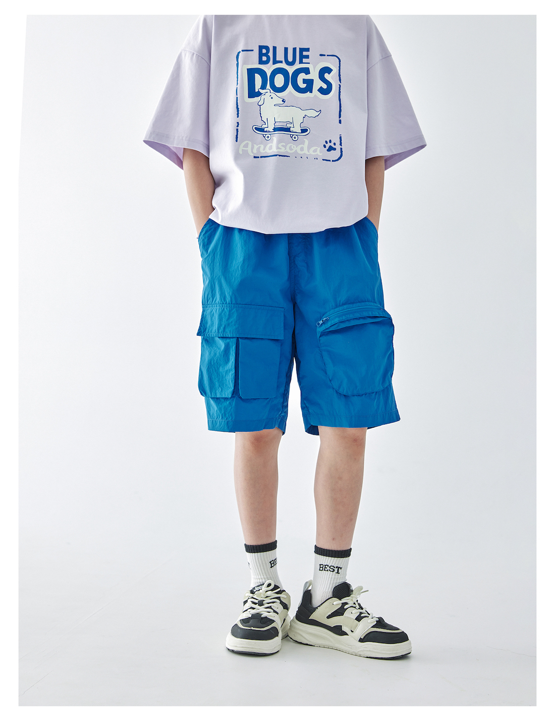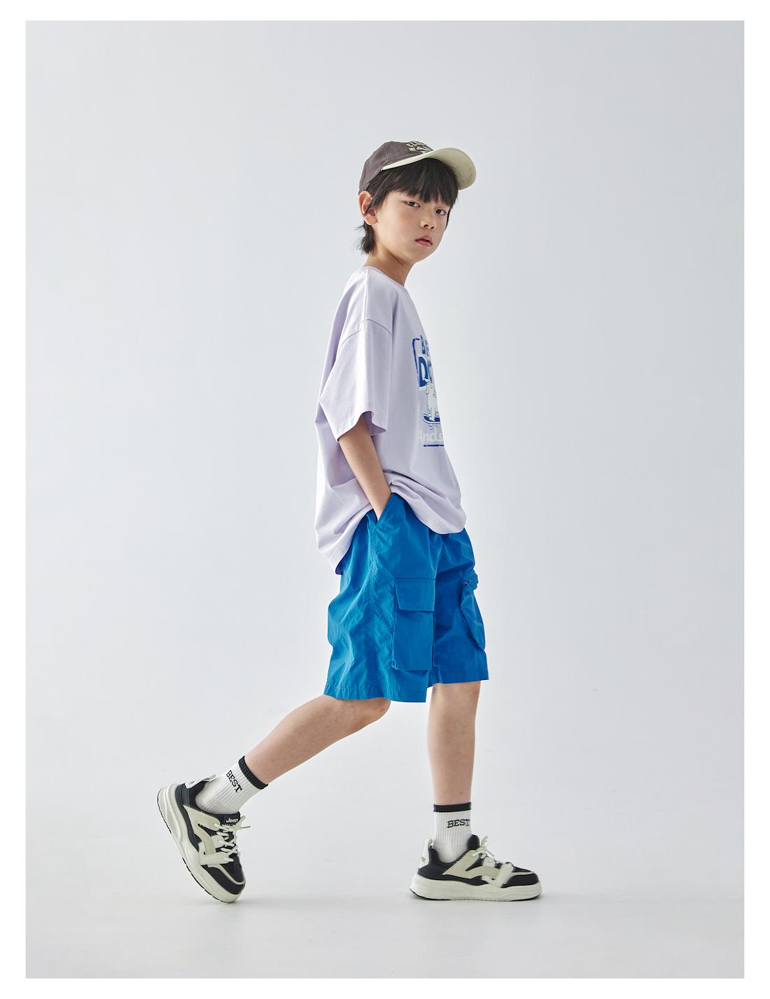 蓝汽水2025年新款夏季男童纯色工装短裤立体大口袋轻薄休闲五分裤