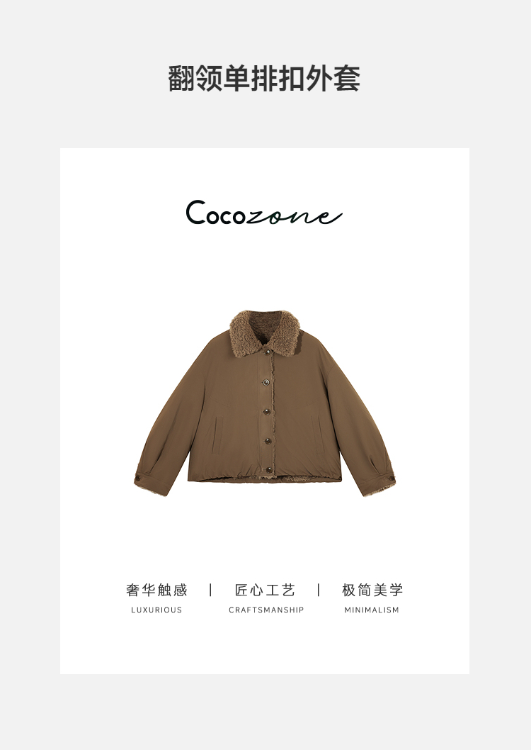 COCO ZONE 刘一一 老钱风简约毛领翻领单排扣外套 CD2A2646
