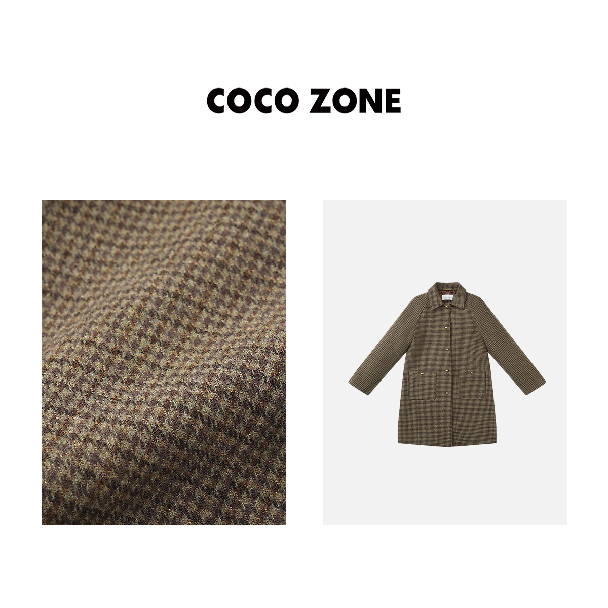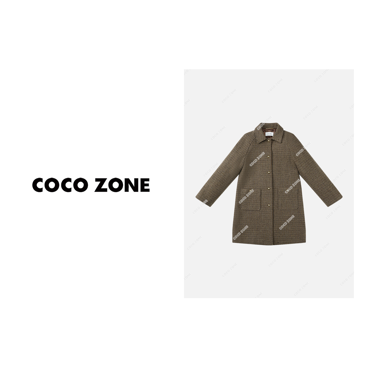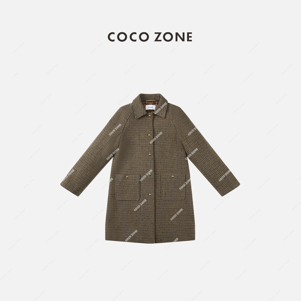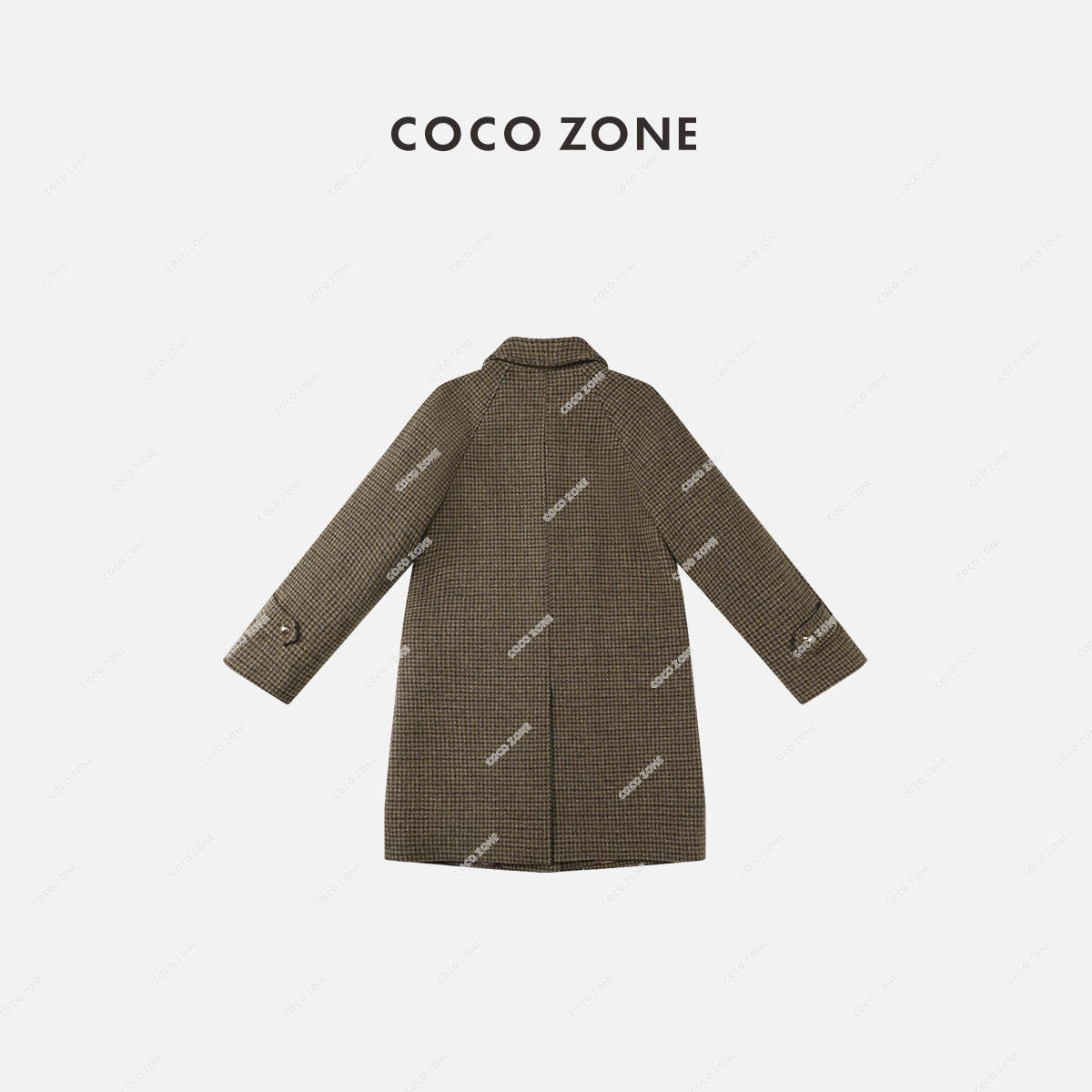 COCO ZONE法式赫本风中长款高级感翻领格子外套23C19702