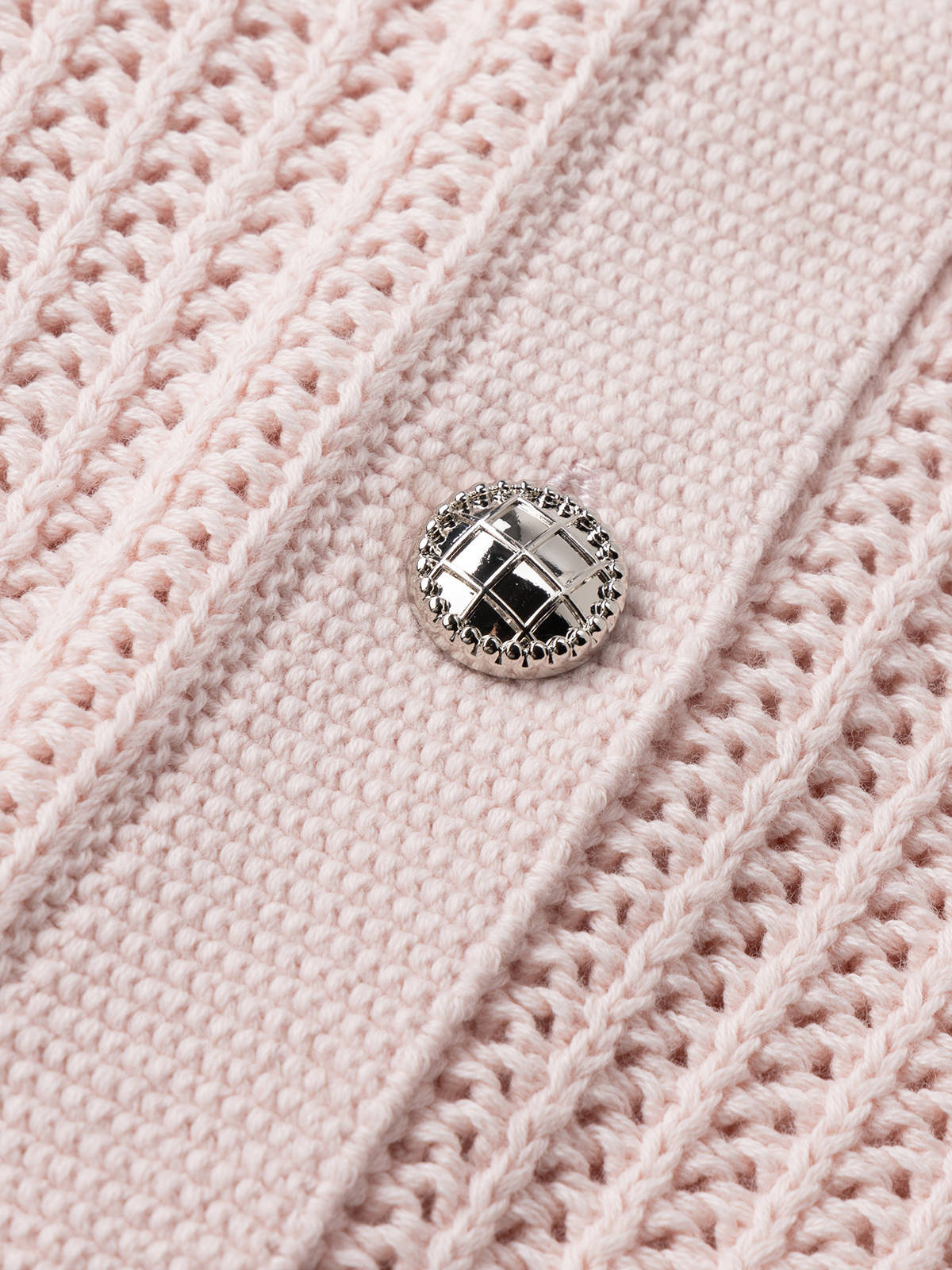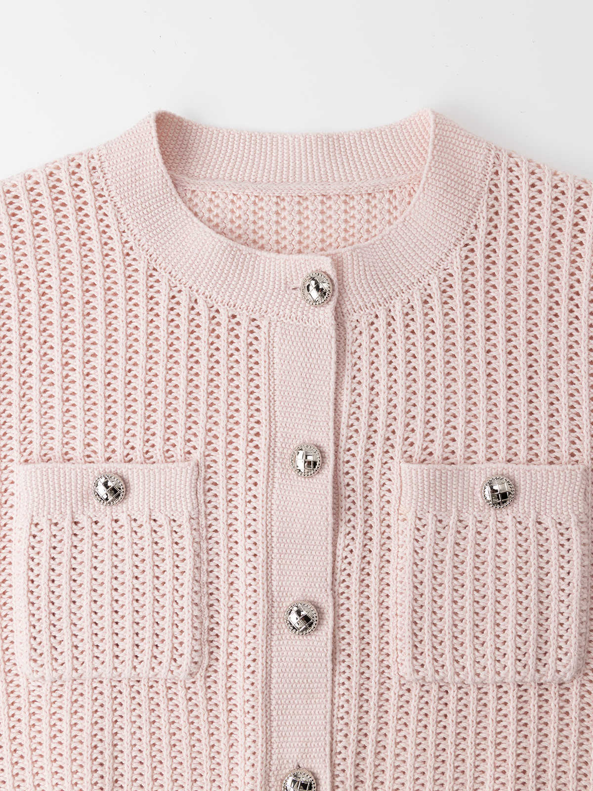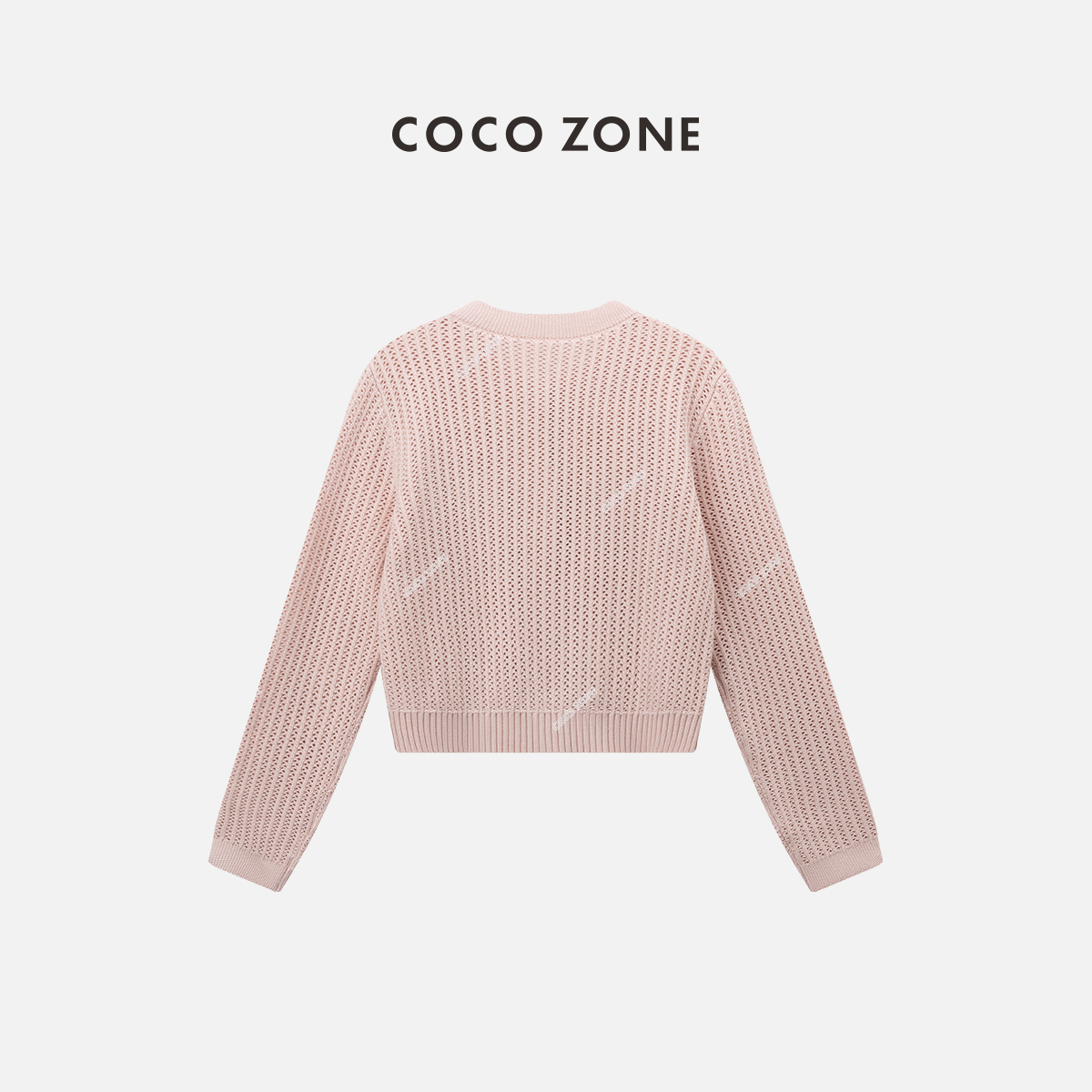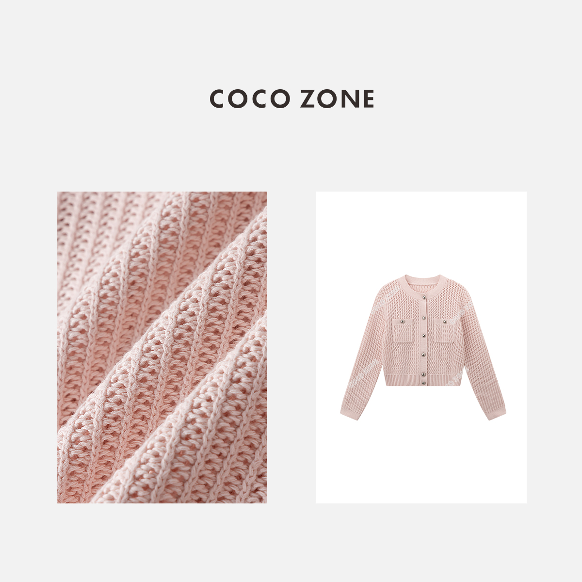 COCO ZONE100棉短款长袖针织开衫圆领单排扣气质毛衣 24C10339