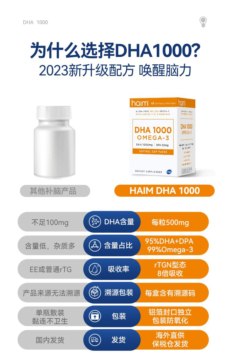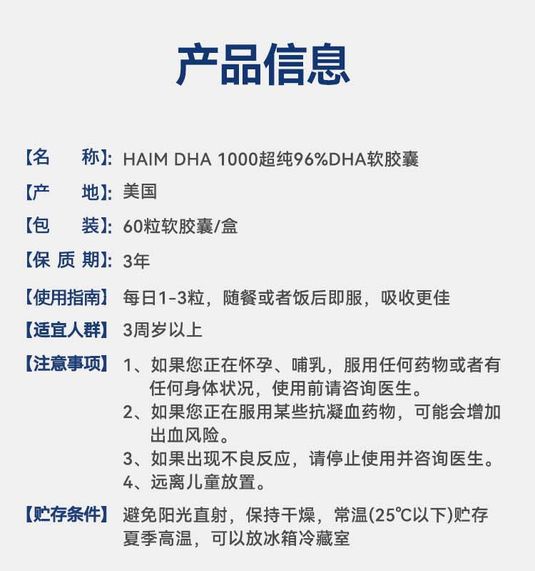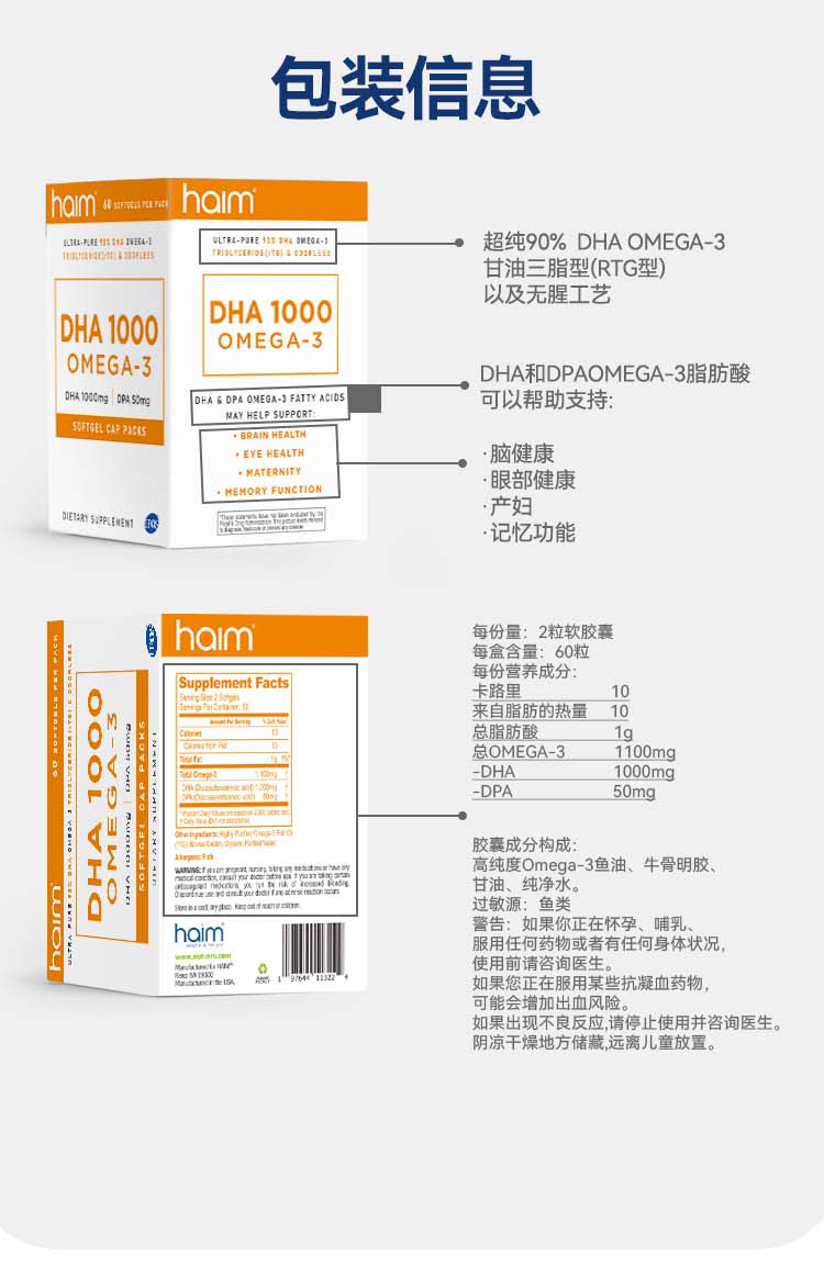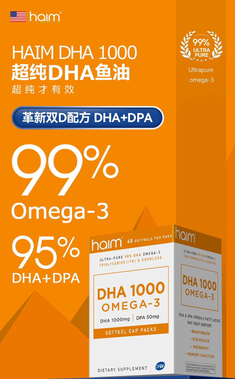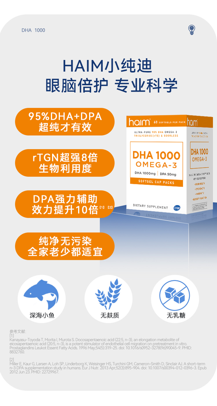 HAIM小纯迪95%DHA+DPA高纯单组份鱼油孕产妇青少年初高中生备考