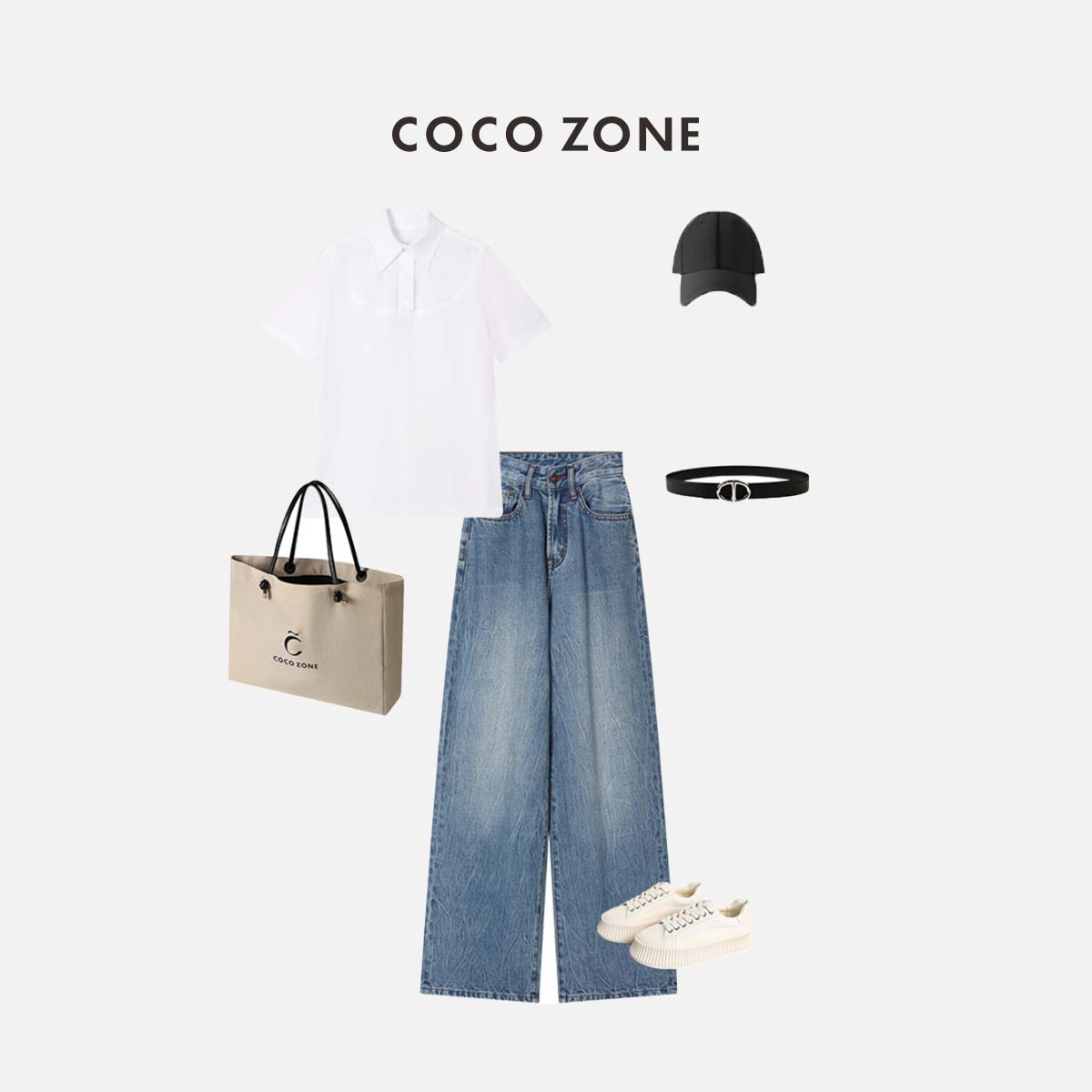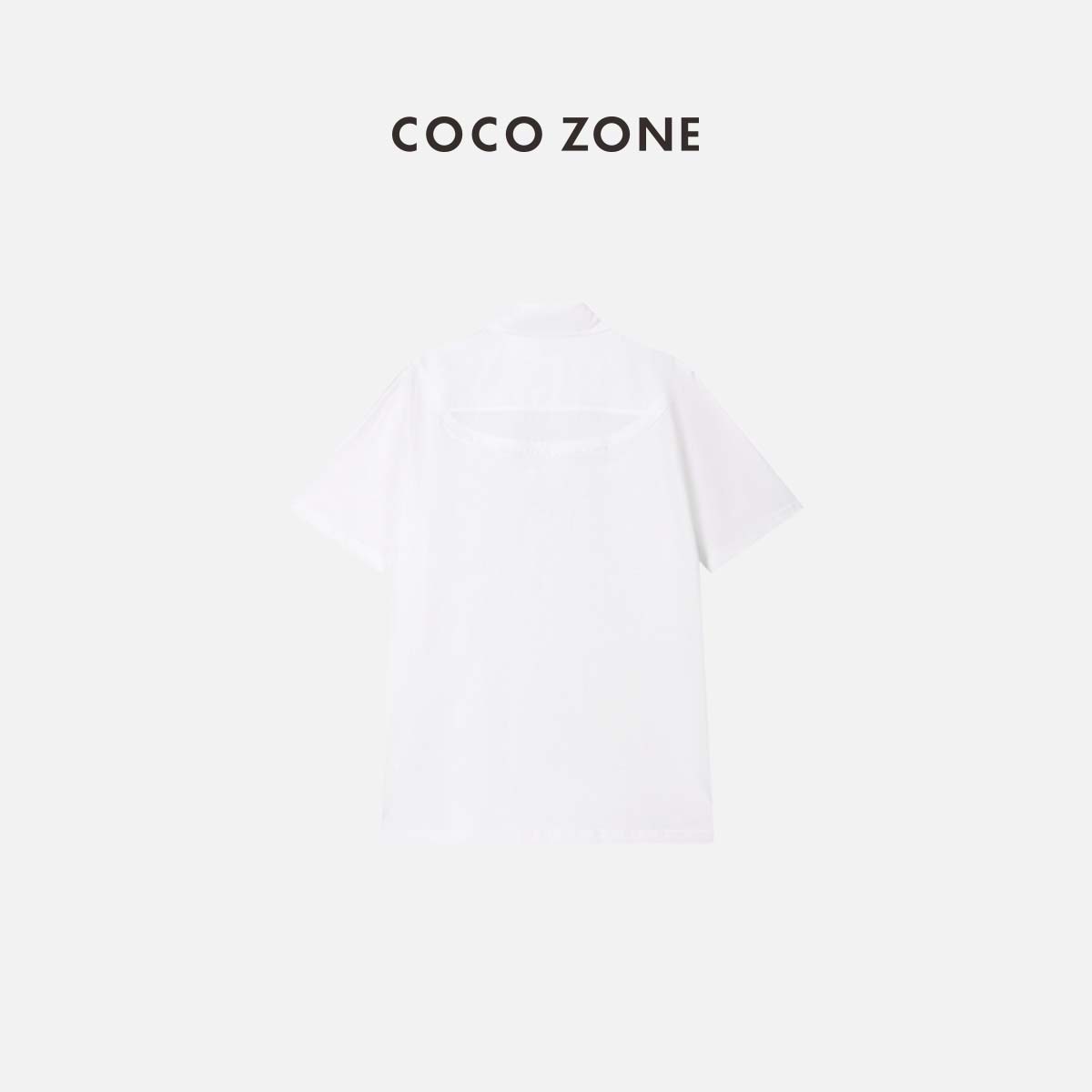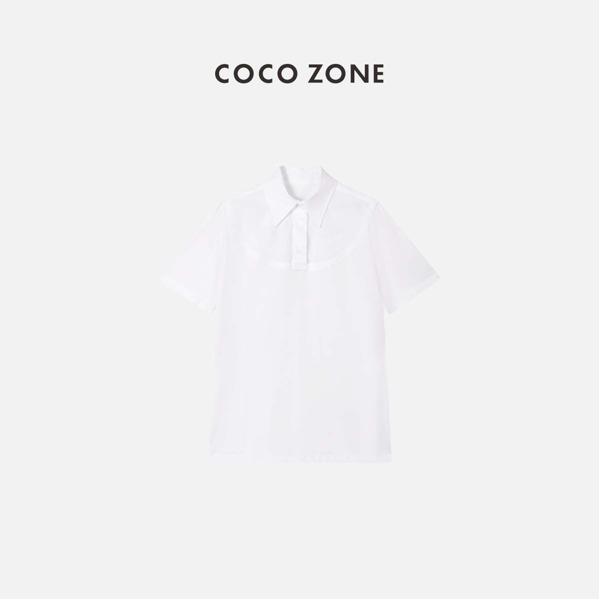 COCO ZONE 时尚翻领休闲百搭白色宽松显瘦系扣T恤衬衣女 23C18528
