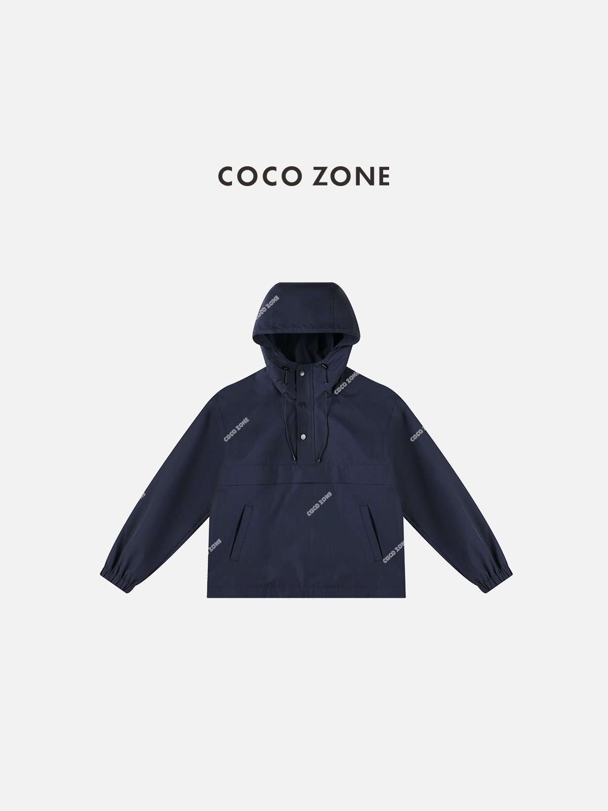 COCO ZONE 套头连帽冲锋衣宽松休闲单排扣拼接夹克上衣 23C19242