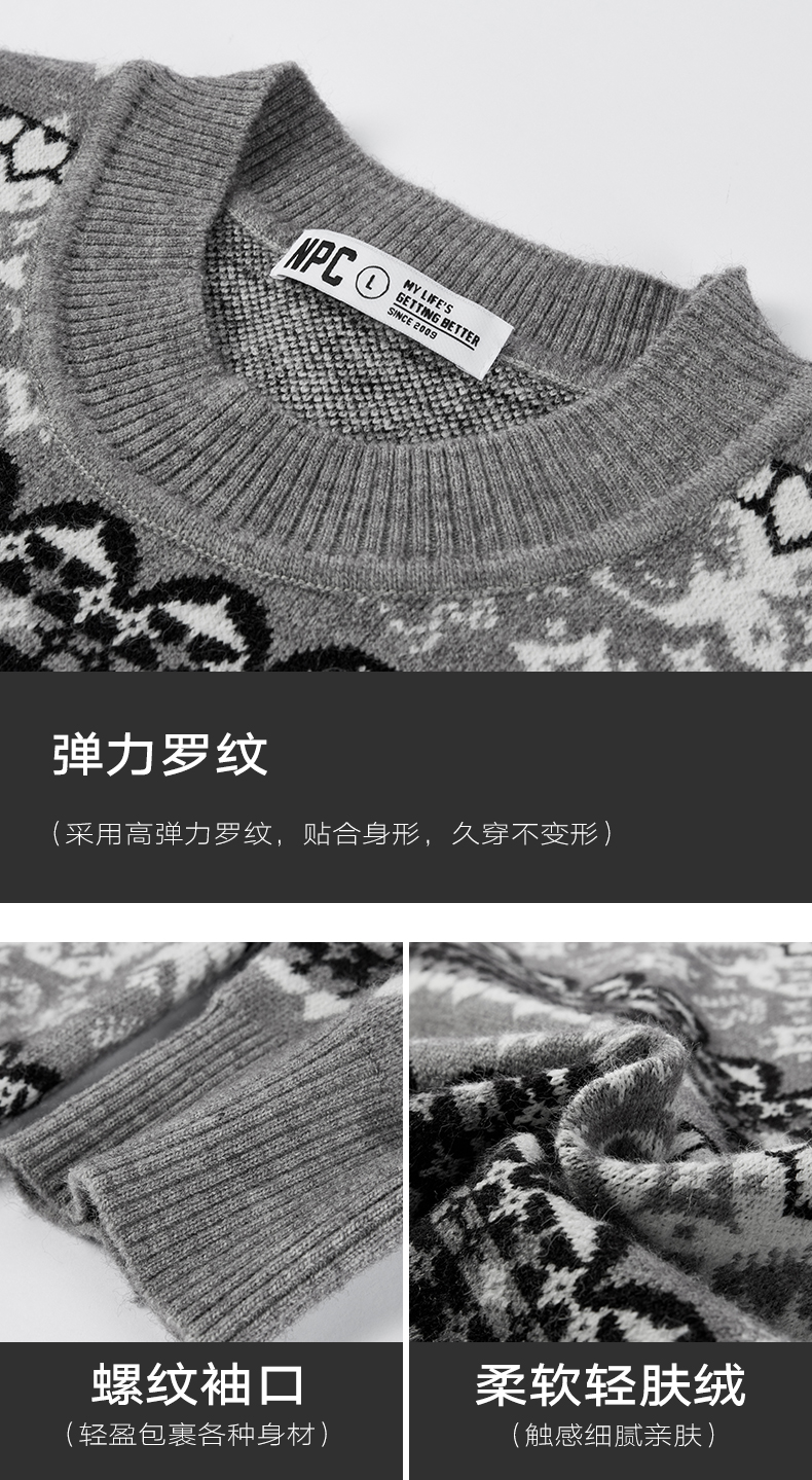 NPC潮牌【至臻羊毛胶囊】丝光澳毛绒嵌花圆领套头毛衣男NP5ASW04