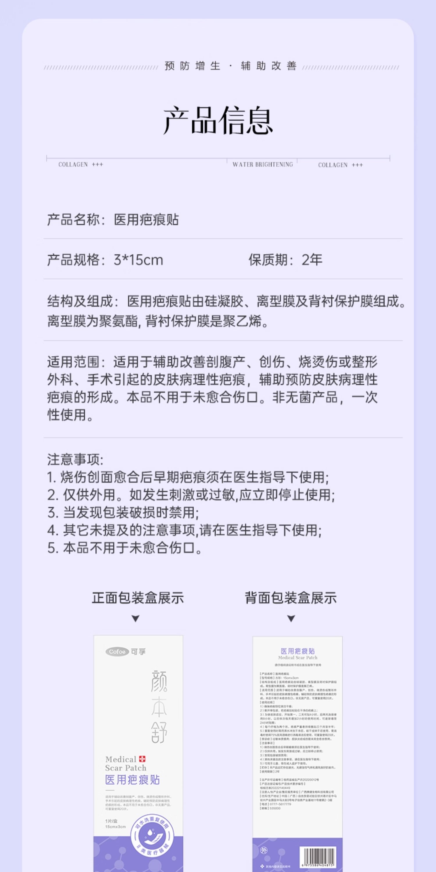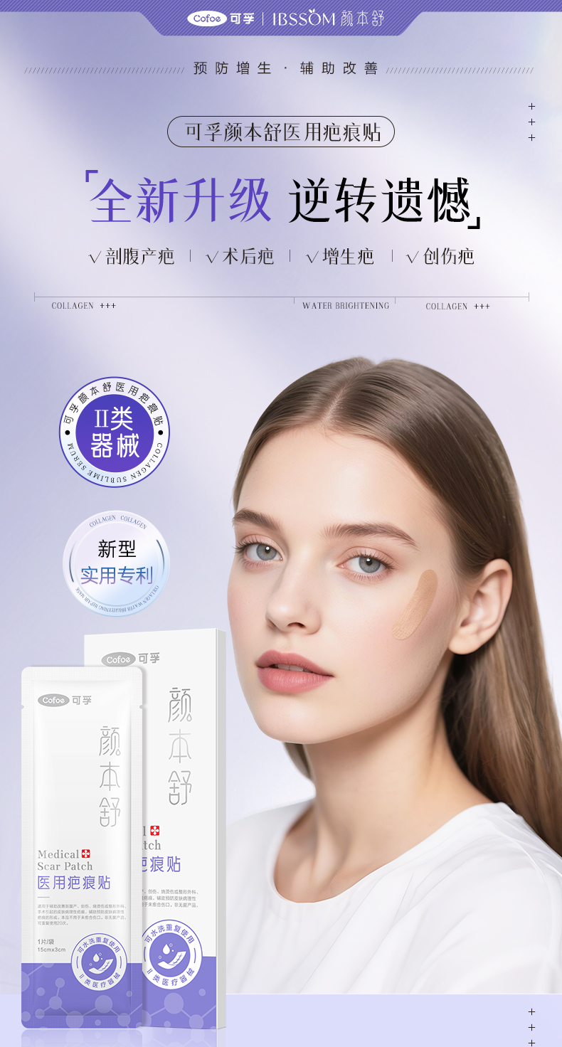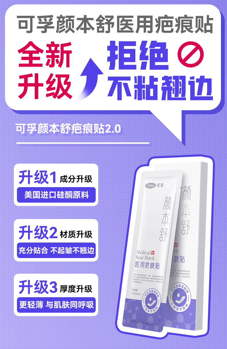 可孚颜本舒疤痕贴剖腹产祛疤医用硅凝胶去疤修复刨腹产增生隐形贴