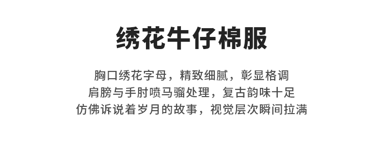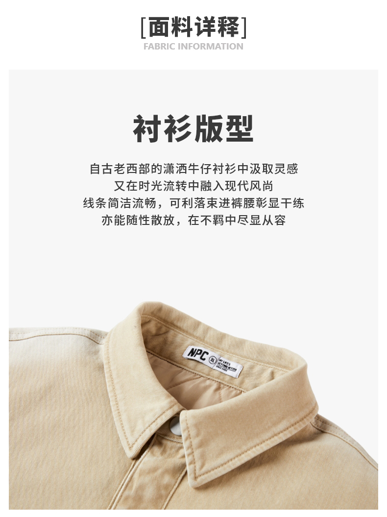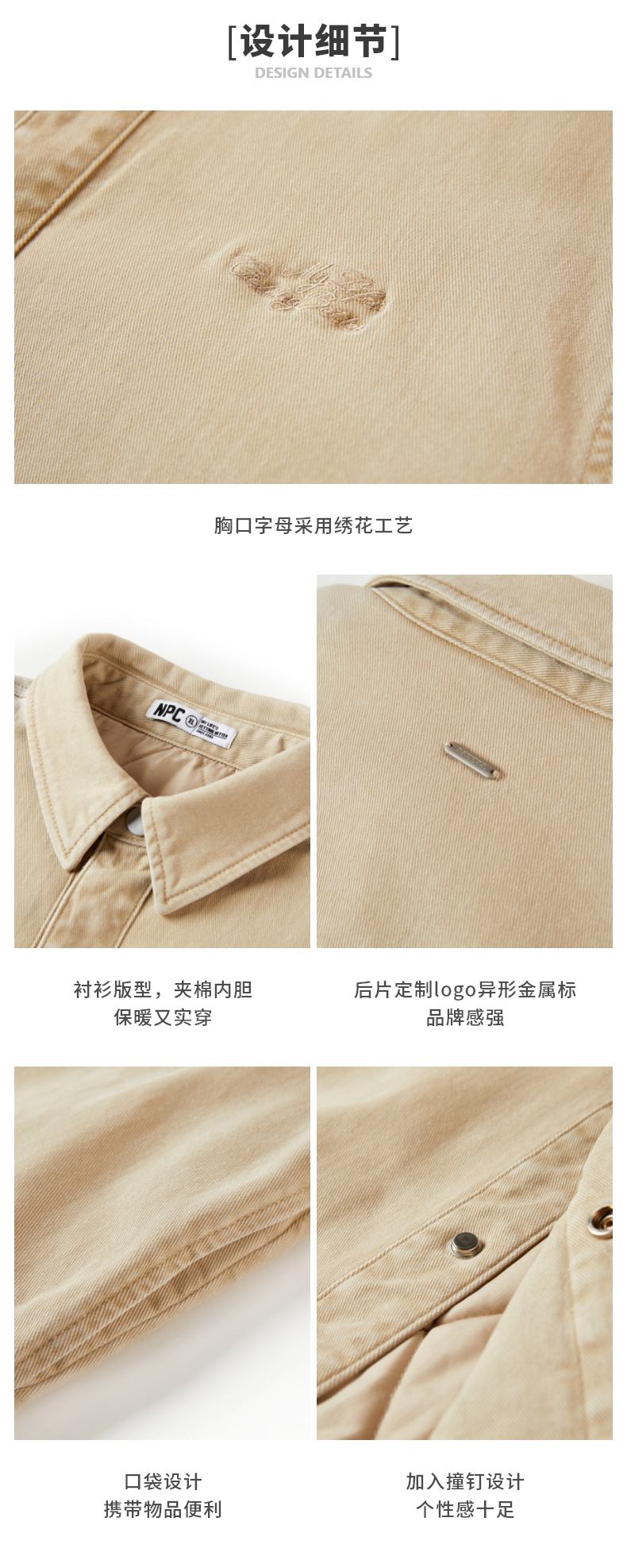 NPC潮牌复古字母绣花牛仔衬衫棉服男宽松休闲保暖舒适NP4CPJ02