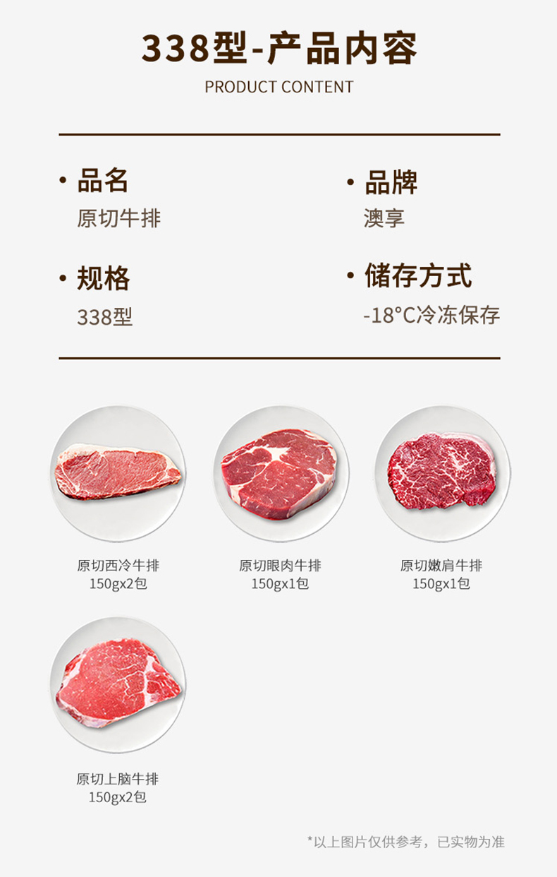 澳享 环球甄选原切牛排338型【冷冻生鲜类商品不退,质量问题只换)