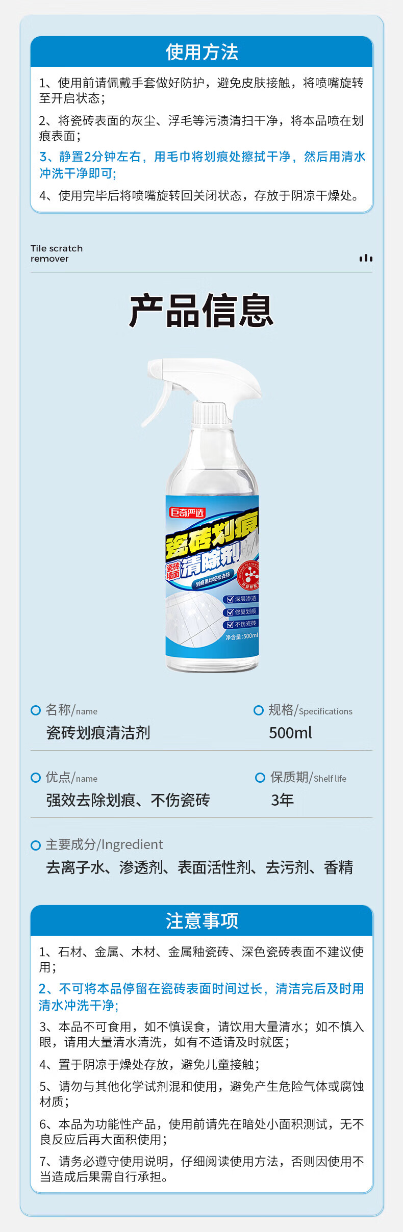 巨奇-瓷砖划痕清洁剂500ml