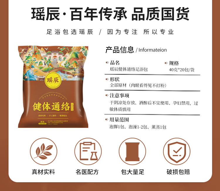 瑶辰中老年泡脚药包40g/包*20包 (艾叶生姜花椒艾草泡澡瑶浴包)