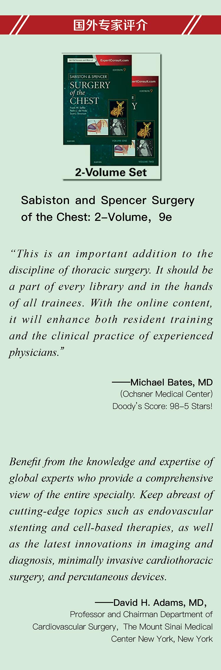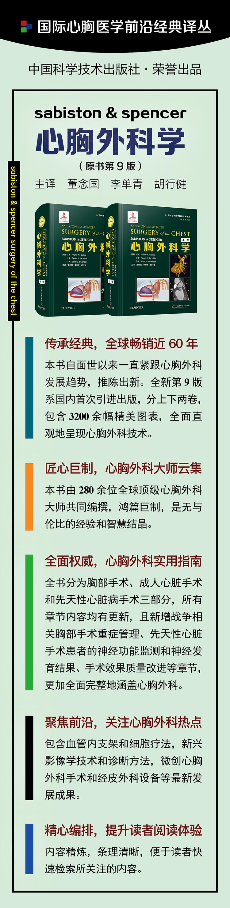 本书自面世以来一直紧跟心胸外科发展趋势,推陈出新。全新第9版系国内首次引进出版,分上下两卷,包含3200余幅精美图表,全面直观地呈现心胸外科技术。由280余位全球顶级心胸外科大师共同编撰,鸿篇巨制,是无与伦比的经验和智慧结晶。