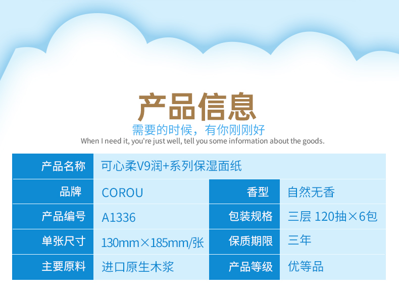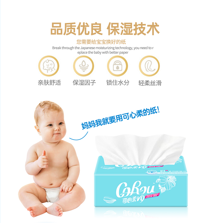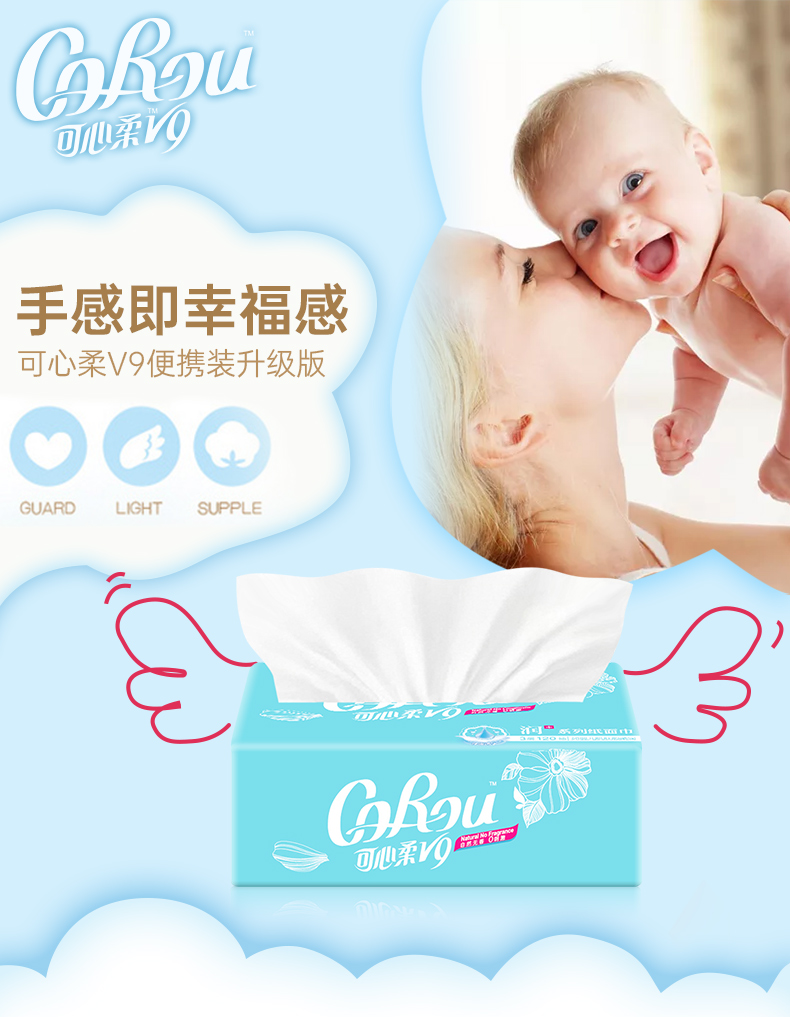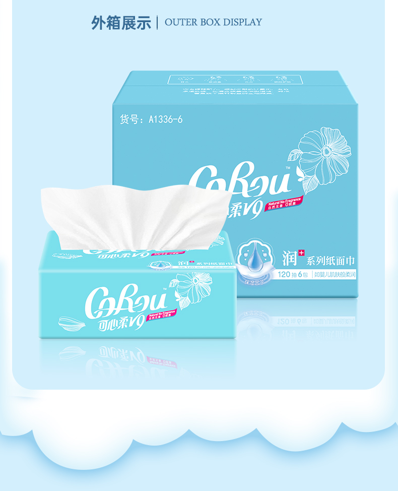 可心柔 婴儿柔纸巾宝宝抽纸母婴专用保湿面巾纸120抽6包装面巾纸 A1336-6
