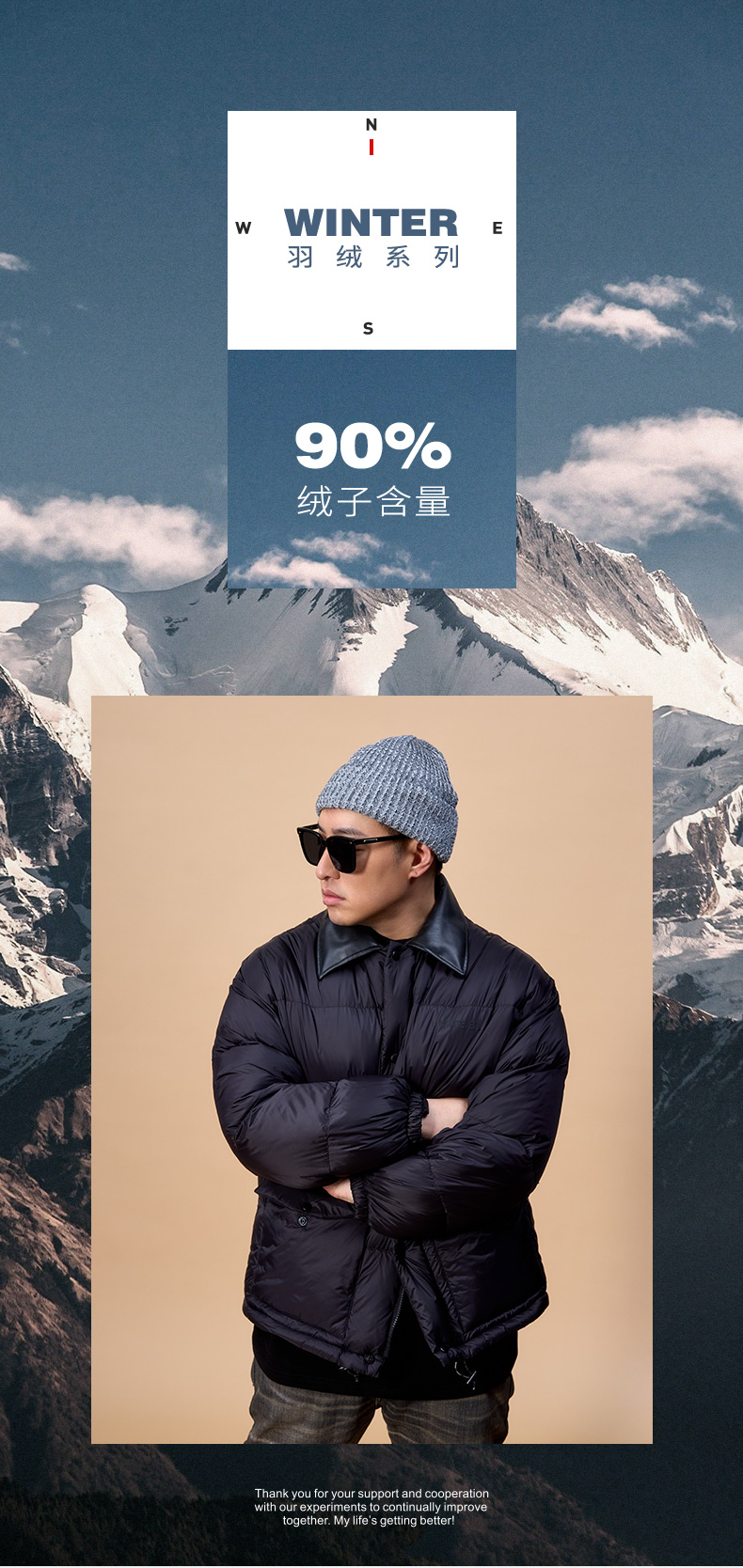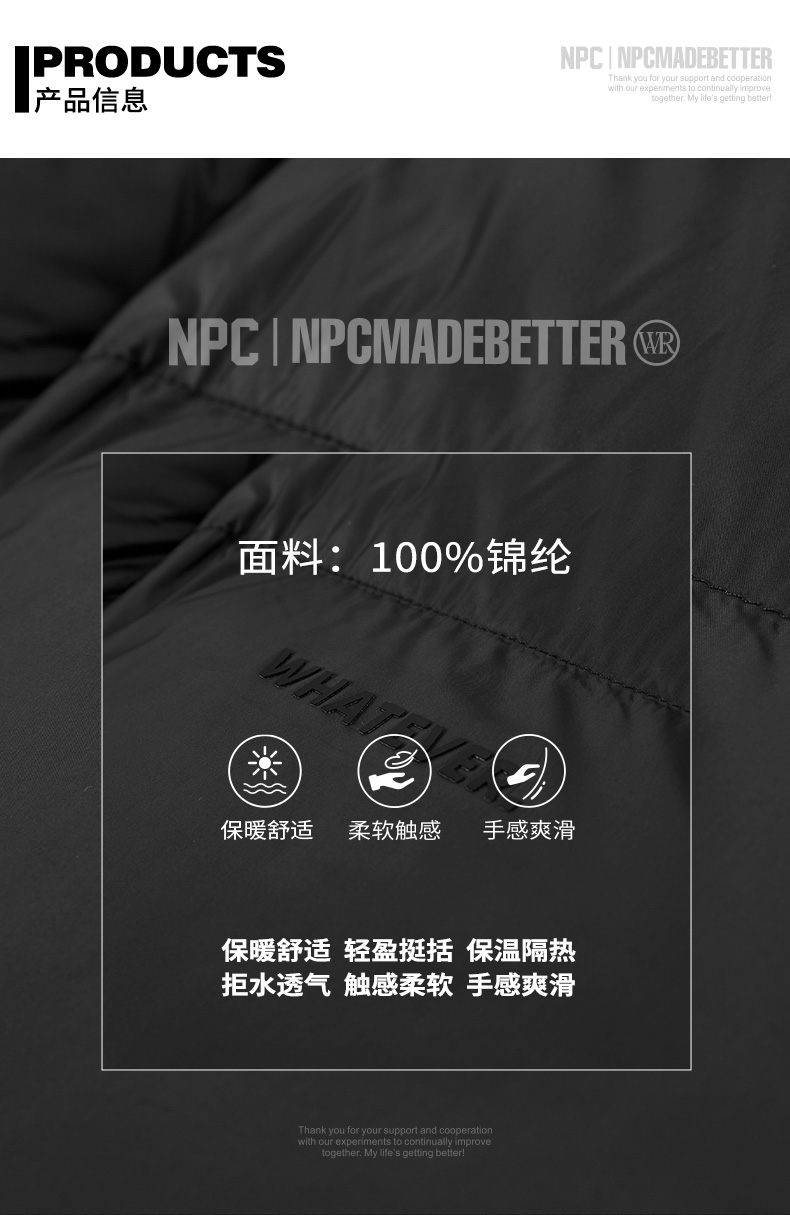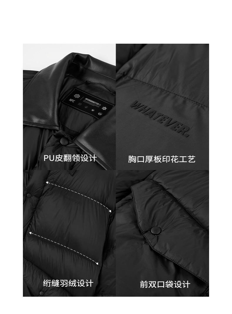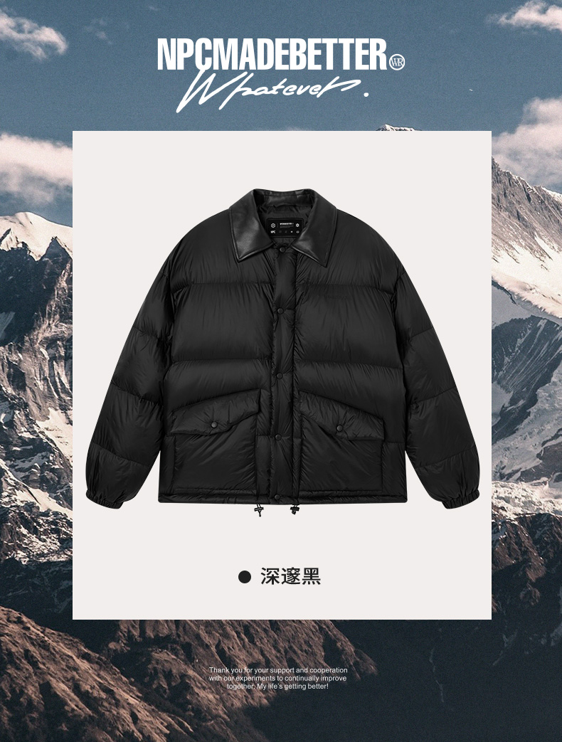 NPC潮牌厚板字母印花90%白鸭绒pu皮翻领羽绒服男保暖轻盈NP49DJ19