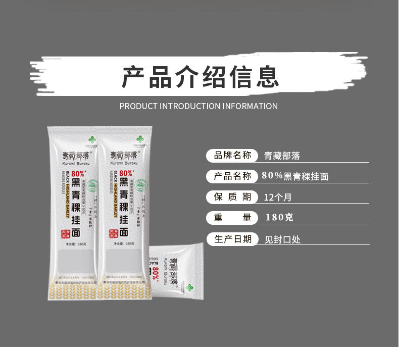 【青海优品】青藏部落180g黑青稞挂面