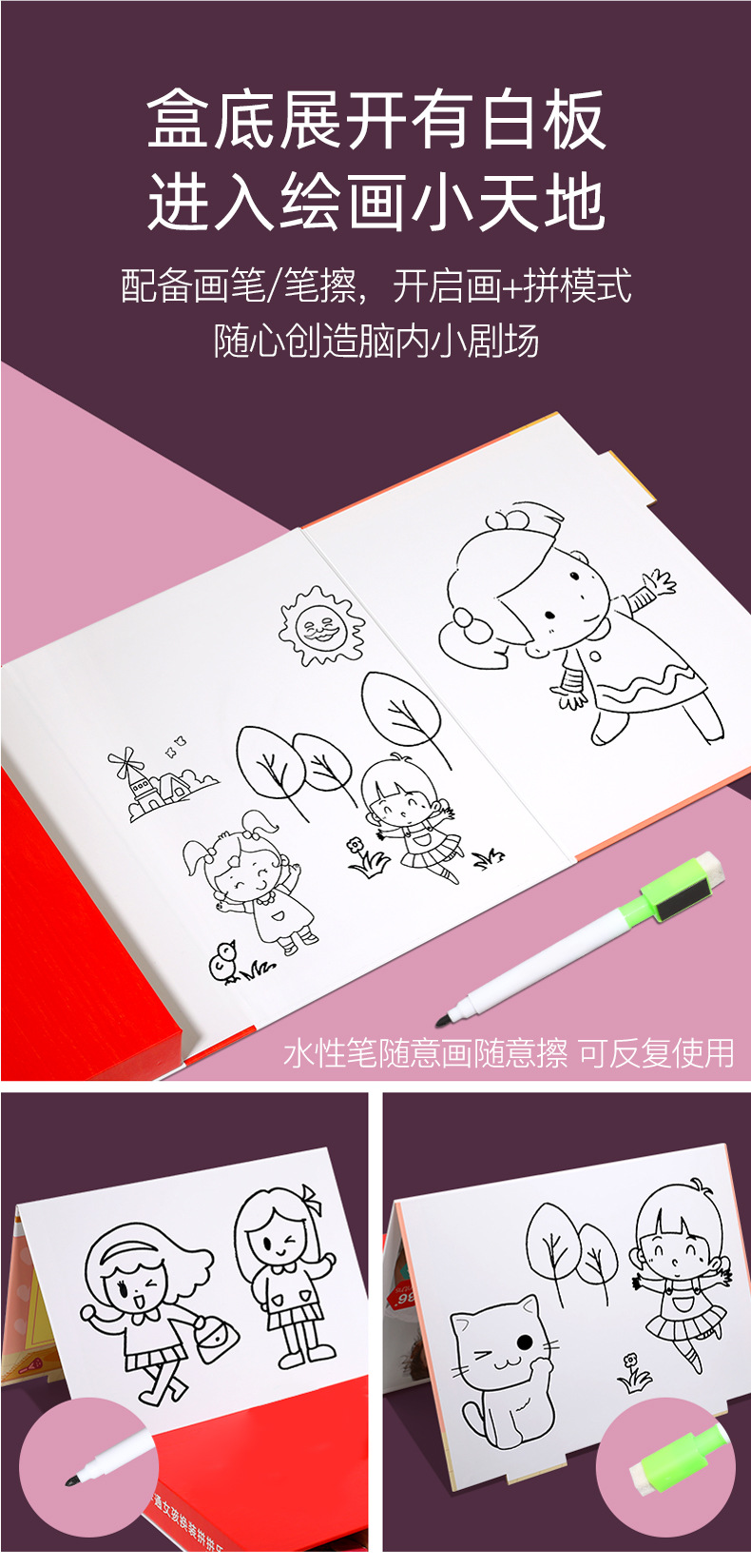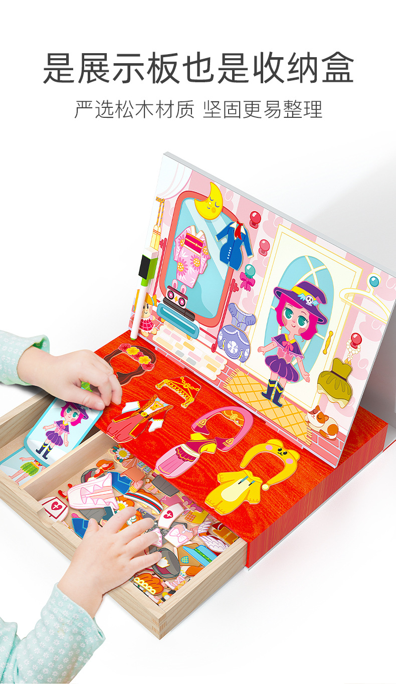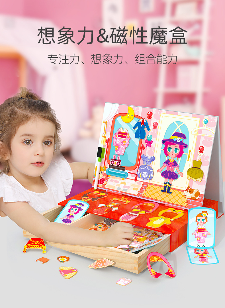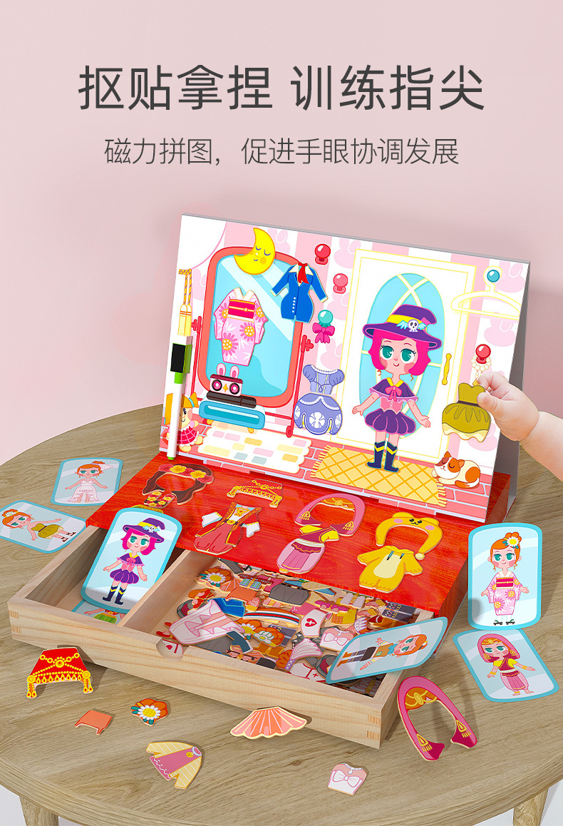 儿童益智拼图拼版卡通磁力小姑娘换装拼拼乐木制磁性双面画板玩具