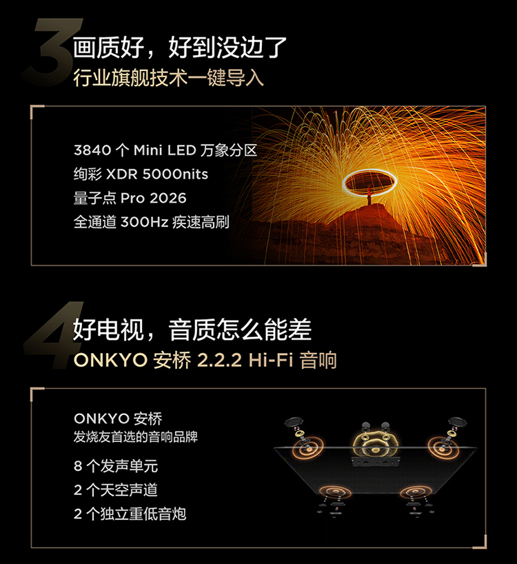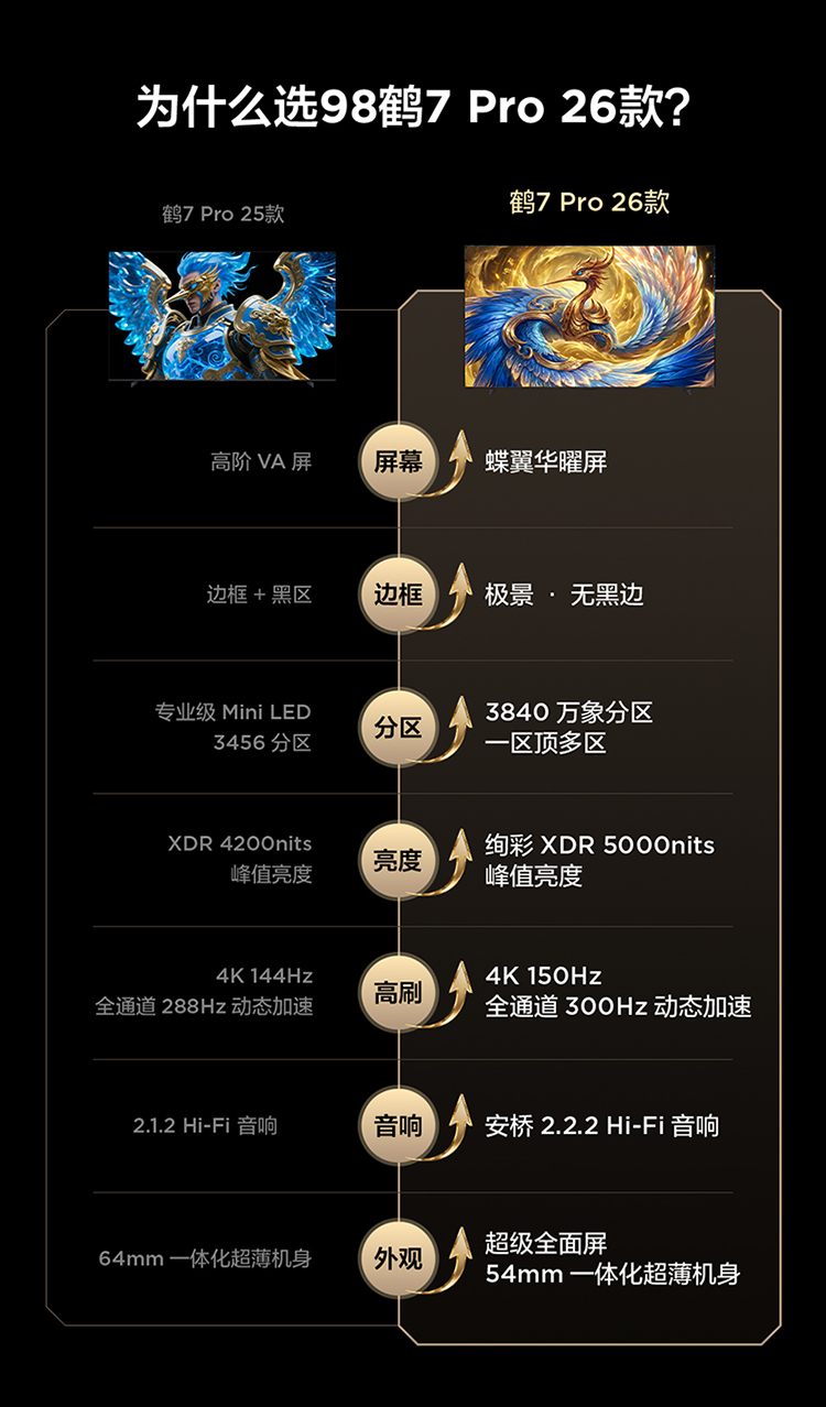 【FFALCON雷鸟】98鹤7 PRO 26款 98英寸 极景QD-MiniLED 蝶翼华曜屏 万象分区 平板电视机98R79A Pro