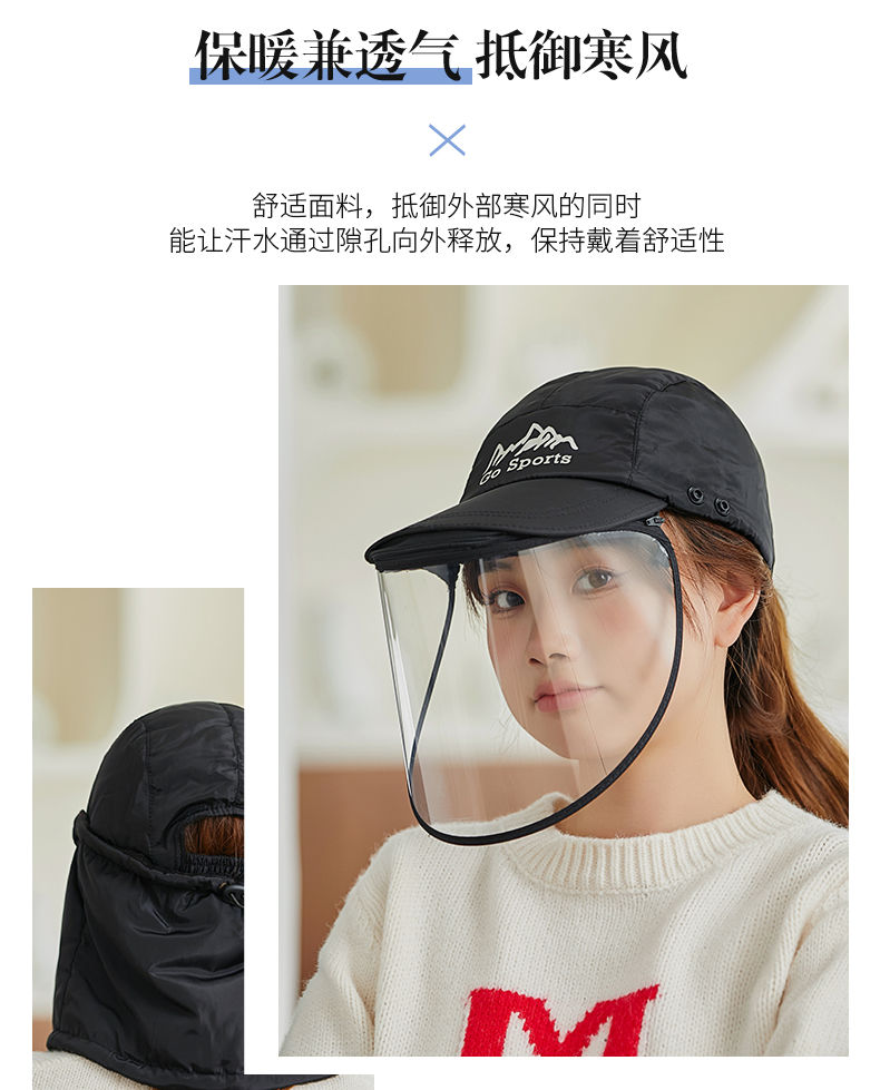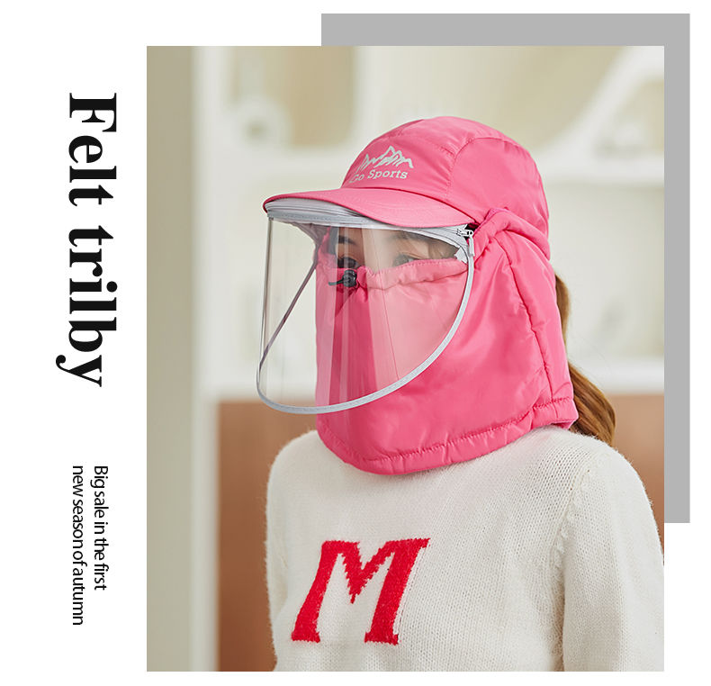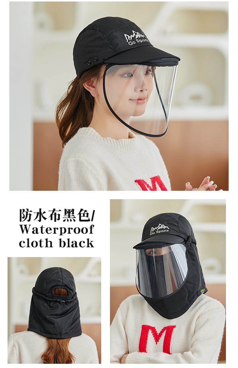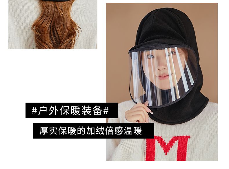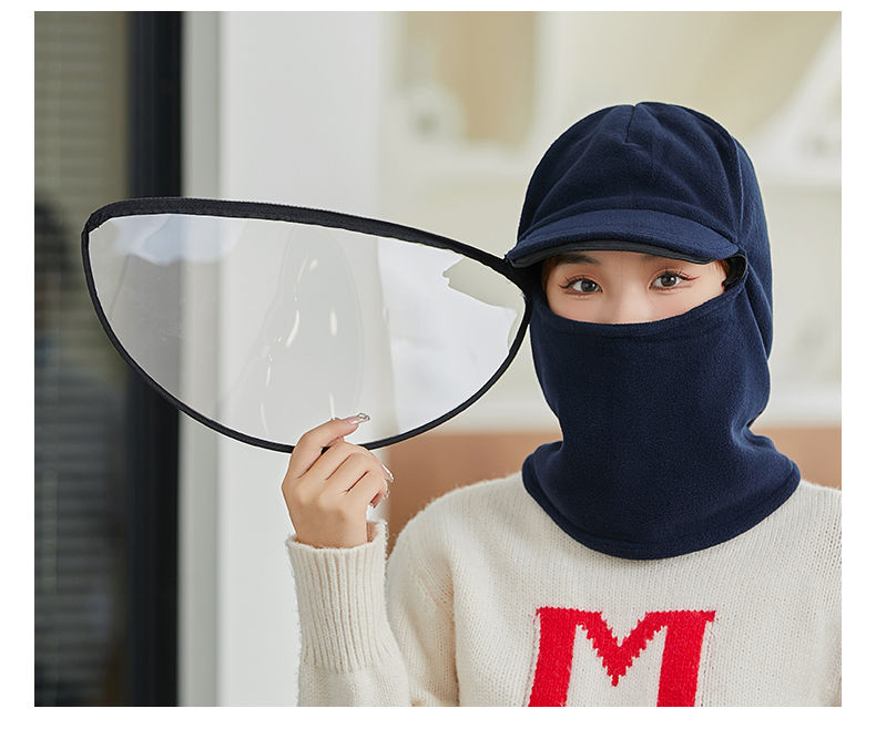 【防飞沫面罩帽】秋冬女保暖帽骑电瓶车防风帽子 男户外加绒护耳防寒帽
